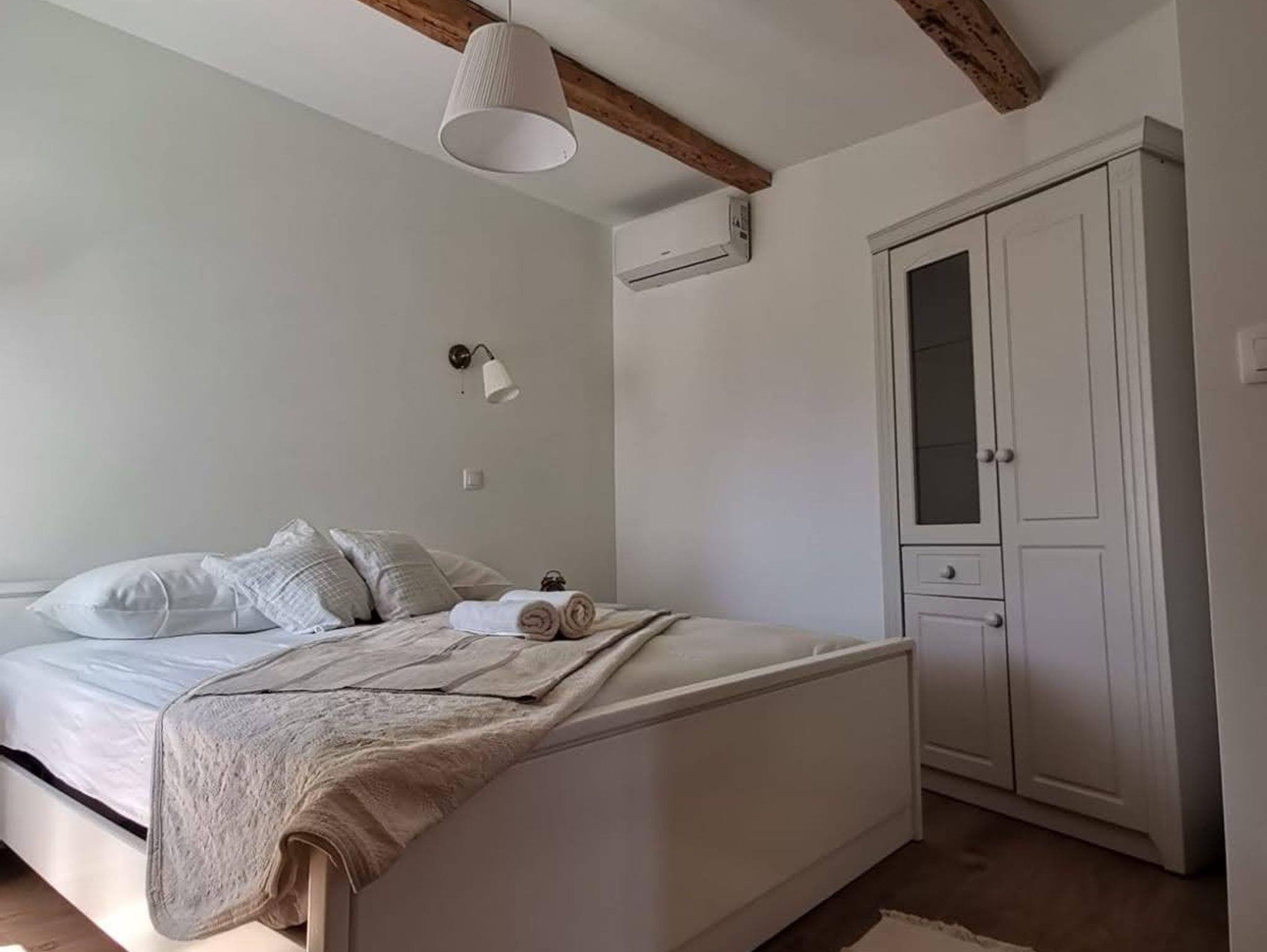Haus bietet Platz für 8 Gäste. Die Betten sind in Schlafzimmern, die es 4 gibt, innerhalb einer Gesamtfläche von 94m2, angeordnet. Die Gäste haben eine eigene Terrasse zur Verfügung, auf der sie in warmen Sommernächten genießen können. Das Haus bietet Meerblick. Für vollen Genuss und Entspannung gibt es einen privaten Grill für Gäste dieser Unterkunft. Räume der gebuchten Unterkunftseinheit werden nicht in eine Ganze verbunden. Unterkunftseinheit hat Räume, die von dem Rest der Einheit abgetrennt werden. IM PREIS INBEGRIFFEN: Kurtaxe, Endreinigung, Klimatisierung, Parkplatz, Internet, Kinderbett, Bügeleisen, Bügelbrett, Föhn. VERBINDLICHE ZUSÄTZLICHE KOSTEN: Aufzahlung für Kurzaufenthalte (prozentualer Zuschlag pro Nächtigungsanzahl: 30% - 1, 20% - 2, 10% - 3). Die Verfügbarkeit zusätzlicher Dienstleistungen in Ihrem reservierten Termin und die Preise derselben (falls nicht aufgeführt) müssen im Voraus überprüft werden. Zusätzliche Dienstleistungen die in der Zahlungsaufforderung nicht aufgeführt sind werden direkt beim Vermieter bezahlt, angenommen der Gast nutzt auch diese.