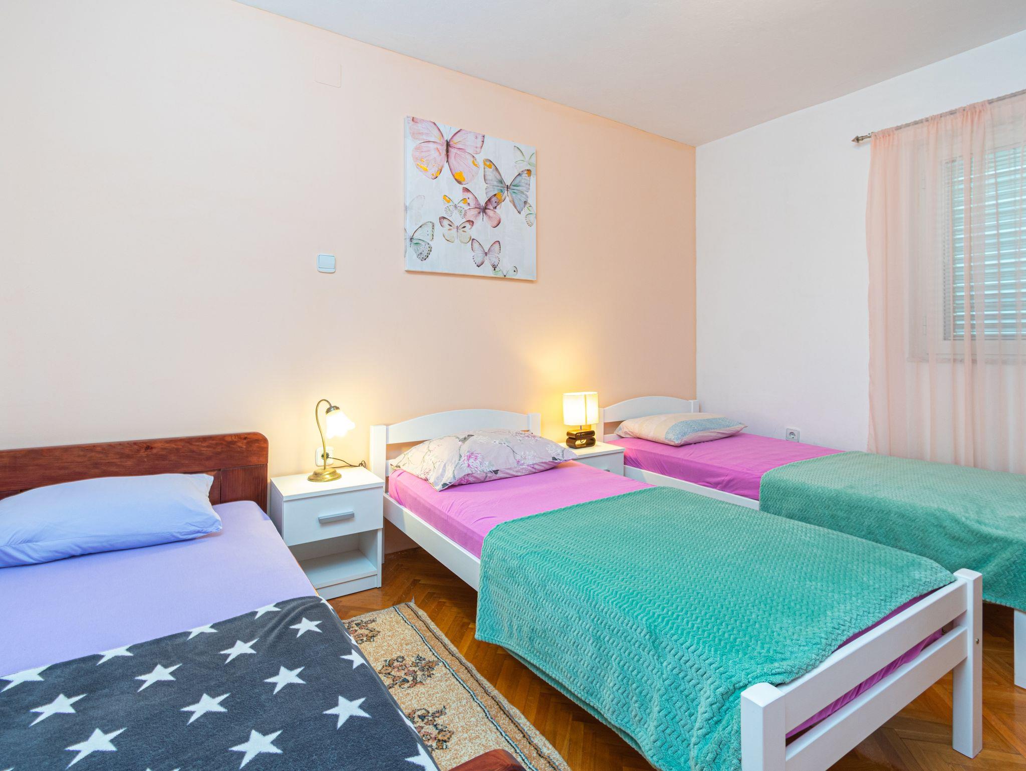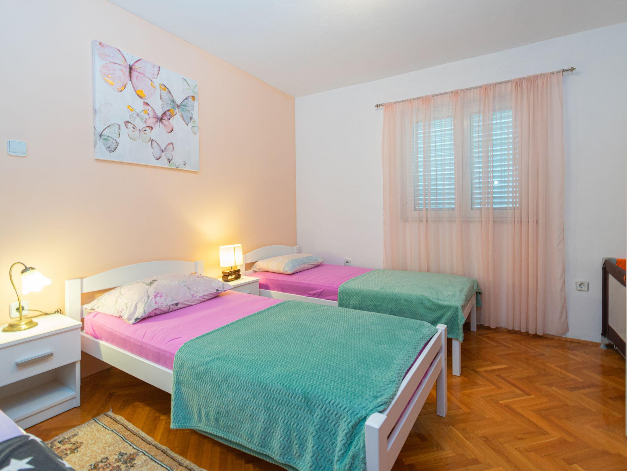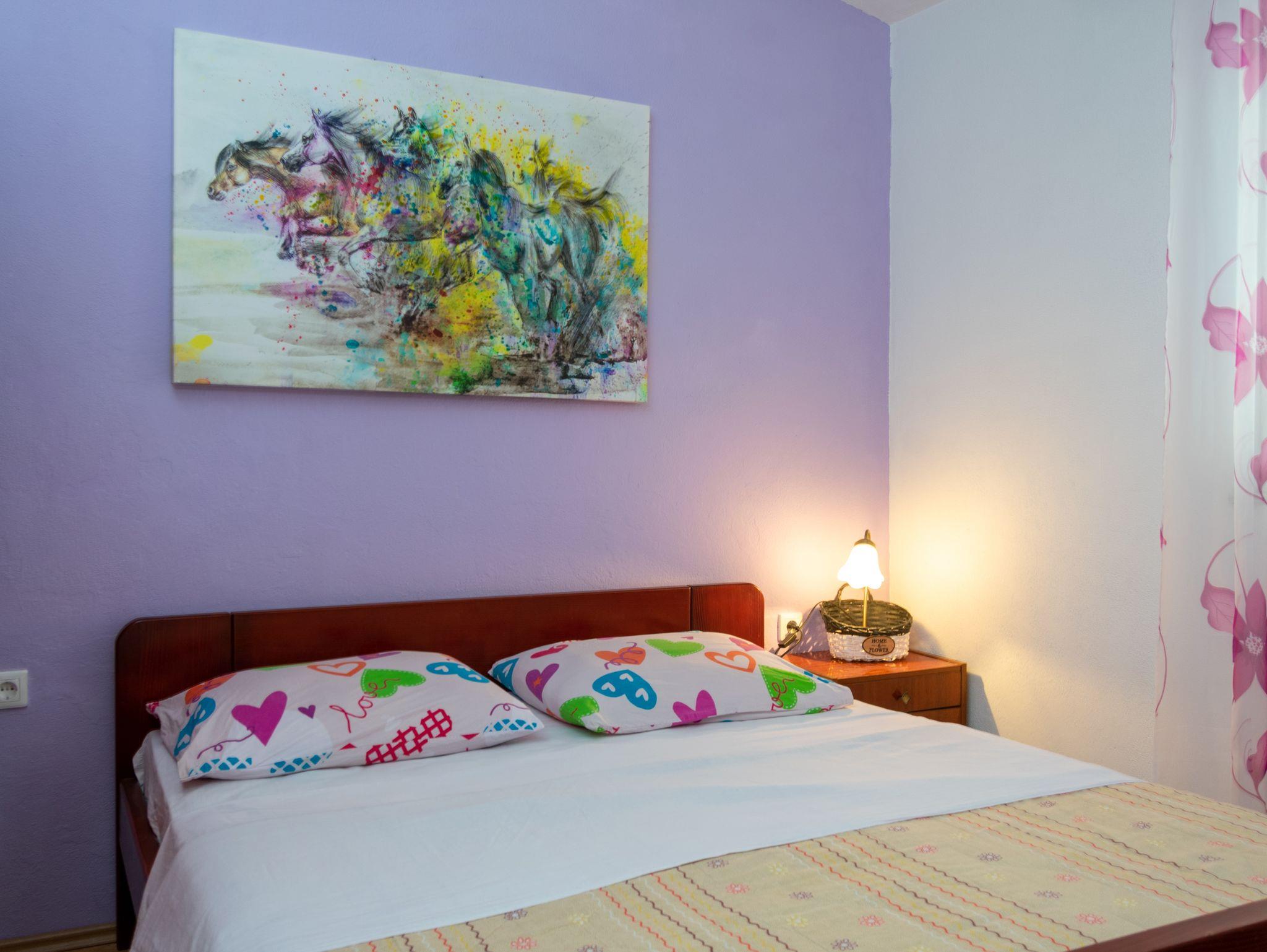 Ferienwohnung bietet Platz für 5 Gäste. Die Betten sind in Schlafzimmern, die es 2 gibt, innerhalb einer Gesamtfläche von 51m2, angeordnet. Die Gäste haben eine eigene Terrasse zur Verfügung, auf der sie in warmen Sommernächten genießen können. Es ist erlaubt, Speisen auf dem Gemeinschafts-Grill vorzubereiten. IM PREIS INBEGRIFFEN: Kurtaxe, Endreinigung, Klimatisierung, Parkplatz, Internet, Kinderbett, Bügeleisen, Bügelbrett, Föhn, tragbarer Grill. VERBINDLICHE ZUSÄTZLICHE KOSTEN: Aufzahlung für Kurzaufenthalte (prozentualer Zuschlag pro Nächtigungsanzahl: 30% - 1, 20% - 2, 10% - 3). Die Verfügbarkeit zusätzlicher Dienstleistungen in Ihrem reservierten Termin und die Preise derselben (falls nicht aufgeführt) müssen im Voraus überprüft werden. Zusätzliche Dienstleistungen die in der Zahlungsaufforderung nicht aufgeführt sind werden direkt beim Vermieter bezahlt, angenommen der Gast nutzt auch diese.