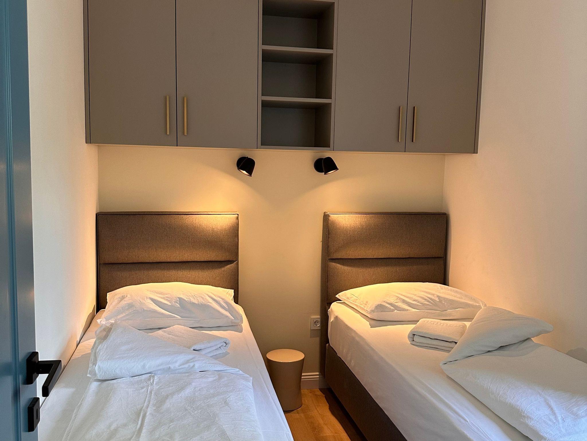 Ferienwohnung bietet Platz für 5 Gäste. Die Betten sind in Schlafzimmern, die es 2 gibt, und in Wohnzimmer, innerhalb einer Gesamtfläche von 65m2, angeordnet. Die Gäste haben eine eigene Terrasse zur Verfügung, auf der sie in warmen Sommernächten genießen können. Das Apartment bietet Meerblick. Es ist erlaubt, Speisen auf dem Gemeinschafts-Grill vorzubereiten. In der Unterkunftseinheit besteht die Möglichkeit des Mitbringens von Haustieren gegen Aufpreis. IM PREIS INBEGRIFFEN: Kurtaxe, Endreinigung, Klimatisierung, Parkplatz, Internet, Wäschewaschen, Kinderbett, Bügeleisen, Bügelbrett, Föhn. UNVERBINDLICHE ZUSÄTZLICHE KOSTEN: Boot (400,00 € pro Nacht), Bootsanlegeplatz (15,00 € pro Nacht), Haustiere (7,00 € pro Nacht). Die Verfügbarkeit zusätzlicher Dienstleistungen in Ihrem reservierten Termin und die Preise derselben (falls nicht aufgeführt) müssen im Voraus überprüft werden. Zusätzliche Dienstleistungen die in der Zahlungsaufforderung nicht aufgeführt sind werden direkt beim Vermieter bezahlt, angenommen der Gast nutzt auch diese.