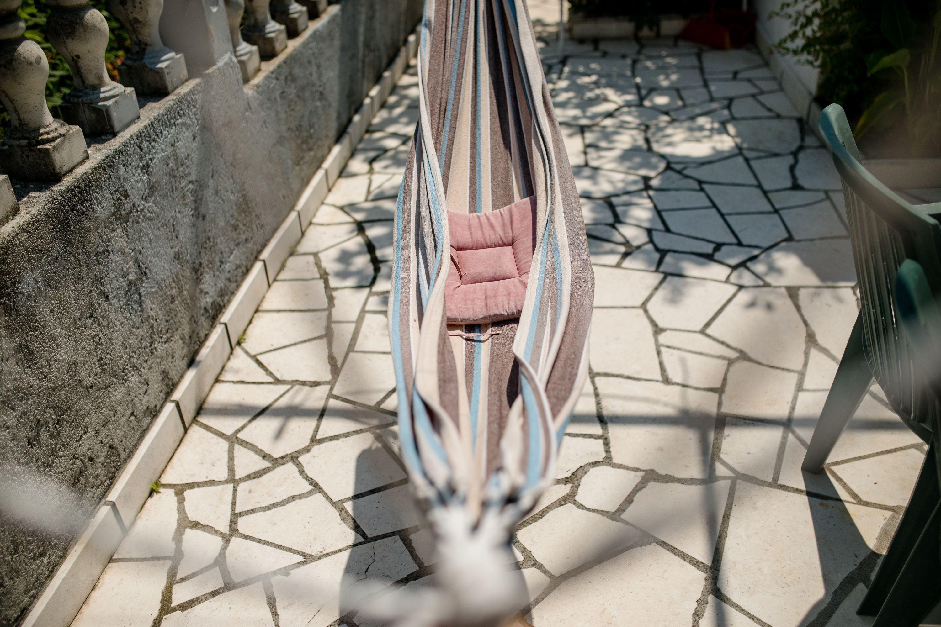 Die Wohnung verfügt über 3 Doppelbetten, 1 Schlafcouch, 1 Kinderbett für 1 Person, bei Bedarf haben wir 1 Babybett und einen hohen Babyeinzug.