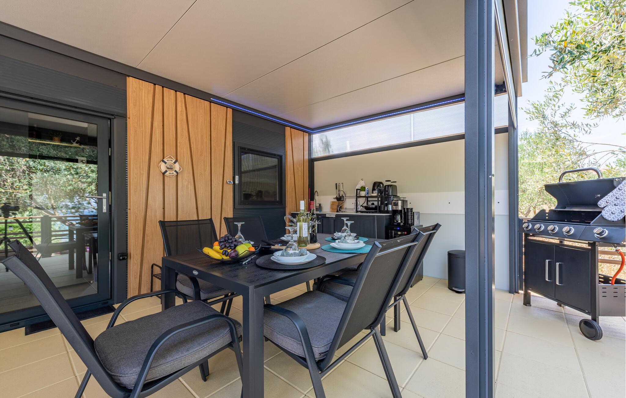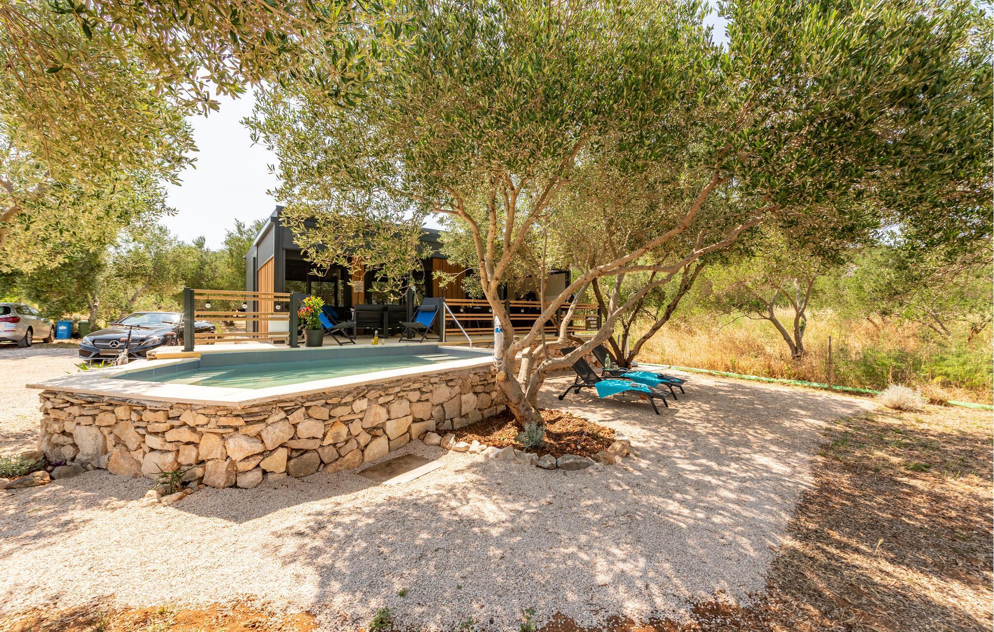 I de herlige sommermånedene kan du praktisk talt flytte livet ditt utendørs. Den idylliske eiendommen, med sine koselige skyggefulle steder, har et stort utekjøkken og et elegant, lite basseng.