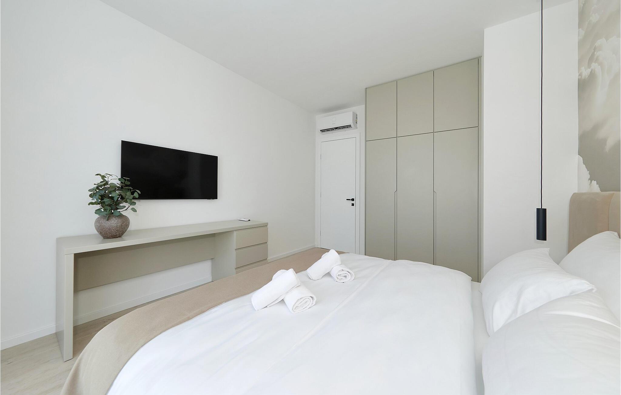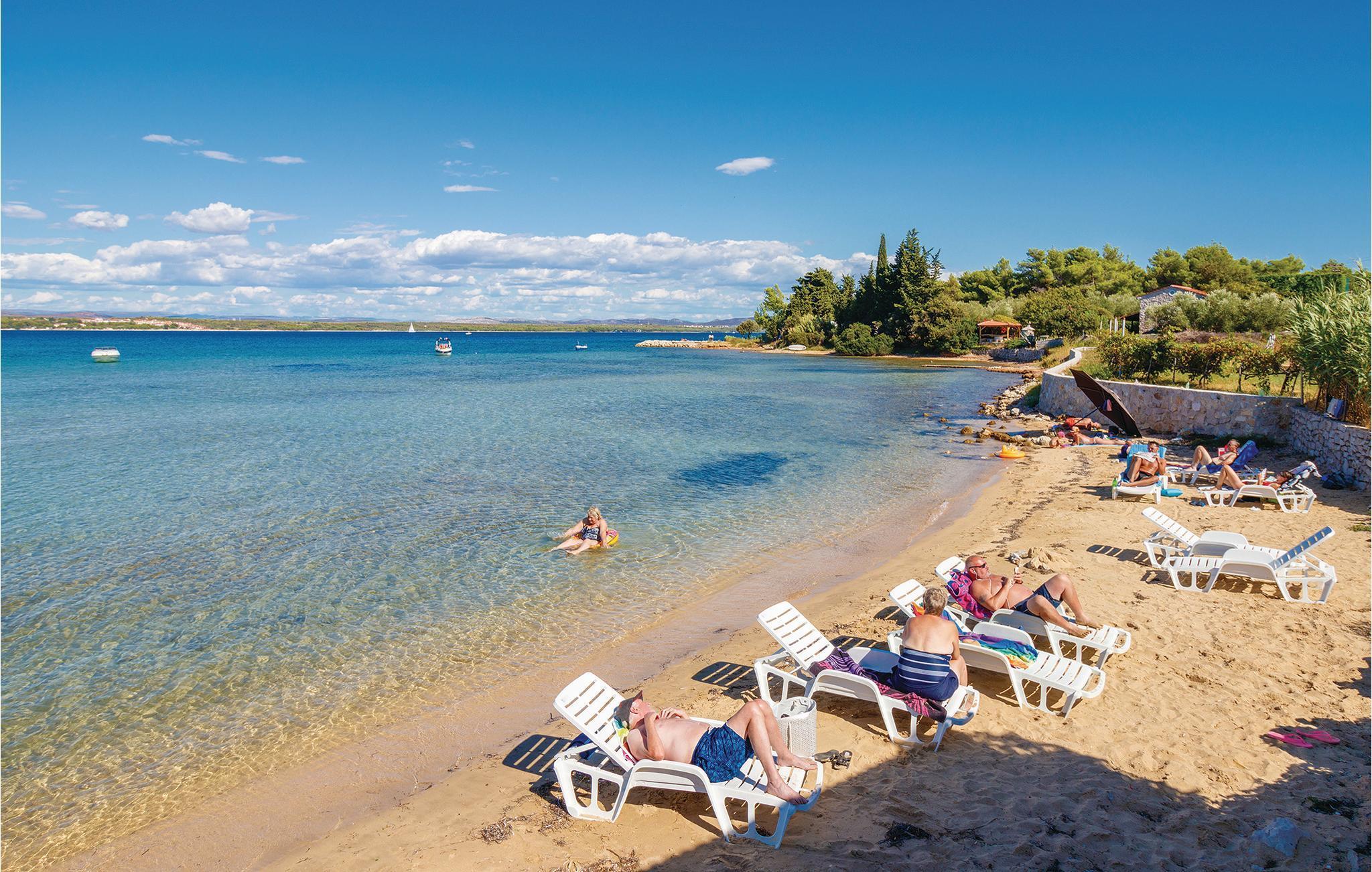 Den fine sandstranden ligger bare noen få skritt unna, og er ideell for bading, soling og lek i det grunne vannet. Ta en tur opp den nærliggende Okovac-høyden og opplev den imponerende utsikten over de dalmatiske øyene. Spaser gjennom den lille havnen i Tkon og nyt fersk fisk på en av de innbydende tavernaene. Eller ta en båttur for å oppdage bortgjemte bukter og naboøya Ut i Kornati nasjonalpark.