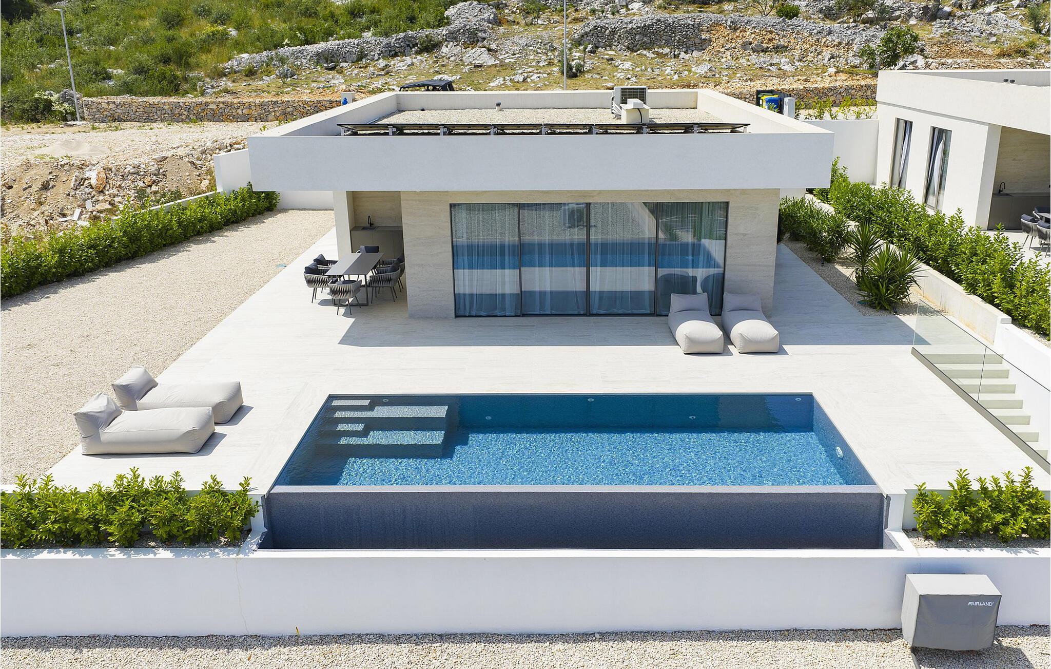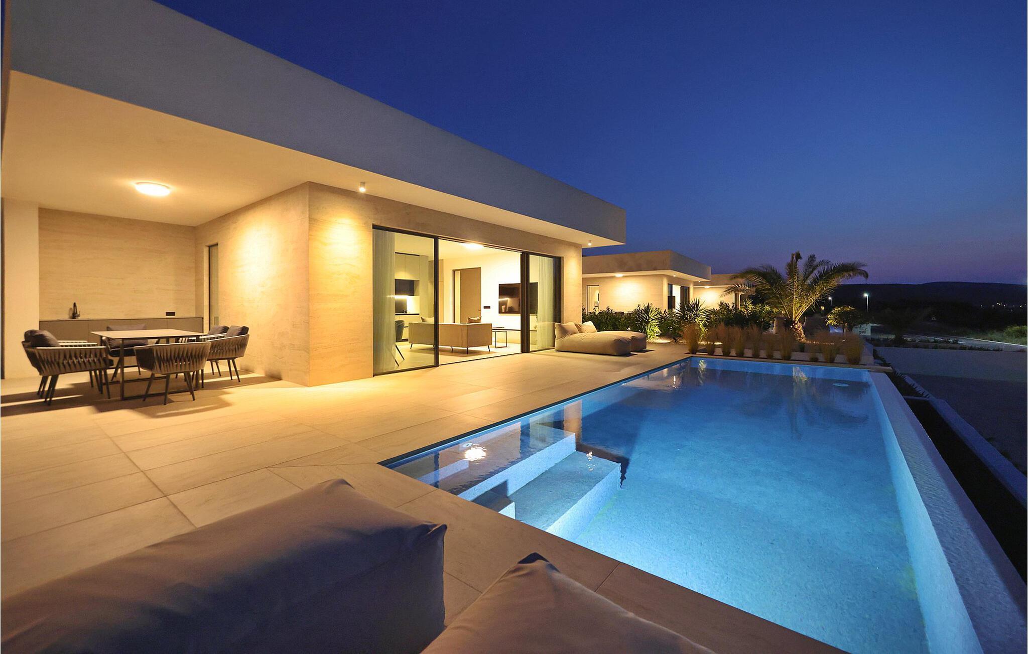 Nyt en avslappende ferie i dette smakfullt innredede feriehuset med basseng og panoramautsikt.