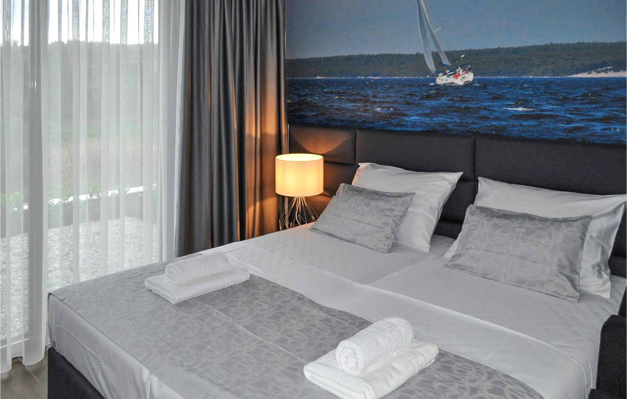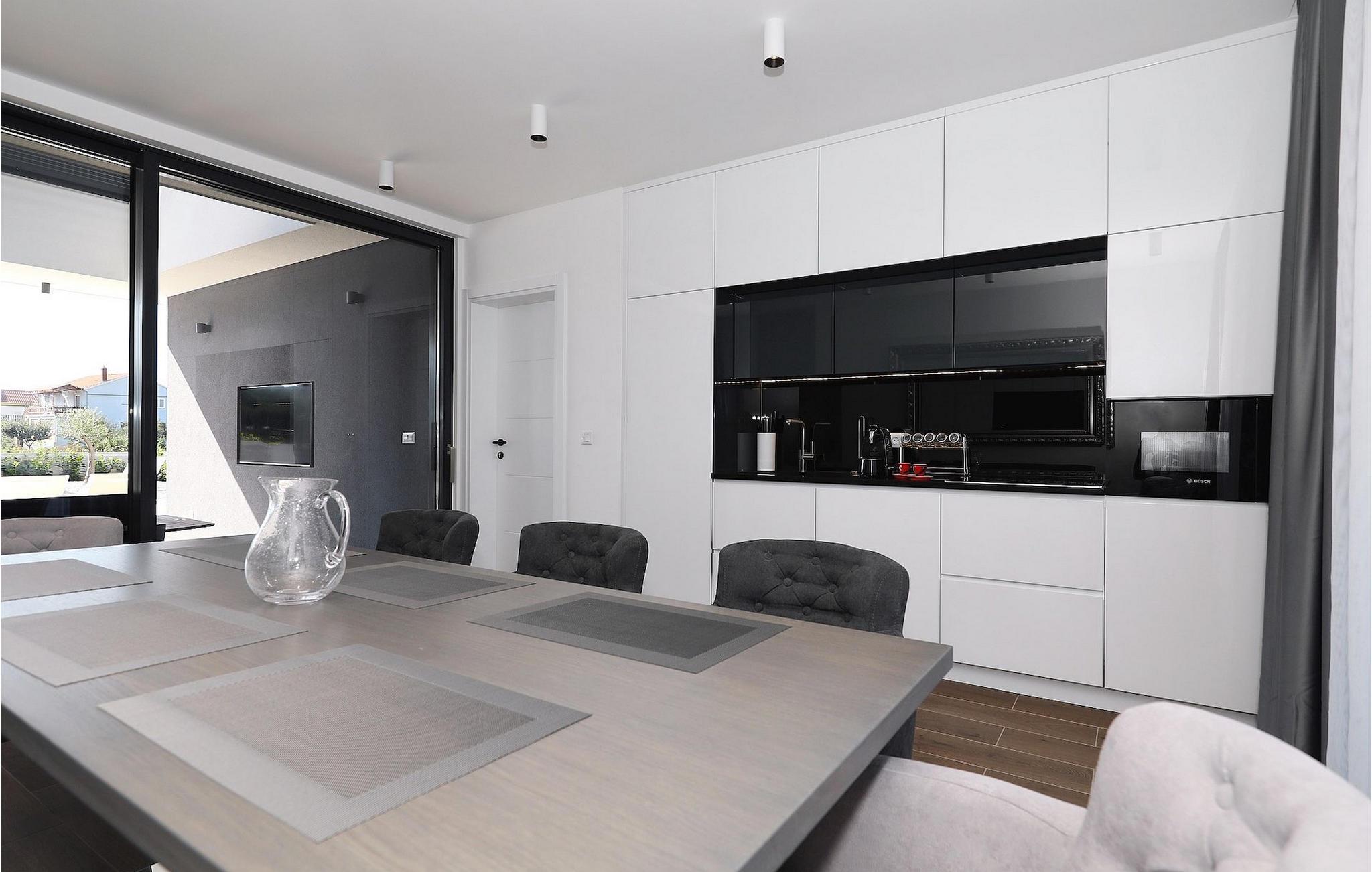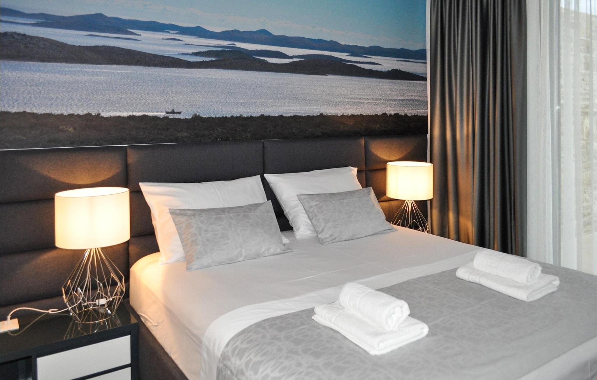 Villa K1 har en perfekt beliggenhet på den vakre øya Pasman i nærheten av Zadar. Det er det ideelle feriehuset for små familier eller par som ønsker å tilbringe ferien sammen. Villaen har 3 soverom, alle med TV og klimaanlegg. To av soverommene har dobbeltsenger, mens det tredje har 2 enkeltsenger som kan settes sammen til en dobbeltseng. Det er et moderne, fullt utstyrt kjøkken med spiseplass. Fra spiseplassen kommer man ut til utesalongen, som innbyr til avslapning og er utstyrt med satellitt-TV. For forfriskninger er det et privat basseng med solsenger, perfekt for soling om sommeren. Villaen er en del av et kompleks med 4 villaer. Alle villaene er like og har identiske fasiliteter. Så hvis dere er en større gruppe, kan dere leie mer enn én villa. Villaene har klimaanlegg og gratis Wi-Fi. Øya Paman er en sjarmerende øy i nærheten av Zadar og Biograd. Det er en vakker øy med en overflod av urter og furutrær som er ansvarlige for de intense og uimotståelige middelhavsduftene i luften. Øya er ikke bare kjent for sin vakre natur og sine strender, men også for sin rike kulturarv og arkitektur som dateres tilbake til 1100-tallet e.Kr. Øya er definitivt verdt et besøk, og den er forbundet med øya Ugljan via en bro, så her er det enda mer å oppdage.