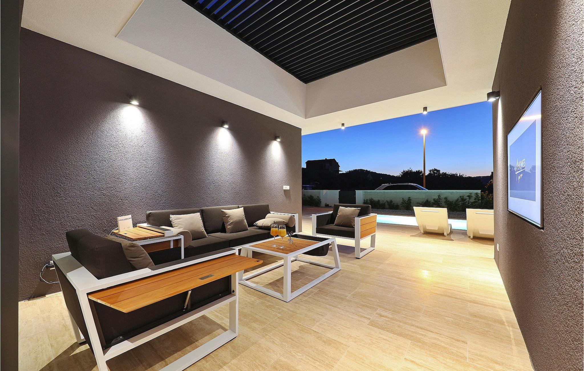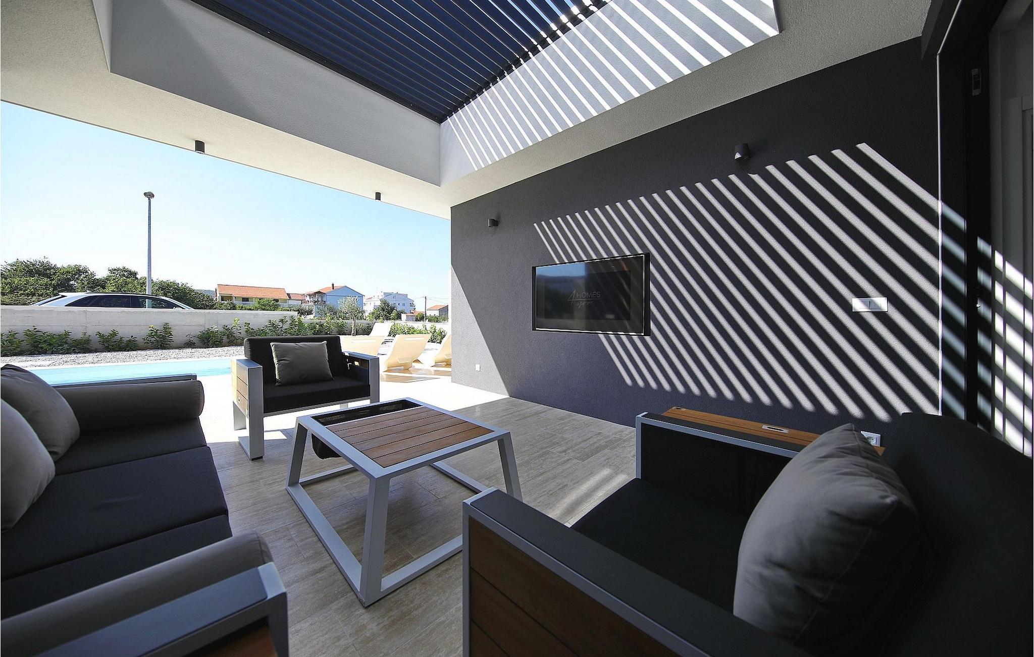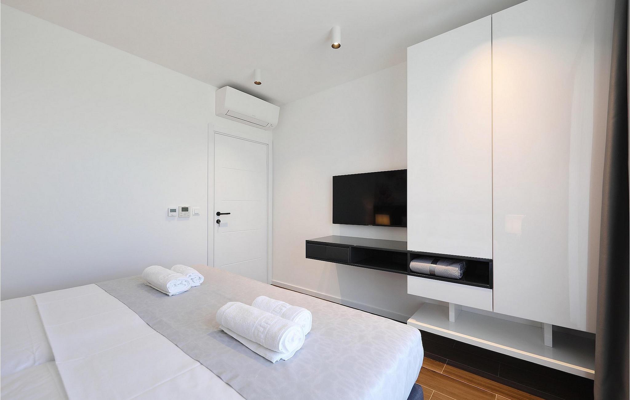 Villa K1 har en perfekt beliggenhet på den vakre øya Pasman i nærheten av Zadar. Det er det ideelle feriehuset for små familier eller par som ønsker å tilbringe ferien sammen. Villaen har 3 soverom, alle med TV og klimaanlegg. To av soverommene har dobbeltsenger, mens det tredje har 2 enkeltsenger som kan settes sammen til en dobbeltseng. Det er et moderne, fullt utstyrt kjøkken med spiseplass. Fra spiseplassen kommer man ut til utesalongen, som innbyr til avslapning og er utstyrt med satellitt-TV. For forfriskninger er det et privat basseng med solsenger, perfekt for soling om sommeren. Villaen er en del av et kompleks med 4 villaer. Alle villaene er like og har identiske fasiliteter. Så hvis dere er en større gruppe, kan dere leie mer enn én villa. Villaene har klimaanlegg og gratis Wi-Fi. Øya Paman er en sjarmerende øy i nærheten av Zadar og Biograd. Det er en vakker øy med en overflod av urter og furutrær som er ansvarlige for de intense og uimotståelige middelhavsduftene i luften. Øya er ikke bare kjent for sin vakre natur og sine strender, men også for sin rike kulturarv og arkitektur som dateres tilbake til 1100-tallet e.Kr. Øya er definitivt verdt et besøk, og den er forbundet med øya Ugljan via en bro, så her er det enda mer å oppdage.