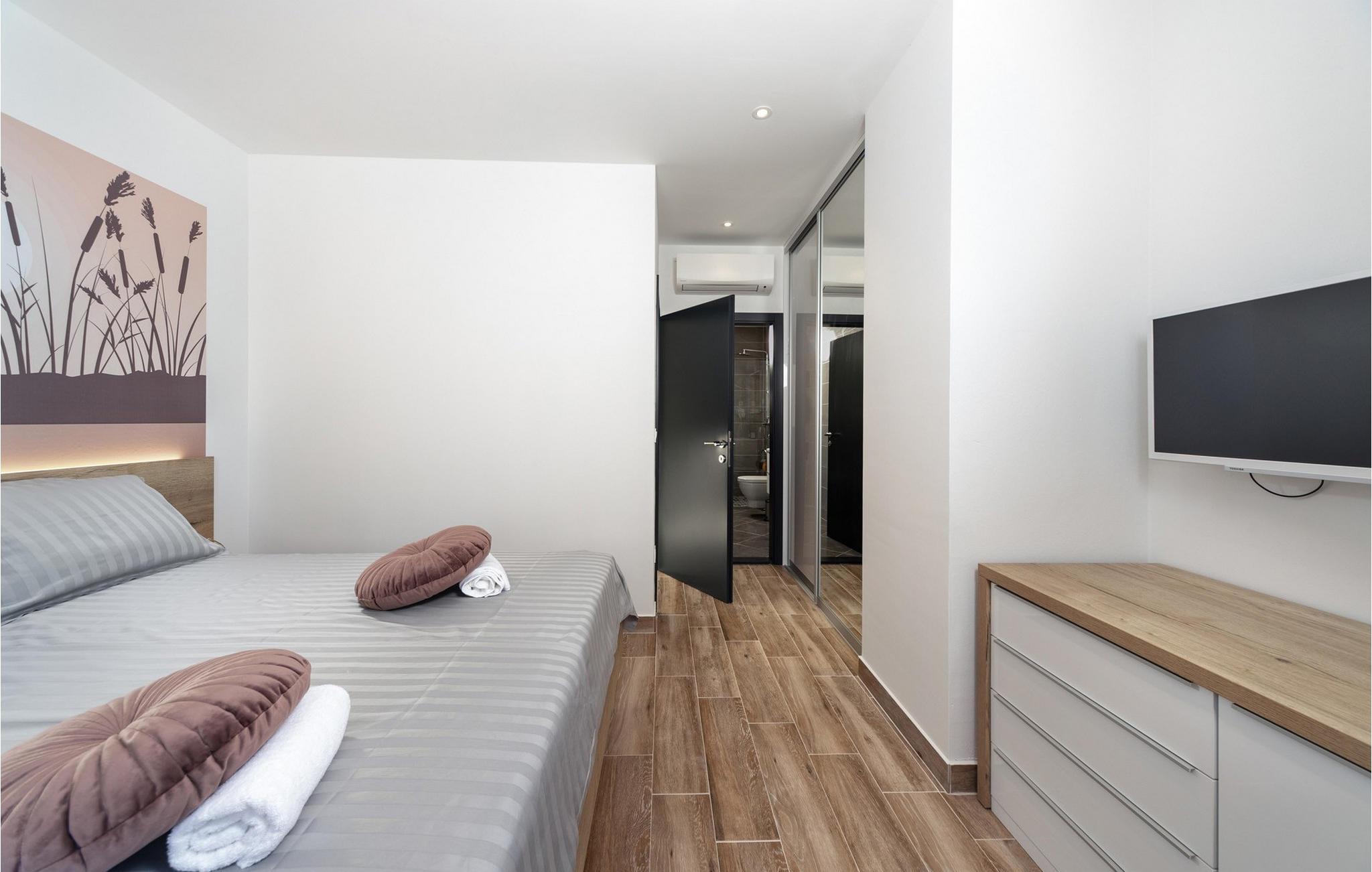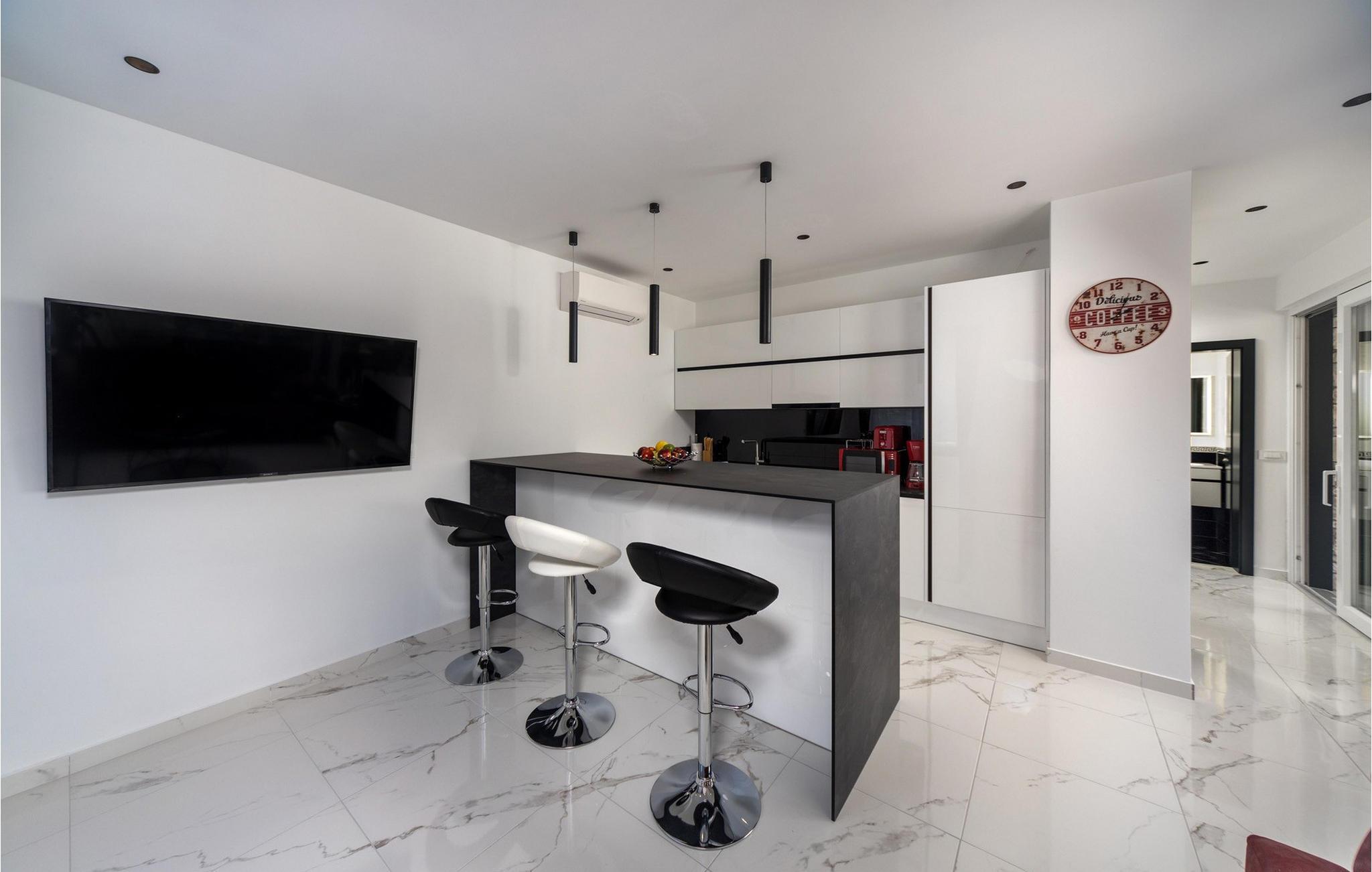 Inne i Villa Royal House 2 finner du en moderne atmosfære som kombinerer komfort og hygge på en harmonisk måte. De store vinduene slipper inn rikelig med lys, noe som gjør den smakfulle møbleringen enda mer innbydende. Len deg tilbake i den koselige stuen og tilbring avslappende timer med en god bok, en spillkveld eller et måltid sammen. Det fullt utstyrte kjøkkenet har alt dere trenger for å lage mat sammen og prøve ut nye oppskrifter.