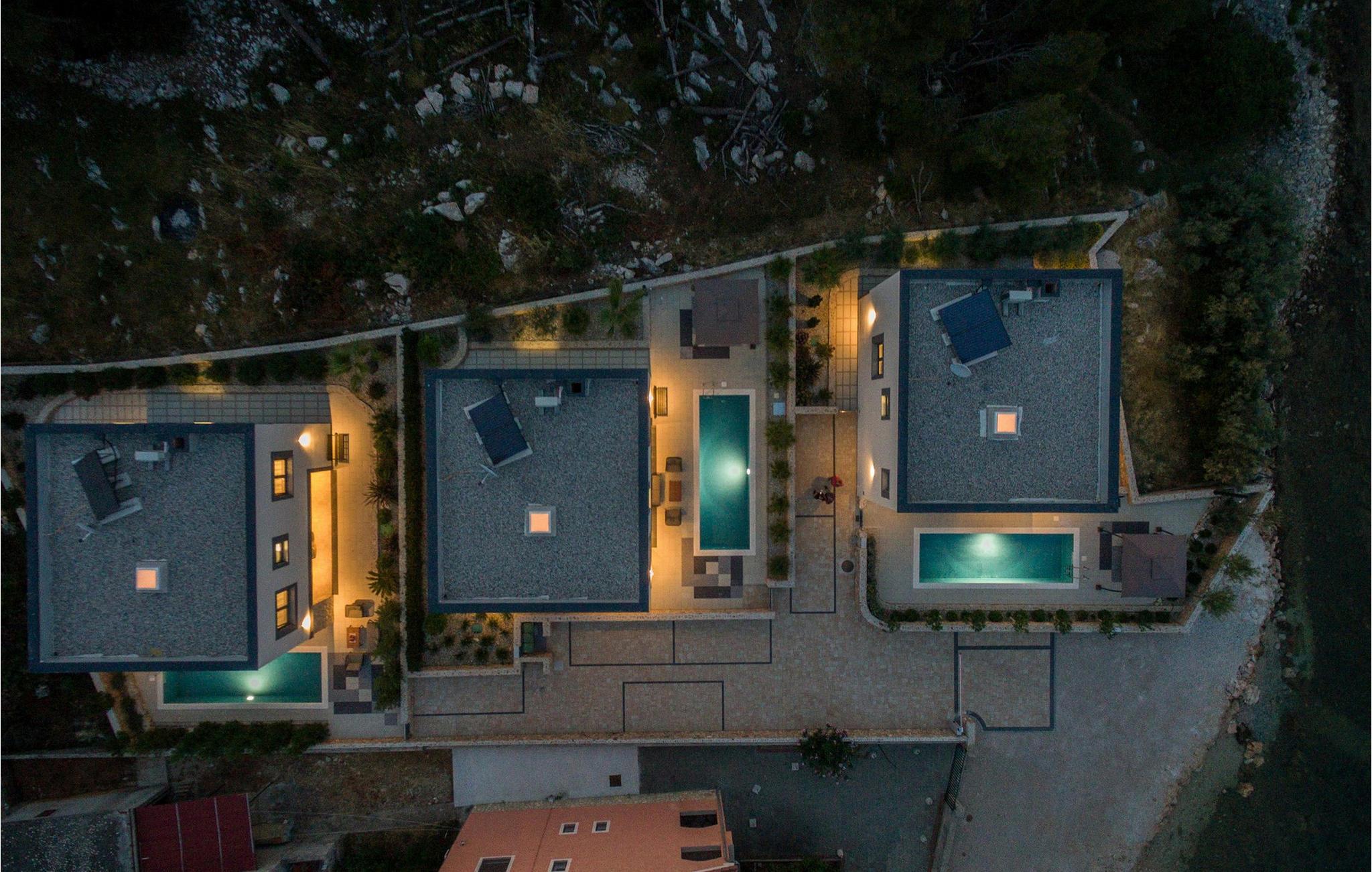 Herfra kan du gå rett ut på den vakre terrassen, hvor et stort spisebord og komfortable sitteplasser venter på deg. Nyt morgenkaffen ute og la blikket vandre over det glitrende havet. Ta en forfriskende dukkert i bassenget, eller slapp av på en av solsengene mens du nyter en kjølig drink. Om kvelden, når solen sakte synker ned i havet, er terrassen det ideelle stedet for å avslutte dagen med levende lys og sosialt samvær.