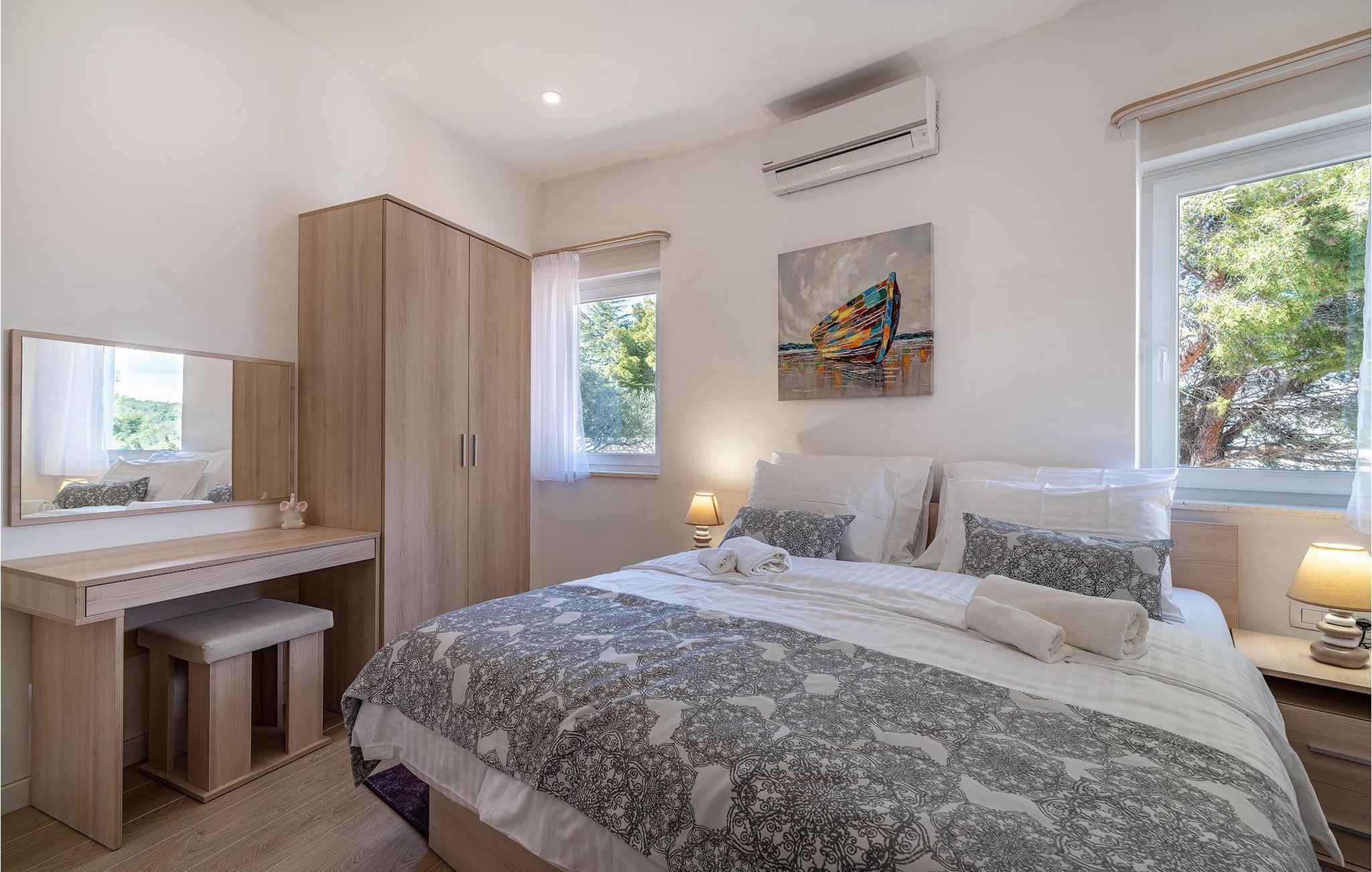 Villaen ligger på nordspissen av øya i landsbyen Zdrelac. Landsbyen tilbyr sportsaktiviteter som sykling, løping og ulike vannsportaktiviteter. Landsbyen er også ideell for lange spaserturer. I sentrum finner du kafeer, barer og shoppingmuligheter. Vi anbefaler at du prøver middelhavsmaten som tilbys på de lokale restaurantene. Fantastiske strender venter på deg her. De fleste av dem ligger i skjulte bukter. En fordel med øya er at det ikke er noen masseturisme her, og du vil alltid finne et rolig sted. Har du lyst på en utflukt, kan du gjøre det herfra, for det er raskt og enkelt å komme seg til de omkringliggende øyene. Hvis du er ute etter ro og avslapping på ferien og virkelig ønsker å ta en pause, er øya Pasman stedet å være.