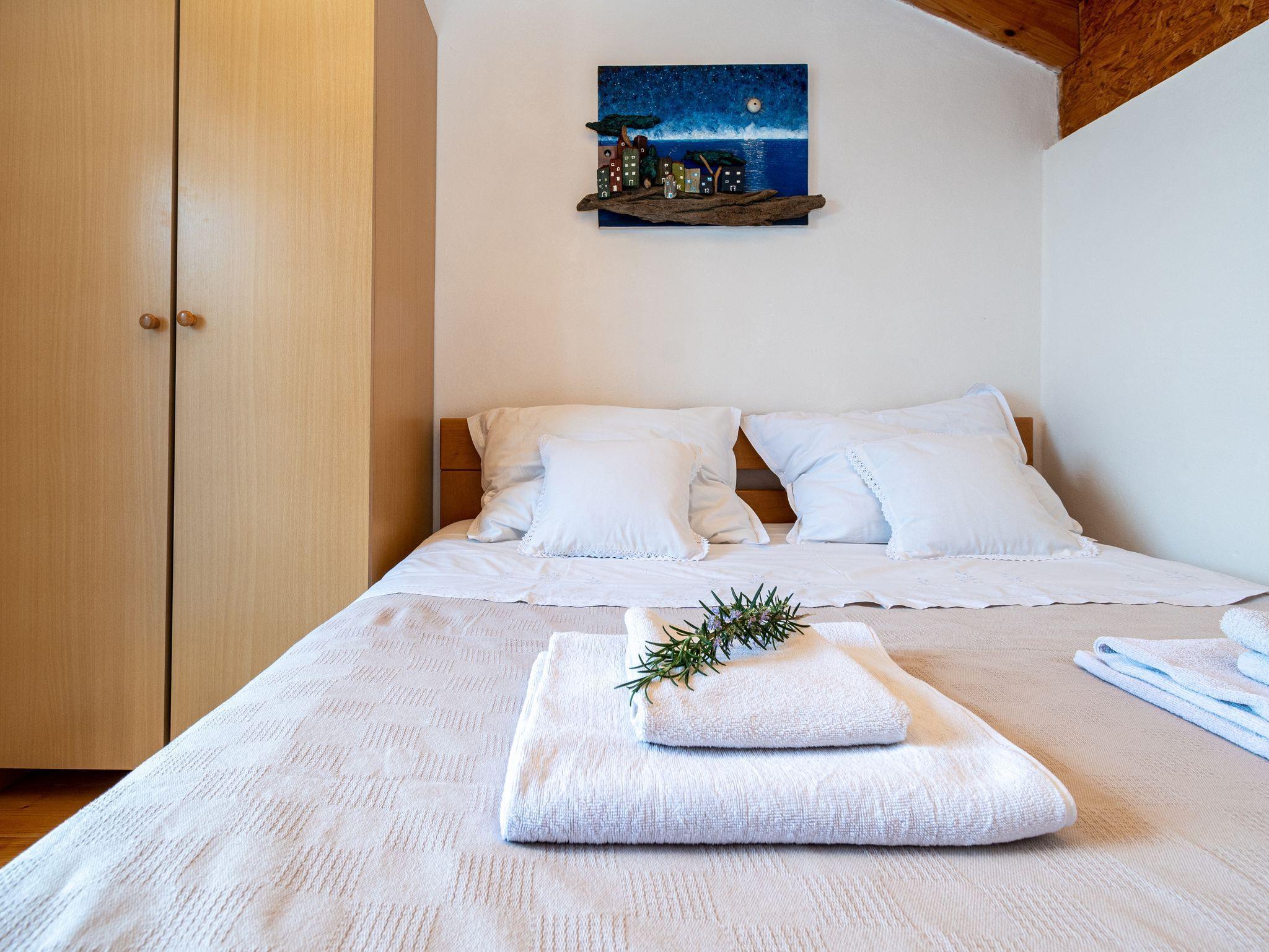 Haus bietet Platz für 6 Gäste. Die Betten sind in Schlafzimmern, die es 3 gibt, innerhalb einer Gesamtfläche von 66m2, angeordnet. Die Gäste haben eine eigene Terrasse zur Verfügung, auf der sie in warmen Sommernächten genießen können. Das Haus bietet Meerblick. Für vollen Genuss und Entspannung gibt es einen privaten Grill für Gäste dieser Unterkunft. In der gebuchten Unterkunftseinheit zahlt man am Ort ein Depositum ( der Preis ist an der Internetseite angeführt ). IM PREIS INBEGRIFFEN: Kurtaxe, Endreinigung, Klimatisierung, Parkplatz, Internet, Bootsanlegeplatz, Sonnenschirm, Liegestühle. VERBINDLICHE ZUSÄTZLICHE KOSTEN: Kaution (50,00 € Einmalzahlung), Aufzahlung für Kurzaufenthalte (prozentualer Zuschlag pro Nächtigungsanzahl: 30% - 1, 20% - 2, 10% - 3). Die Verfügbarkeit zusätzlicher Dienstleistungen in Ihrem reservierten Termin und die Preise derselben (falls nicht aufgeführt) müssen im Voraus überprüft werden. Zusätzliche Dienstleistungen die in der Zahlungsaufforderung nicht aufgeführt sind werden direkt beim Vermieter bezahlt, angenommen der Gast nutzt auch diese.