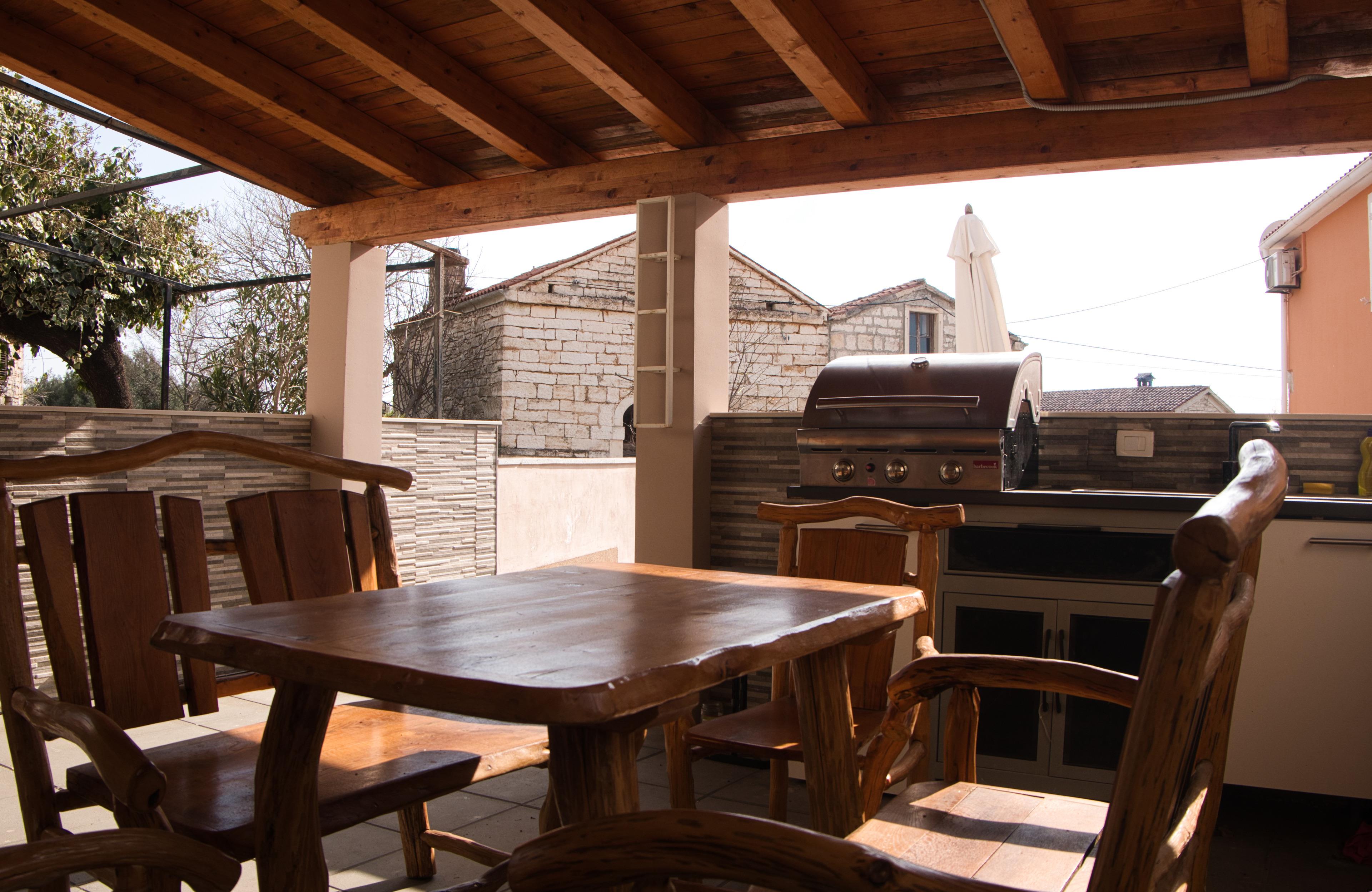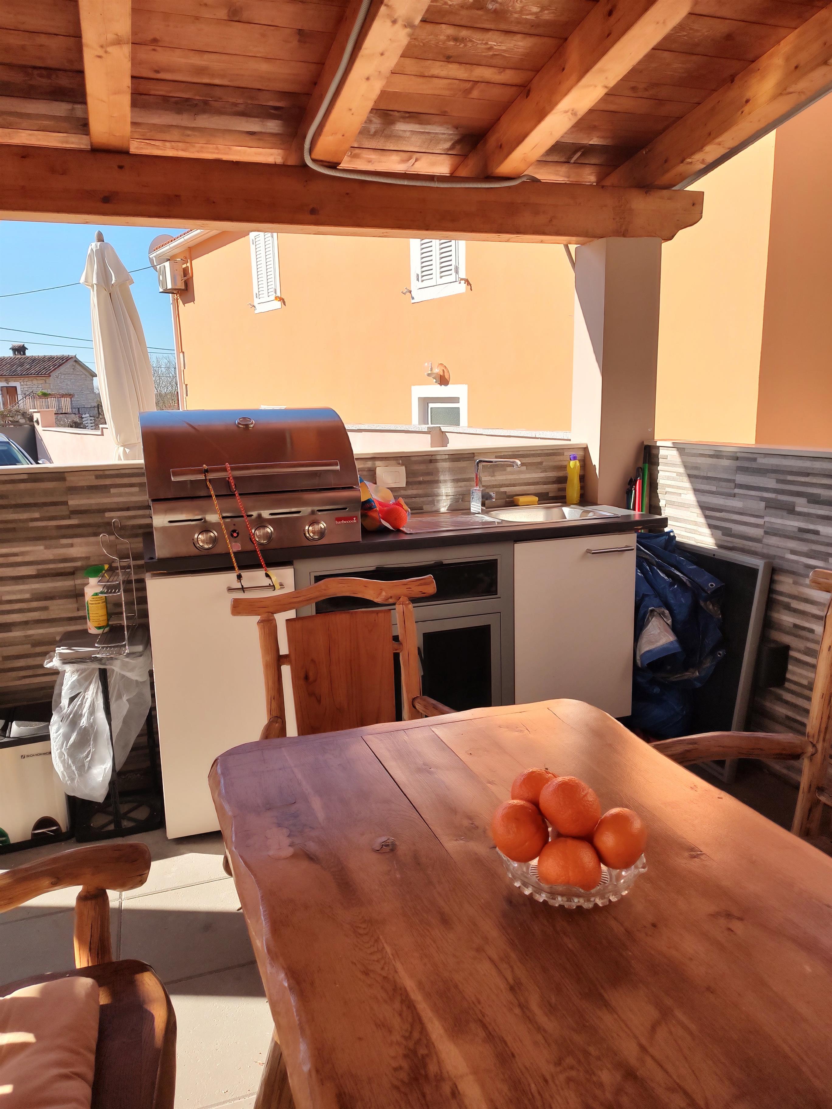 • überdachte Außenküche mit BBQ, Spüle und Sitzgruppe für 6 Personen