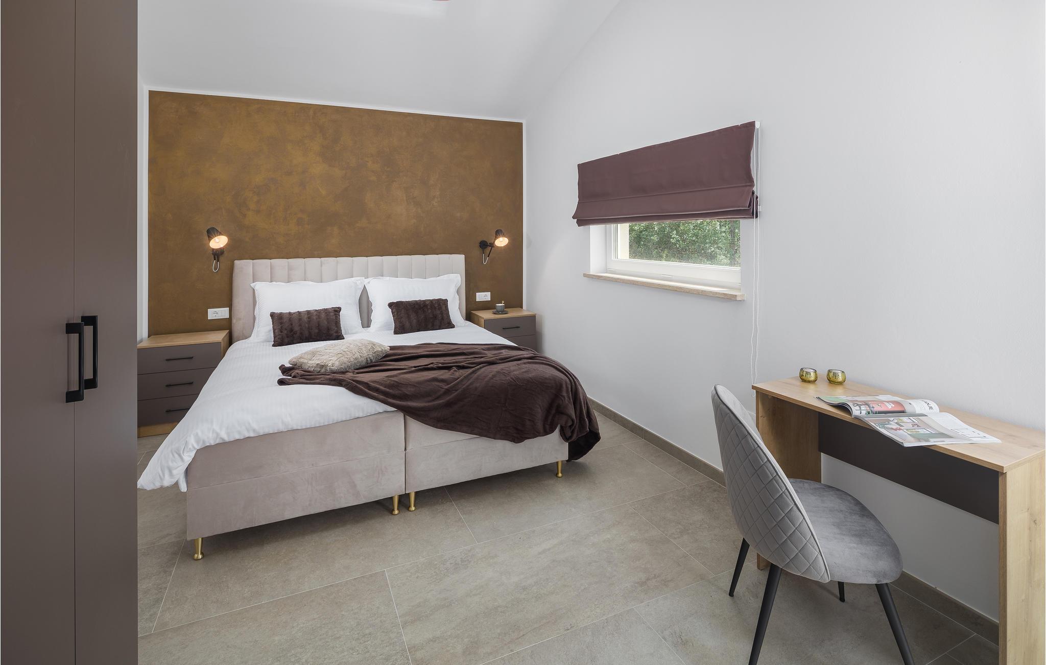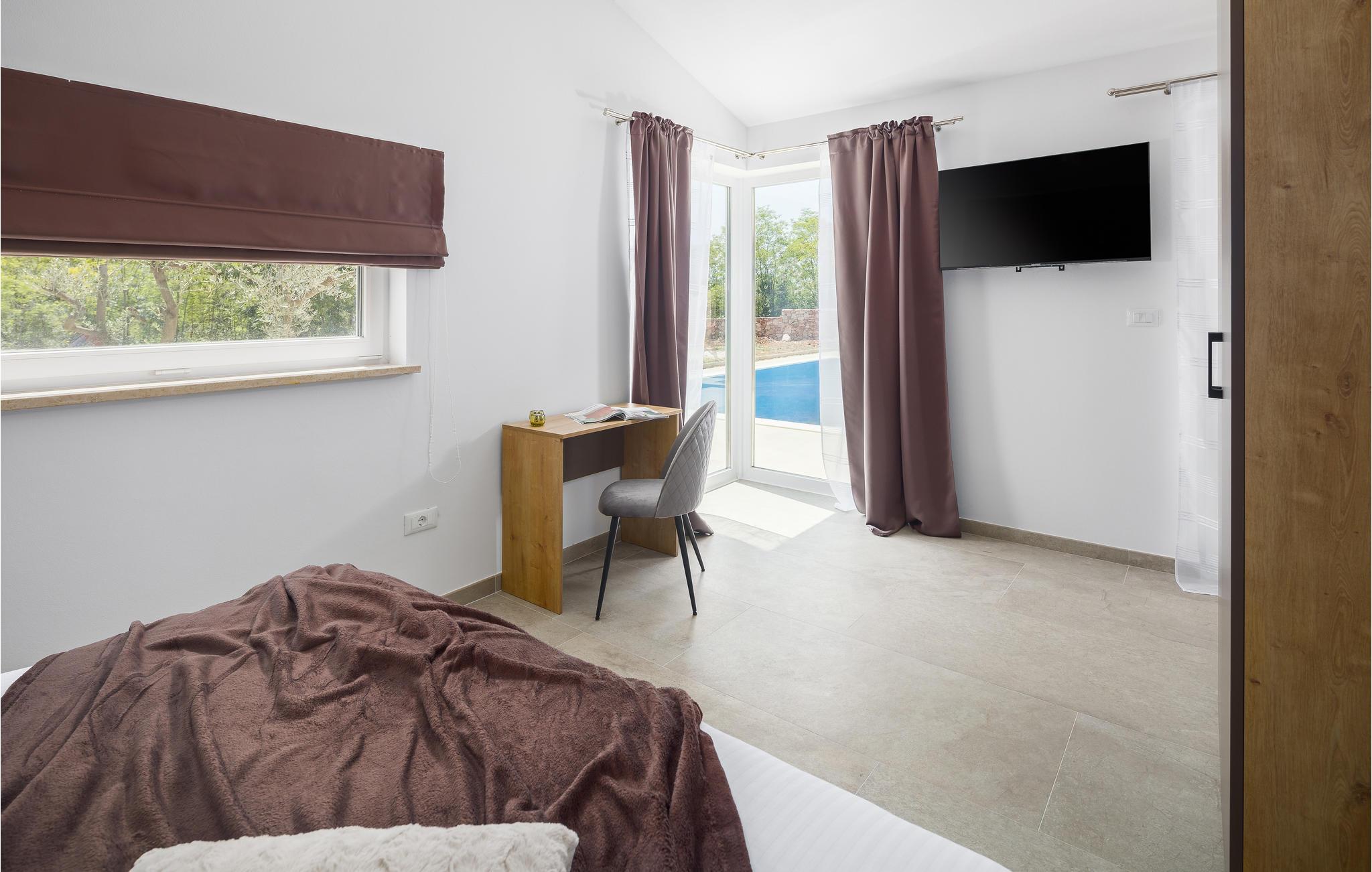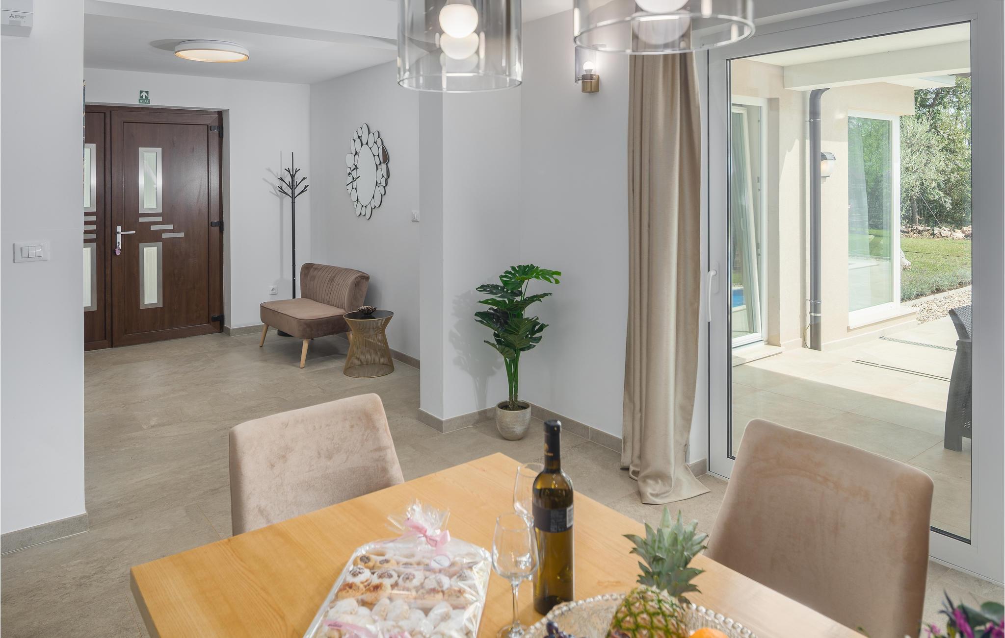 I dette vakre huset, omgitt av mye grønt og natur, kan du umiddelbart føle deg hjemme. Kom med familie, venner og din elskede firbente venn for å tilbringe en hyggelig tid i Istria. Villaen tilbyr deg god plass og utallige underholdningsmuligheter. Gjør deg komfortabel i de romslige rommene og veksle avslapning med aktivitet. Du kan forfriske deg i bassenget og deretter slappe av på solsengene, eller utfordre dine kjære til en kamp med bordfotball. Sofaen er også et flott sted å slappe av, og det moderne kjøkkenet inviterer deg til å tilberede favorittrettene dine.