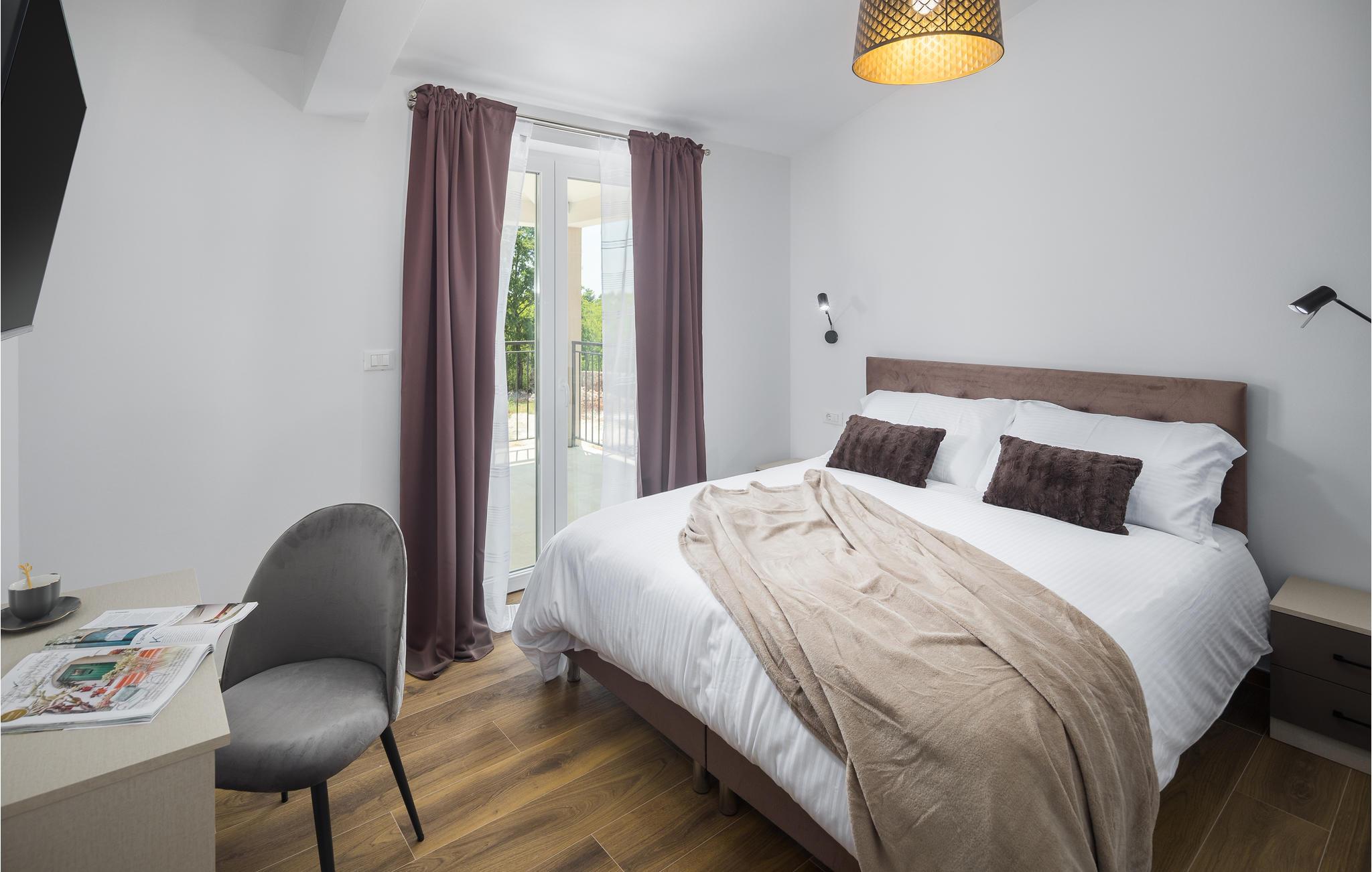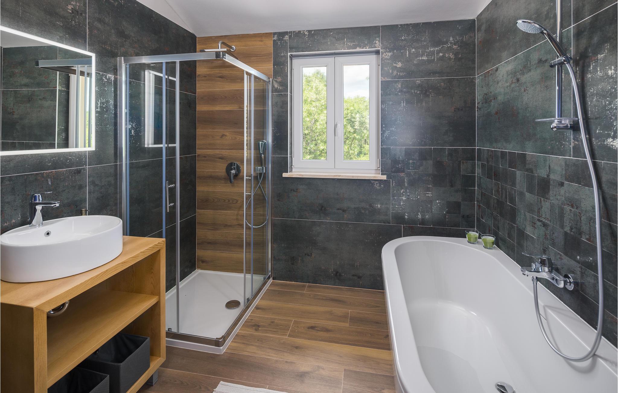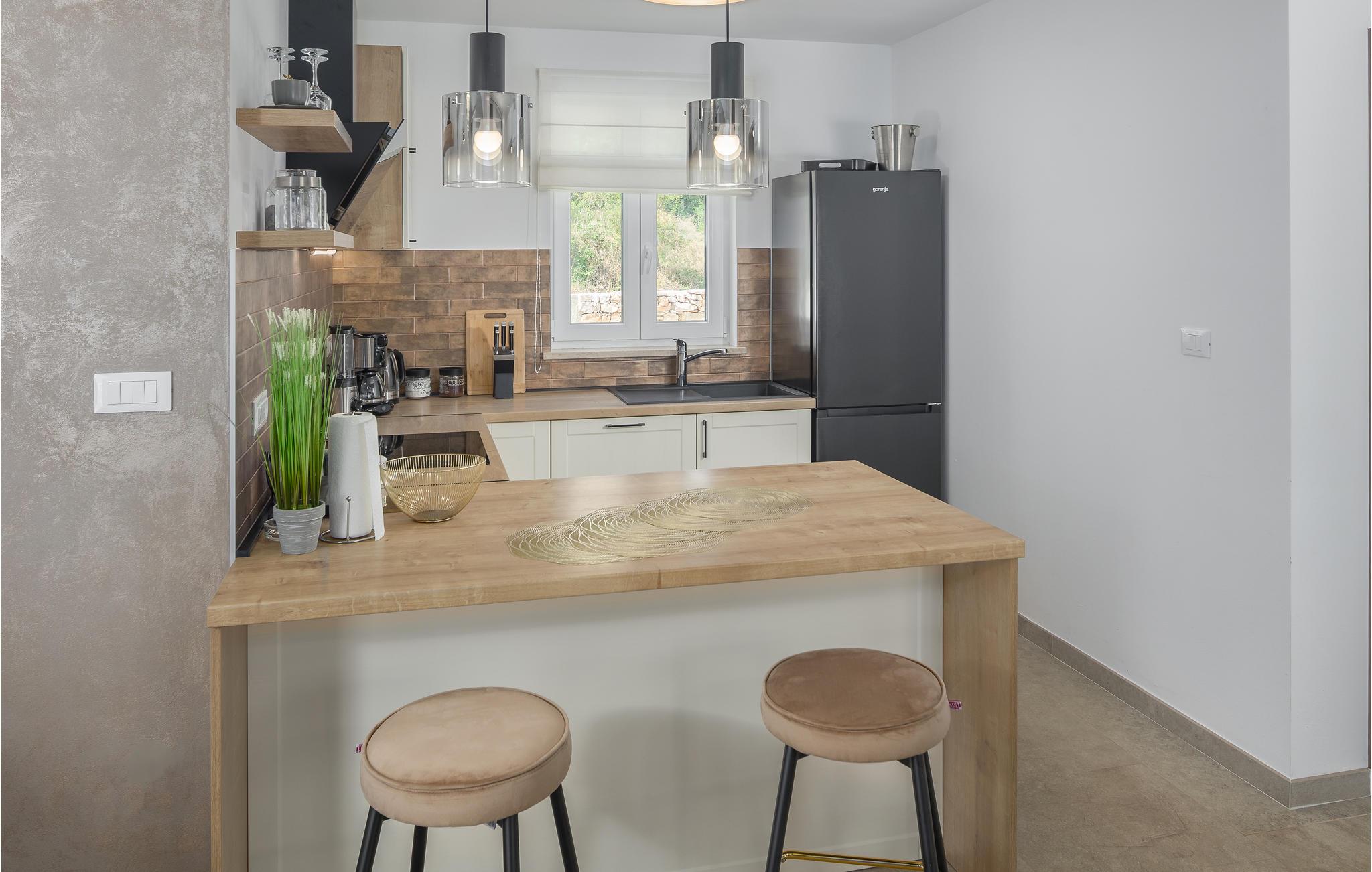 I dette vakre huset, omgitt av mye grønt og natur, kan du umiddelbart føle deg hjemme. Kom med familie, venner og din elskede firbente venn for å tilbringe en hyggelig tid i Istria. Villaen tilbyr deg god plass og utallige underholdningsmuligheter. Gjør deg komfortabel i de romslige rommene og veksle avslapning med aktivitet. Du kan forfriske deg i bassenget og deretter slappe av på solsengene, eller utfordre dine kjære til en kamp med bordfotball. Sofaen er også et flott sted å slappe av, og det moderne kjøkkenet inviterer deg til å tilberede favorittrettene dine.