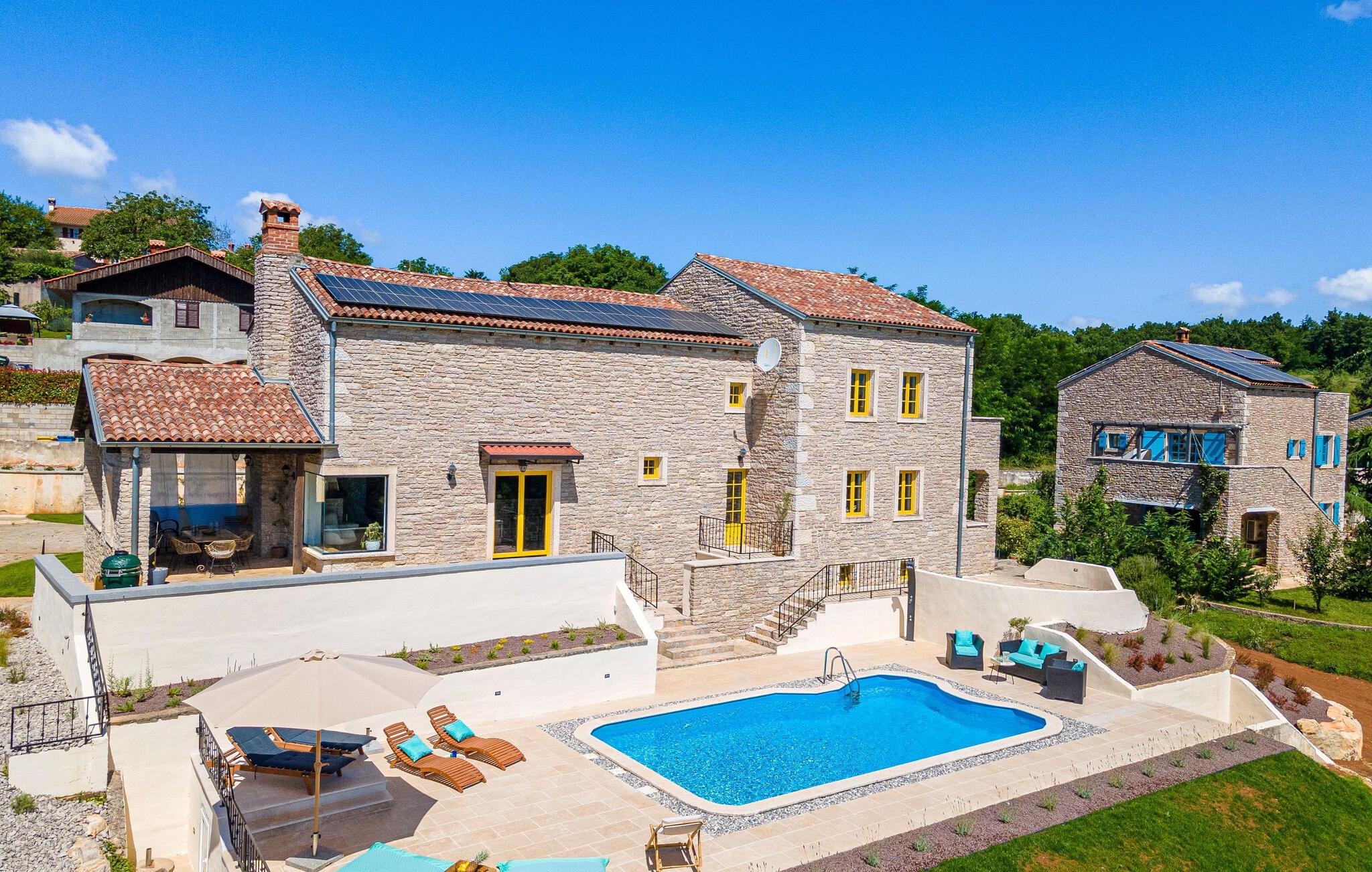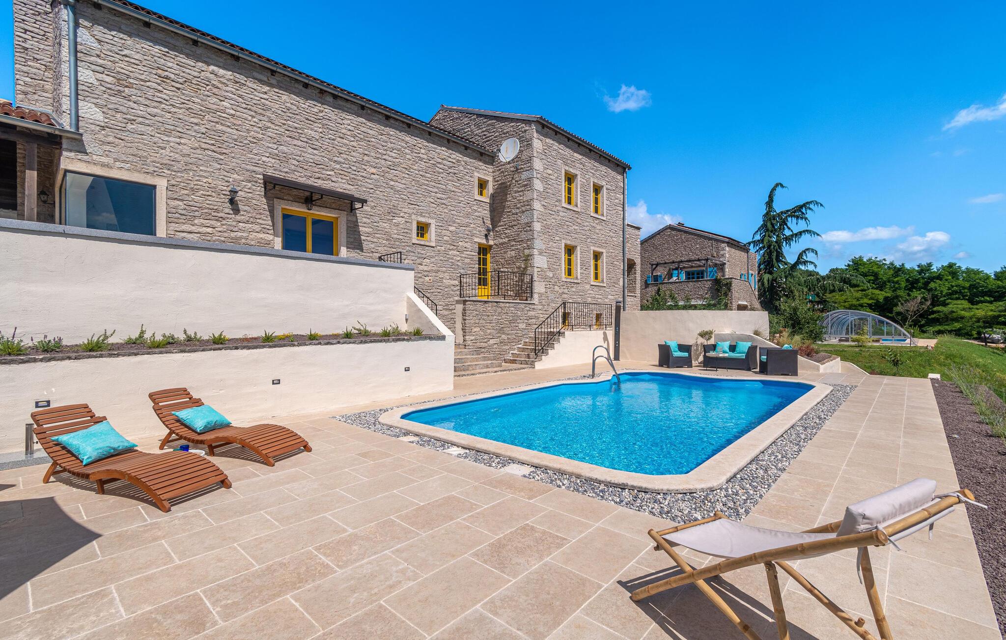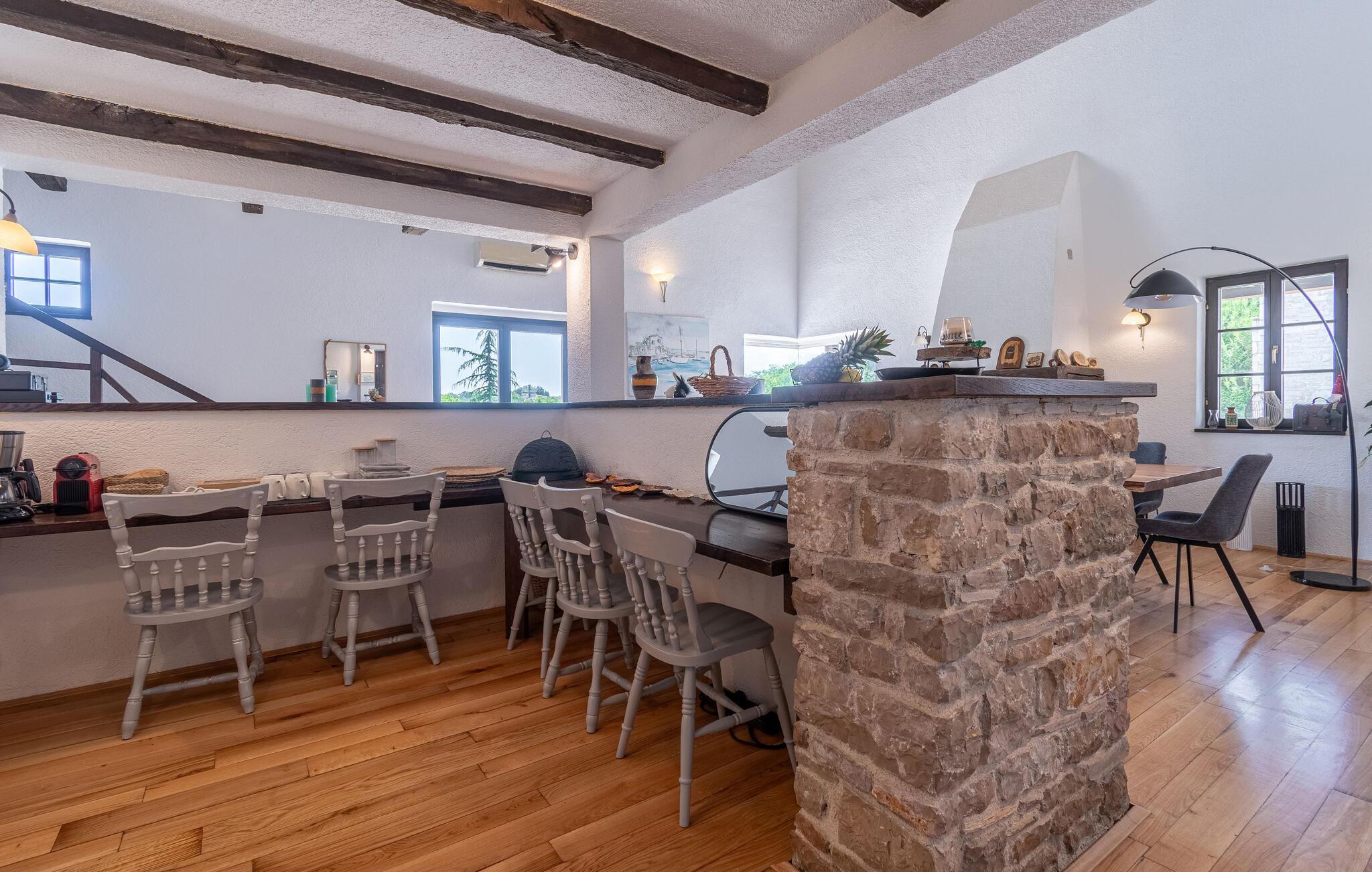 Ditt moderne feriehus i Brajkovici i nærheten av Pazin tilbyr rustikk eleganse og maksimal komfort. Slå deg ned på den solfylte terrassen, som er utstyrt med koselige utemøbler, og nyt de fredelige omgivelsene. Bassenget byr på en forfriskende dukkert, mens badstuen gir avslapning for kropp og sjel. Start dagen med en avslappet frokost på den store overbygde terrassen, og avslutt kvelden med en koselig grillfest. Husets romslige oppholdsrom innbyr til avslapping. Den rustikke sjarmen i interiøret skaper den perfekte feel-good-atmosfæren.
