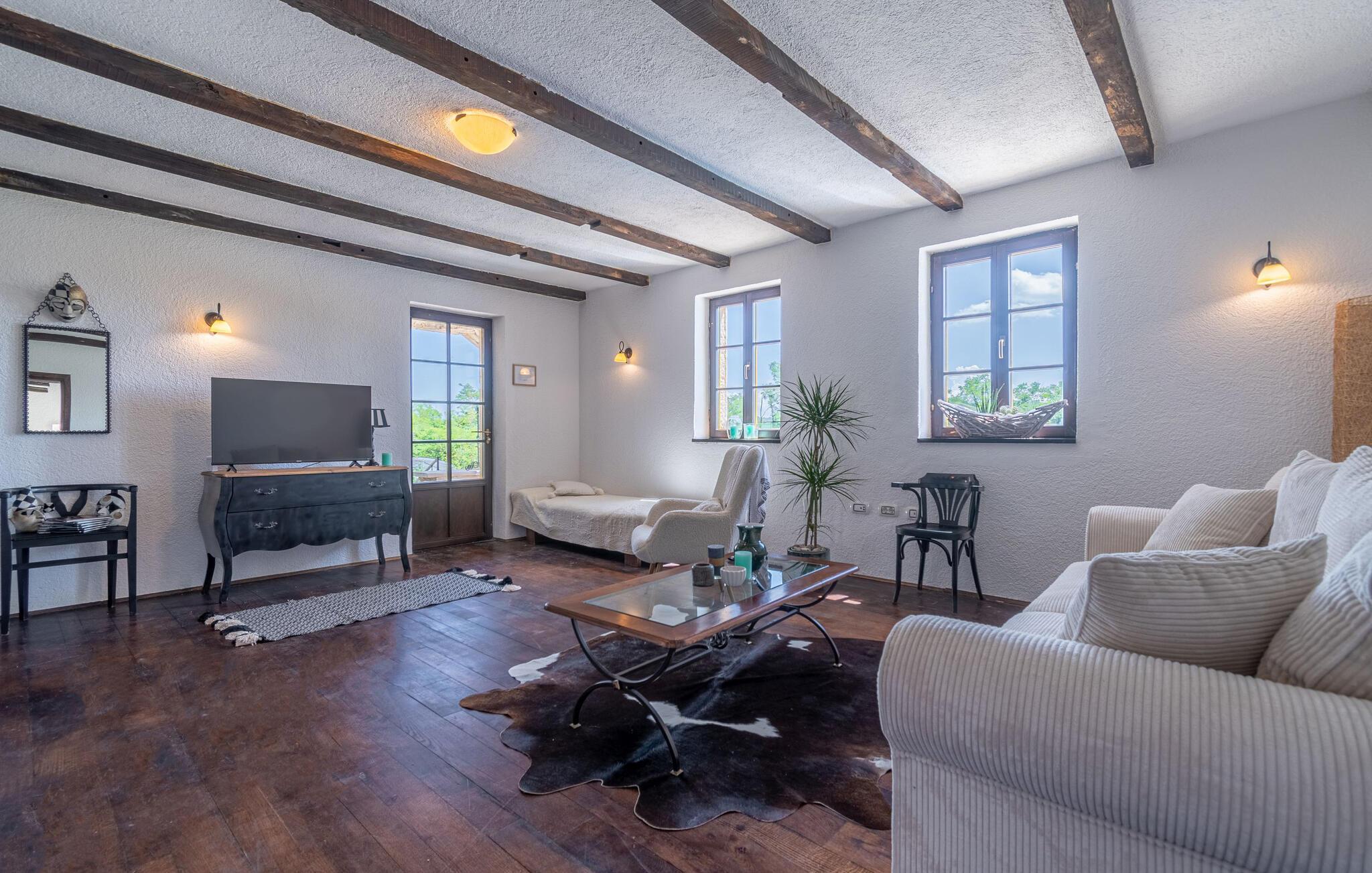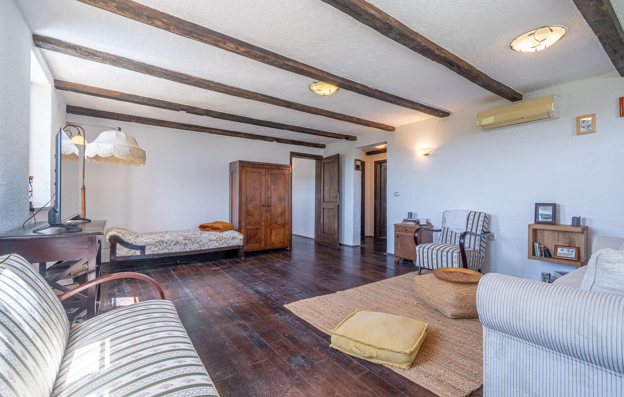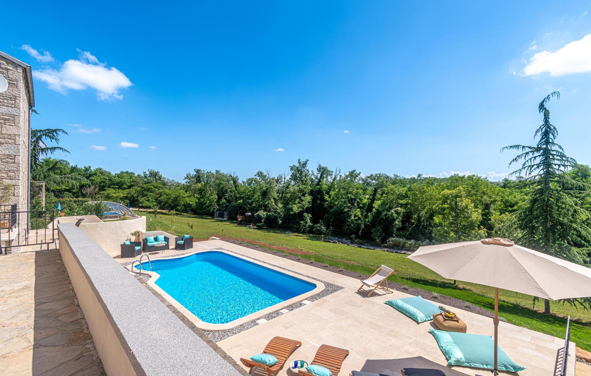 Ditt moderne feriehus i Brajkovici i nærheten av Pazin tilbyr rustikk eleganse og maksimal komfort. Slå deg ned på den solfylte terrassen, som er utstyrt med koselige utemøbler, og nyt de fredelige omgivelsene. Bassenget byr på en forfriskende dukkert, mens badstuen gir avslapning for kropp og sjel. Start dagen med en avslappet frokost på den store overbygde terrassen, og avslutt kvelden med en koselig grillfest. Husets romslige oppholdsrom innbyr til avslapping. Den rustikke sjarmen i interiøret skaper den perfekte feel-good-atmosfæren.