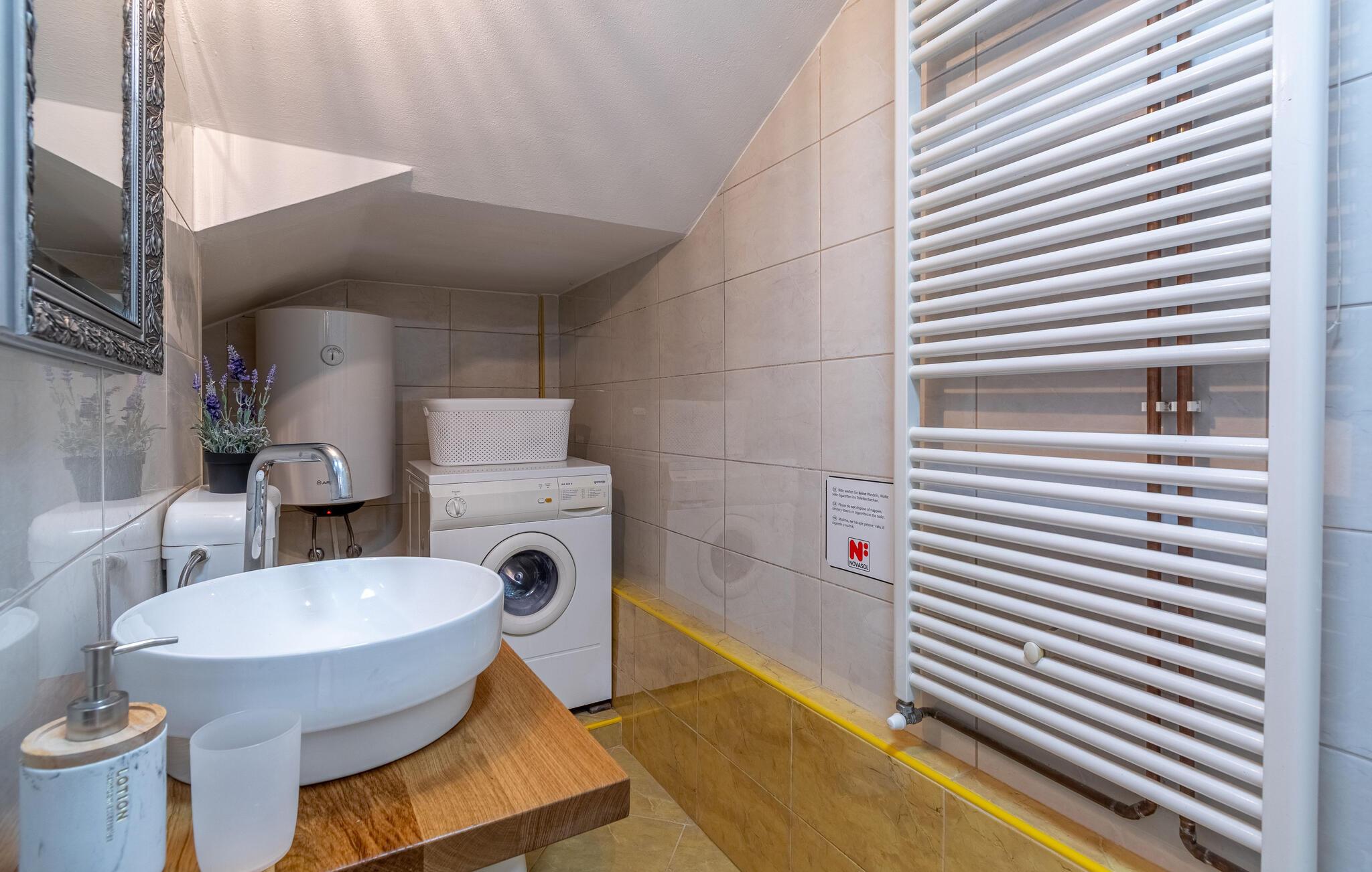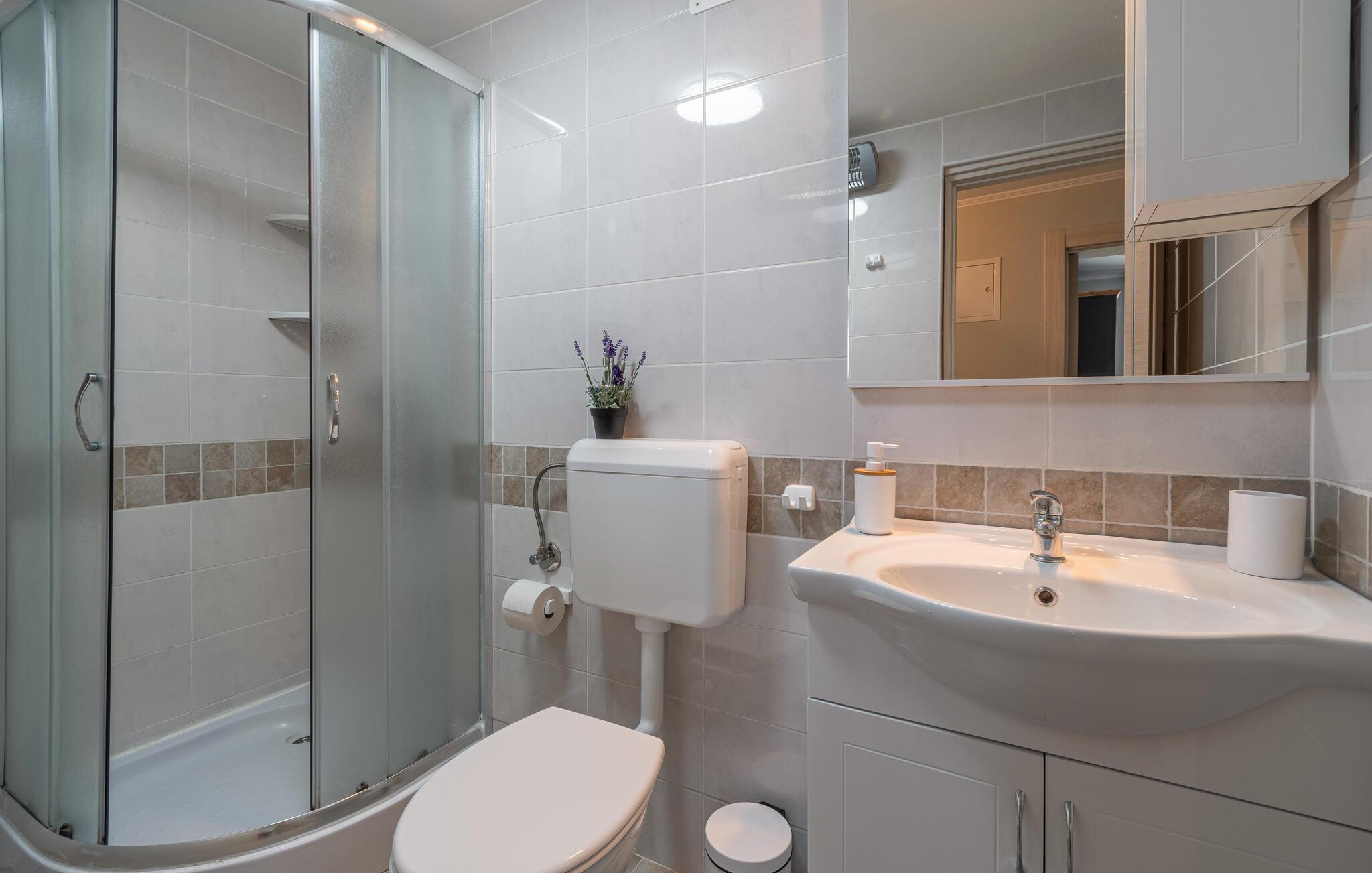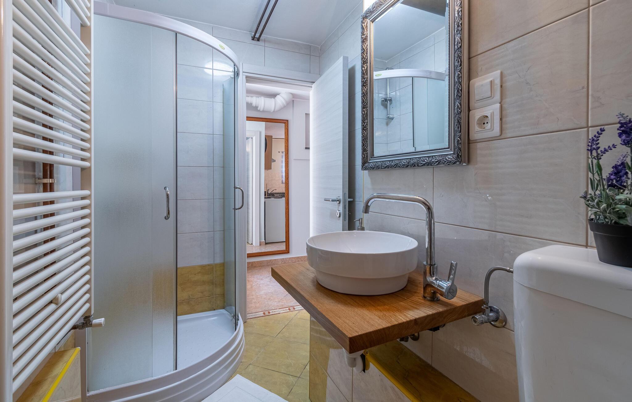 - WC med varmt og kaldt vann, Dusj