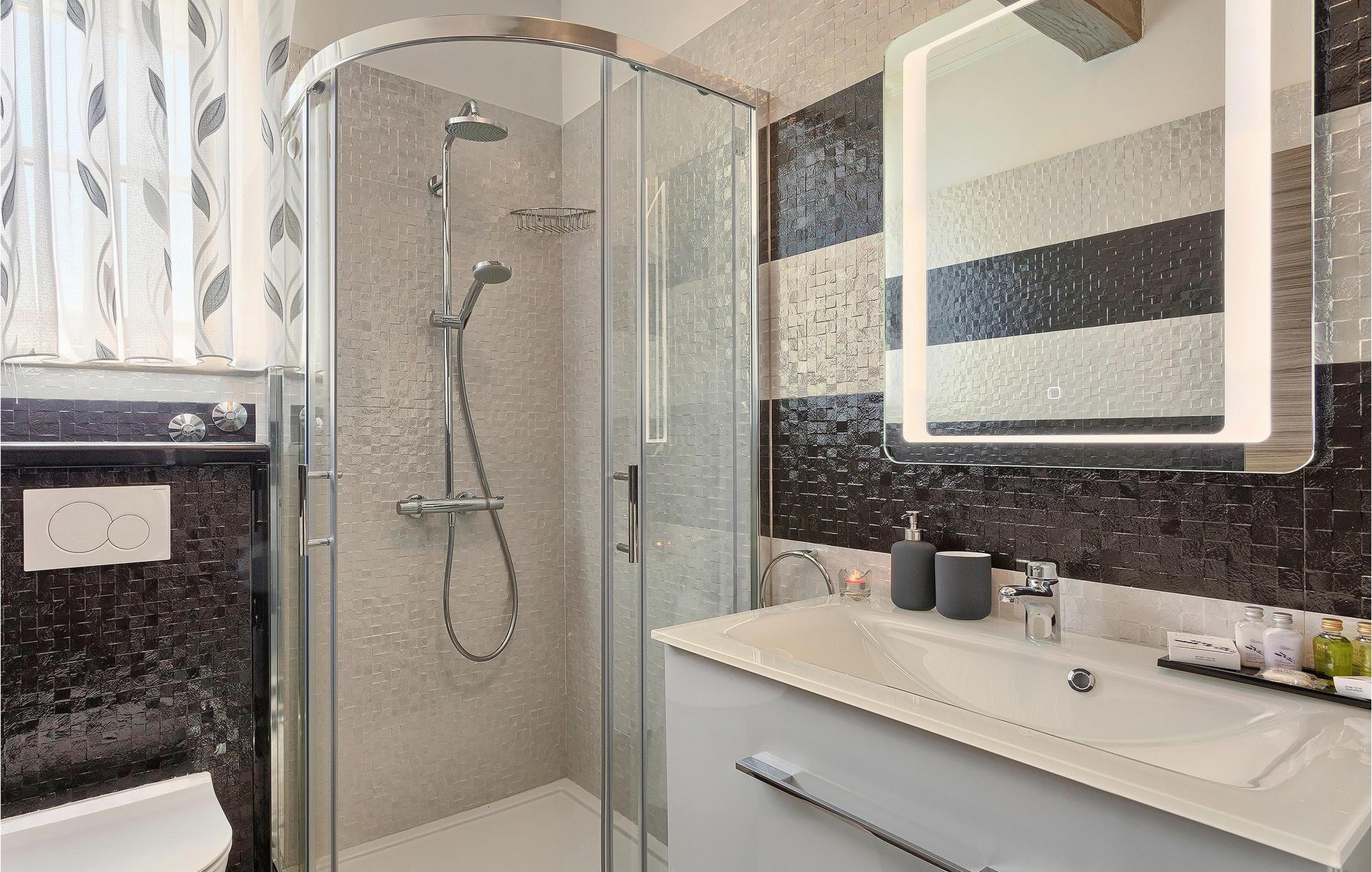 - WC med varmt og kaldt vann, Dusj