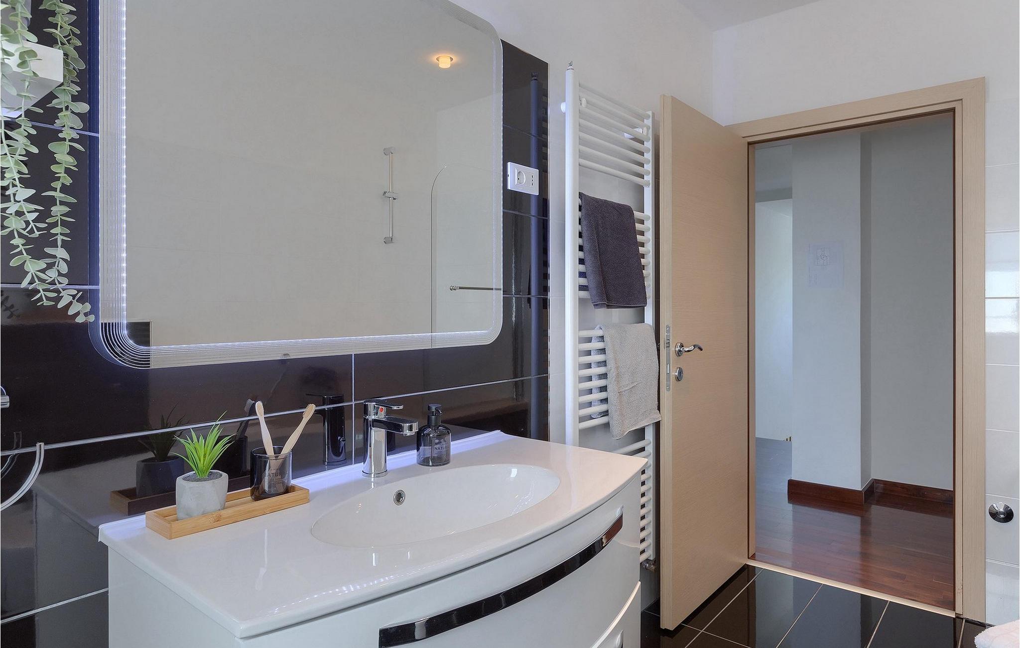 Bestill Villa Brdo og tilbring en avslappende familieferie i Istria! Villa Brdo er utelukkende beregnet på familieferier og ikke på ville fester og yngre grupper av besøkende. Villa Brdo ligger i den lille landsbyen Katun Trviski i hjertet av Istria, nær byen Pazin, hvor du kan tilbringe en fredelig ferie. Selv om villaen ligger i et rolig område, finner du mange severdigheter i nærområdet som absolutt er verdt et besøk. I nærheten av den lille byen Trviz på Piloscak-høyden ligger et av Istrias vakreste utsiktspunkter. Villaen ligger midt i Istria, og er et ideelt utgangspunkt for å utforske denne fantastiske regionen. Mange landsbyer og byer på bakketoppene vil fortrylle deg med sin autentisitet, interessante arkitektur og tradisjon. Du kan også besøke byen Pazin, der slottet Pazin er spesielt verdt et besøk. Hvis du er på vei mot kysten, bør du besøke byene Porec og Novigrad, som ligger bare 30 kilometer fra villaen. I sommermånedene byr Porec og Novigrad på en rekke kultur- og underholdningsarrangementer. En viktig del av besøket i Istria er også å smake på de mest berømte istriske spesialitetene som olivenolje, istrisk prosciutto (prsut) og trøfler. Du finner dem på alle restauranter og tavernaer i Istria. Dette området er også ideelt for alle aktive feriegjester, for det sentrale Istria har mange sykkel- og turstier.