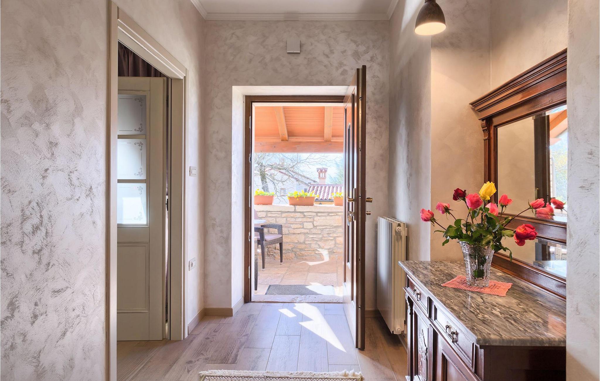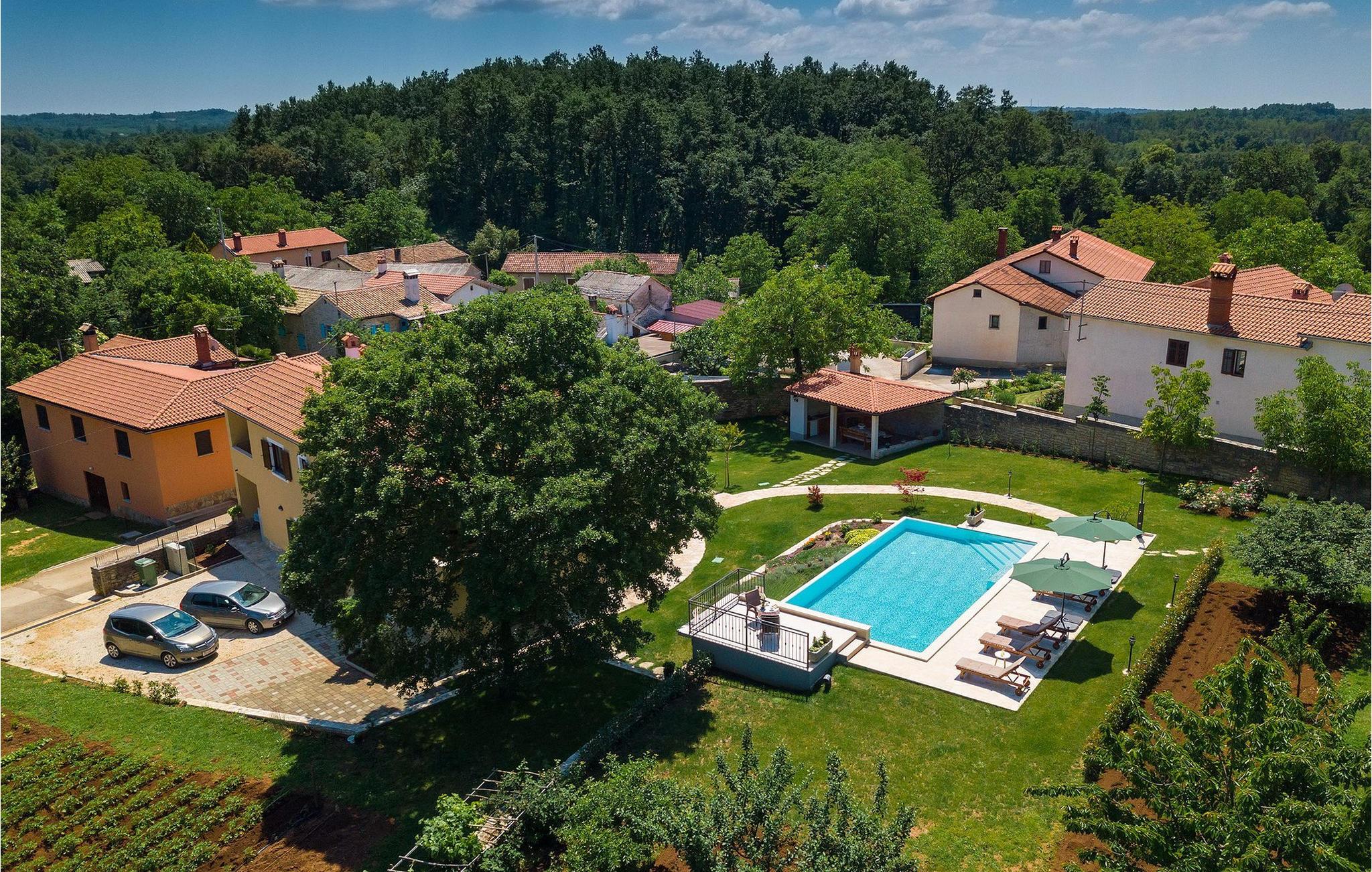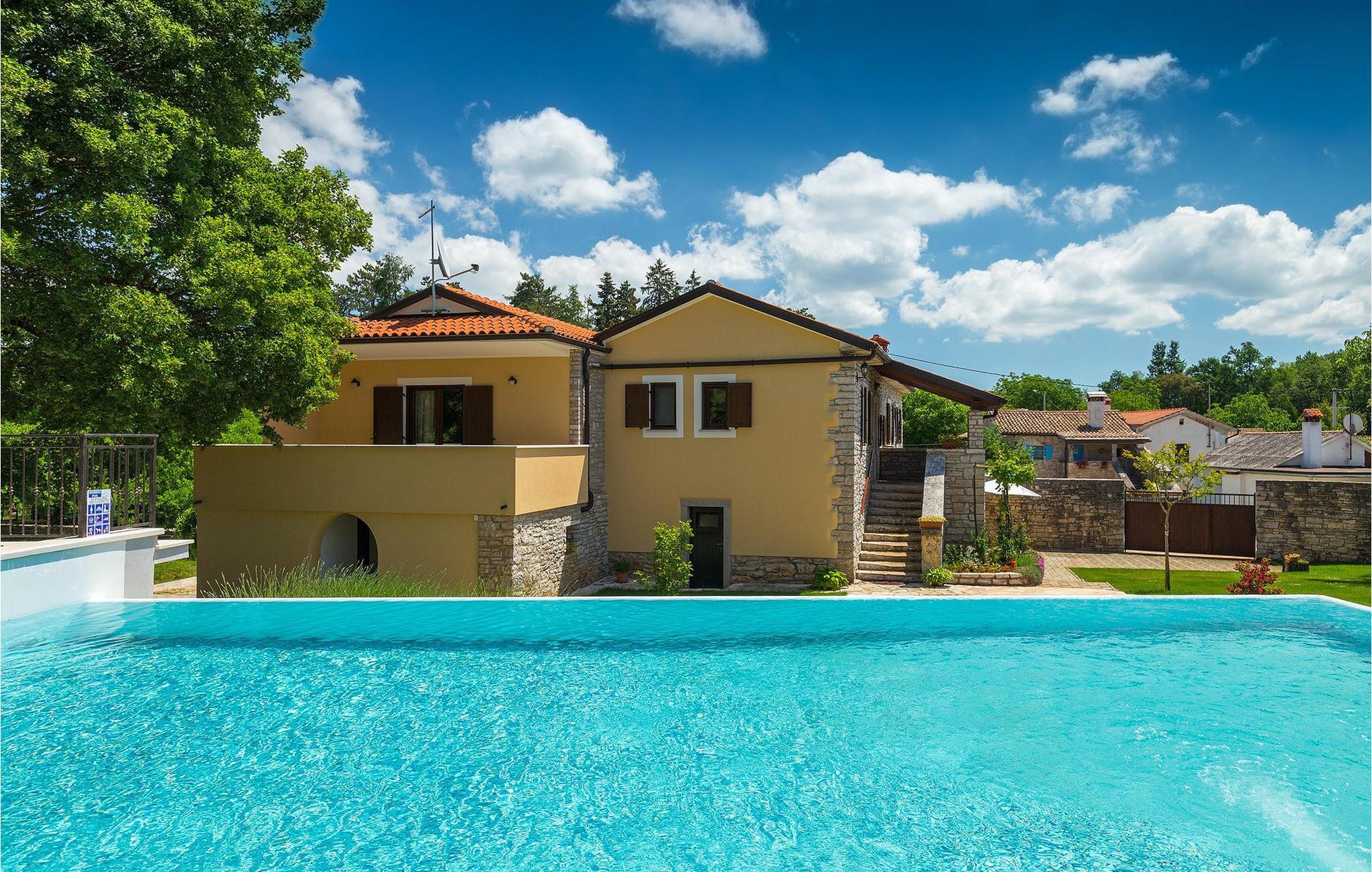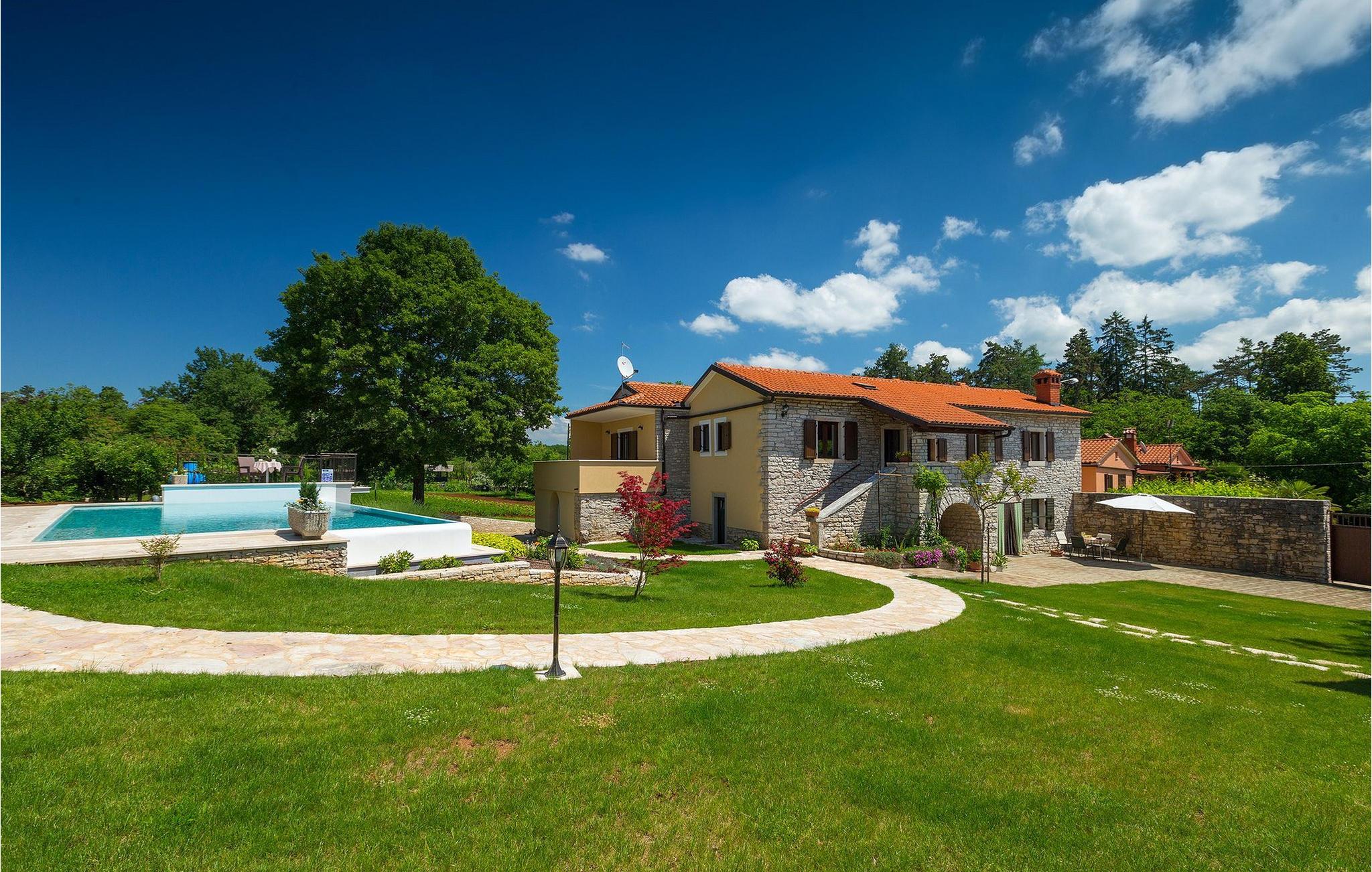 Vakre Villa Sany, som ligger i hjertet av Istria, er det ideelle valget for deg som drømmer om en avslappende ferie. Den rustikke steinvillaen har en privat, stor og velstelt hage hvor de yngste gjestene kan løpe rundt mens resten av gruppen nyter solen ved bassenget. Ved siden av bassenget med vannmassasje er det et utekjøkken med grill hvor du kan tilberede lokale spesialiteter og spise utendørs mens du er omgitt av duften av Middelhavet. Villaens interiør er innredet med kjærlighet. Alle rommene ligger i første etasje. Første etasje leies ikke ut. Til din disposisjon har du 3 soverom, den koselige stuen og det fullt utstyrte kjøkkenet med spiseplass. Med 3 soverom har villaen plass til opptil 6 personer. Ett av soverommene har til og med egen terrasse med utsikt over bassengområdet og hagen. Villaen har klimaanlegg, WiFi og 3 parkeringsplasser.fantastiske Villa Sany ligger midt i sentrum og er omgitt av vakker, fredelig natur. Bare en kort kjøretur fra villaen finner du Pazin-slottet og Pazin-grotten, hvor du kan prøve Kroatias mest berømte zipline-tur. Du finner også en rideklubb og en lekeplass i nærheten. Kystbyene i Istria er lett tilgjengelige fra Pazin - Poren og Rovinj på vestkysten og Pula sør på halvøya. Sentralt i Istria kan du besøke de mange små middelalderbyene og smake på tradisjonelle spesialiteter mens du nyter den vakre utsikten over omgivelsene, som uimotståelig minner om Toscana eller Provence. Istria er kjent for sitt kjøkken - den berømte istriske prosciuttoen, svinemørbraden og pølsene har en spesiell smak og aroma, mens fisk og sjømat kommer fra den idylliske skjærgården. Det sentrale Istria er ideelt for sykkel- og fotturer.