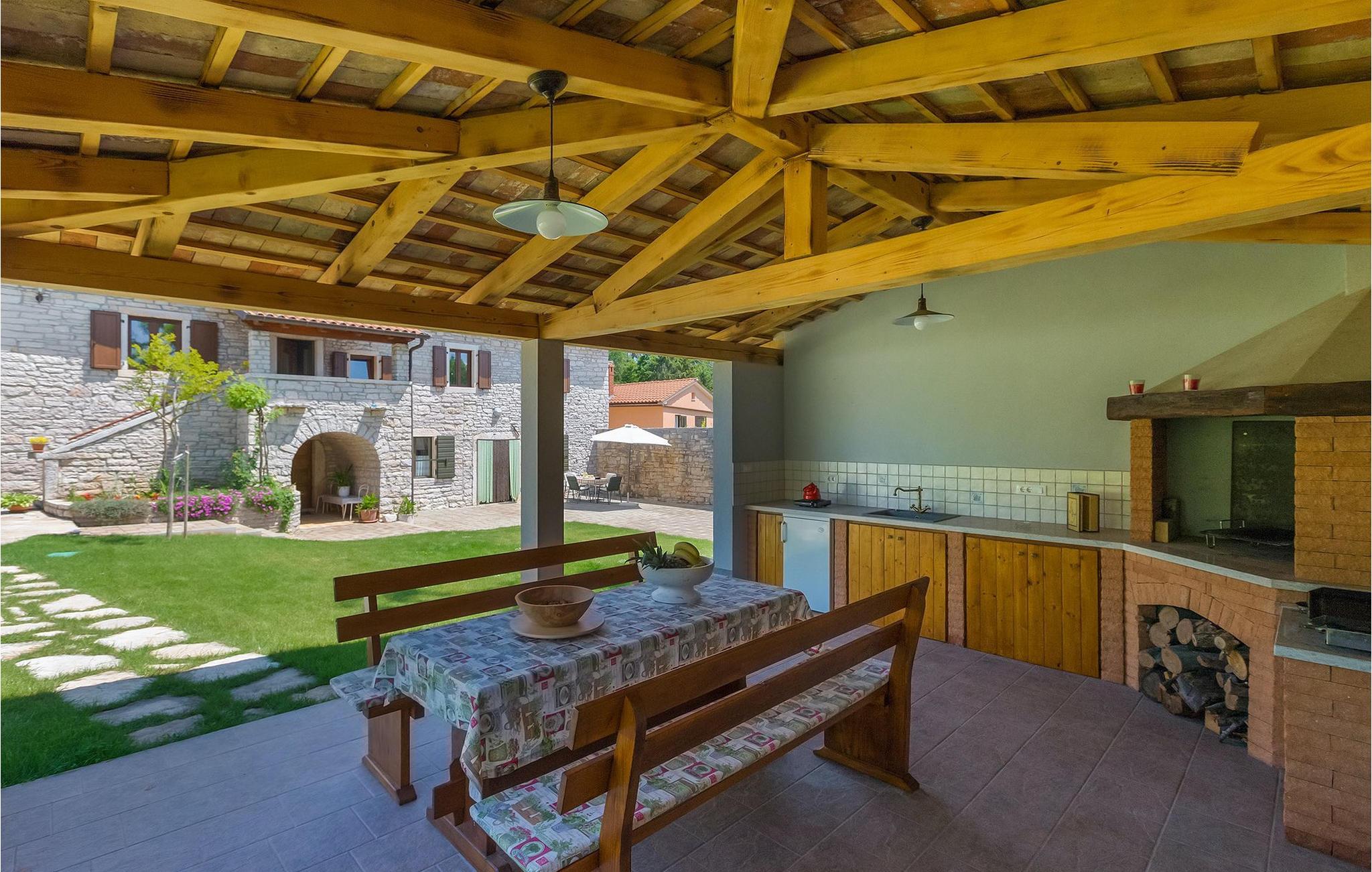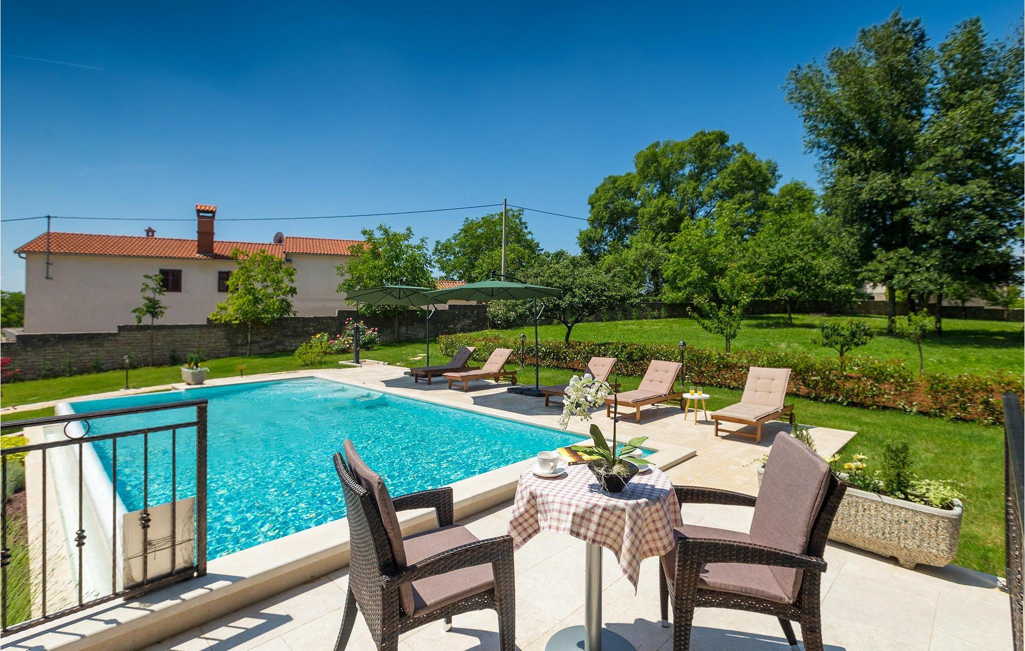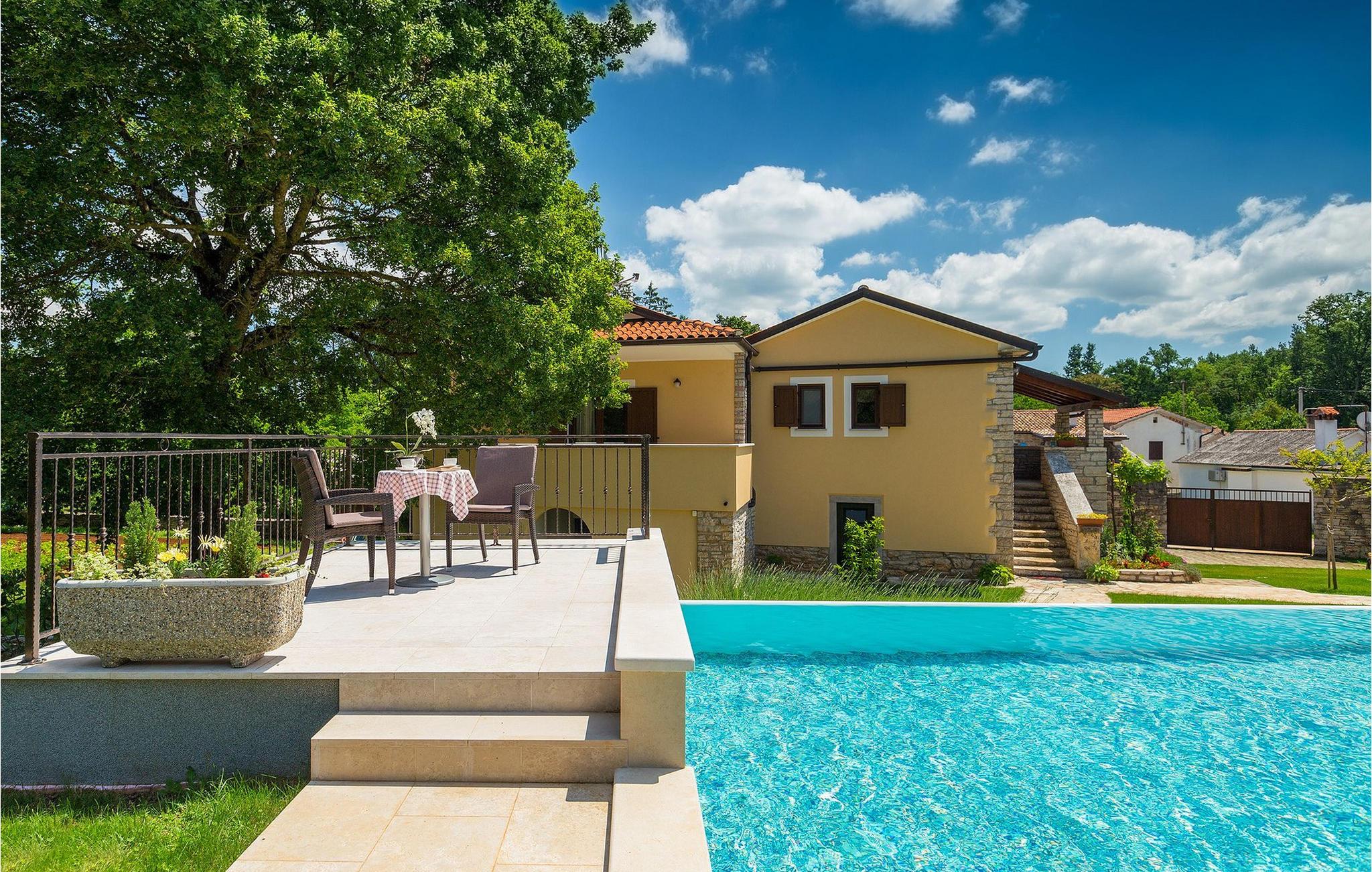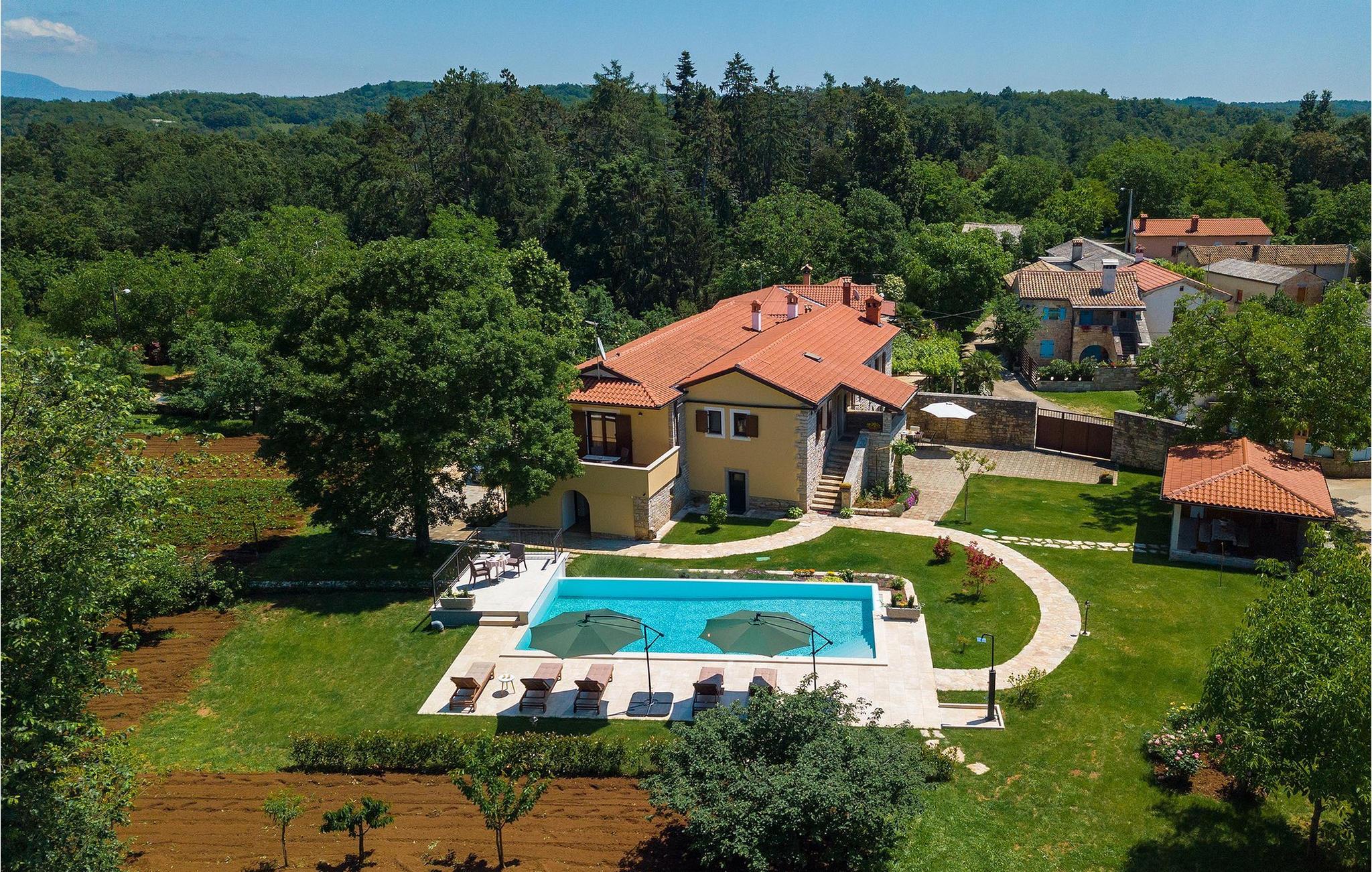 Vakre Villa Sany, som ligger i hjertet av Istria, er det ideelle valget for deg som drømmer om en avslappende ferie. Den rustikke steinvillaen har en privat, stor og velstelt hage hvor de yngste gjestene kan løpe rundt mens resten av gruppen nyter solen ved bassenget. Ved siden av bassenget med vannmassasje er det et utekjøkken med grill hvor du kan tilberede lokale spesialiteter og spise utendørs mens du er omgitt av duften av Middelhavet. Villaens interiør er innredet med kjærlighet. Alle rommene ligger i første etasje. Første etasje leies ikke ut. Til din disposisjon har du 3 soverom, den koselige stuen og det fullt utstyrte kjøkkenet med spiseplass. Med 3 soverom har villaen plass til opptil 6 personer. Ett av soverommene har til og med egen terrasse med utsikt over bassengområdet og hagen. Villaen har klimaanlegg, WiFi og 3 parkeringsplasser.fantastiske Villa Sany ligger midt i sentrum og er omgitt av vakker, fredelig natur. Bare en kort kjøretur fra villaen finner du Pazin-slottet og Pazin-grotten, hvor du kan prøve Kroatias mest berømte zipline-tur. Du finner også en rideklubb og en lekeplass i nærheten. Kystbyene i Istria er lett tilgjengelige fra Pazin - Poren og Rovinj på vestkysten og Pula sør på halvøya. Sentralt i Istria kan du besøke de mange små middelalderbyene og smake på tradisjonelle spesialiteter mens du nyter den vakre utsikten over omgivelsene, som uimotståelig minner om Toscana eller Provence. Istria er kjent for sitt kjøkken - den berømte istriske prosciuttoen, svinemørbraden og pølsene har en spesiell smak og aroma, mens fisk og sjømat kommer fra den idylliske skjærgården. Det sentrale Istria er ideelt for sykkel- og fotturer.