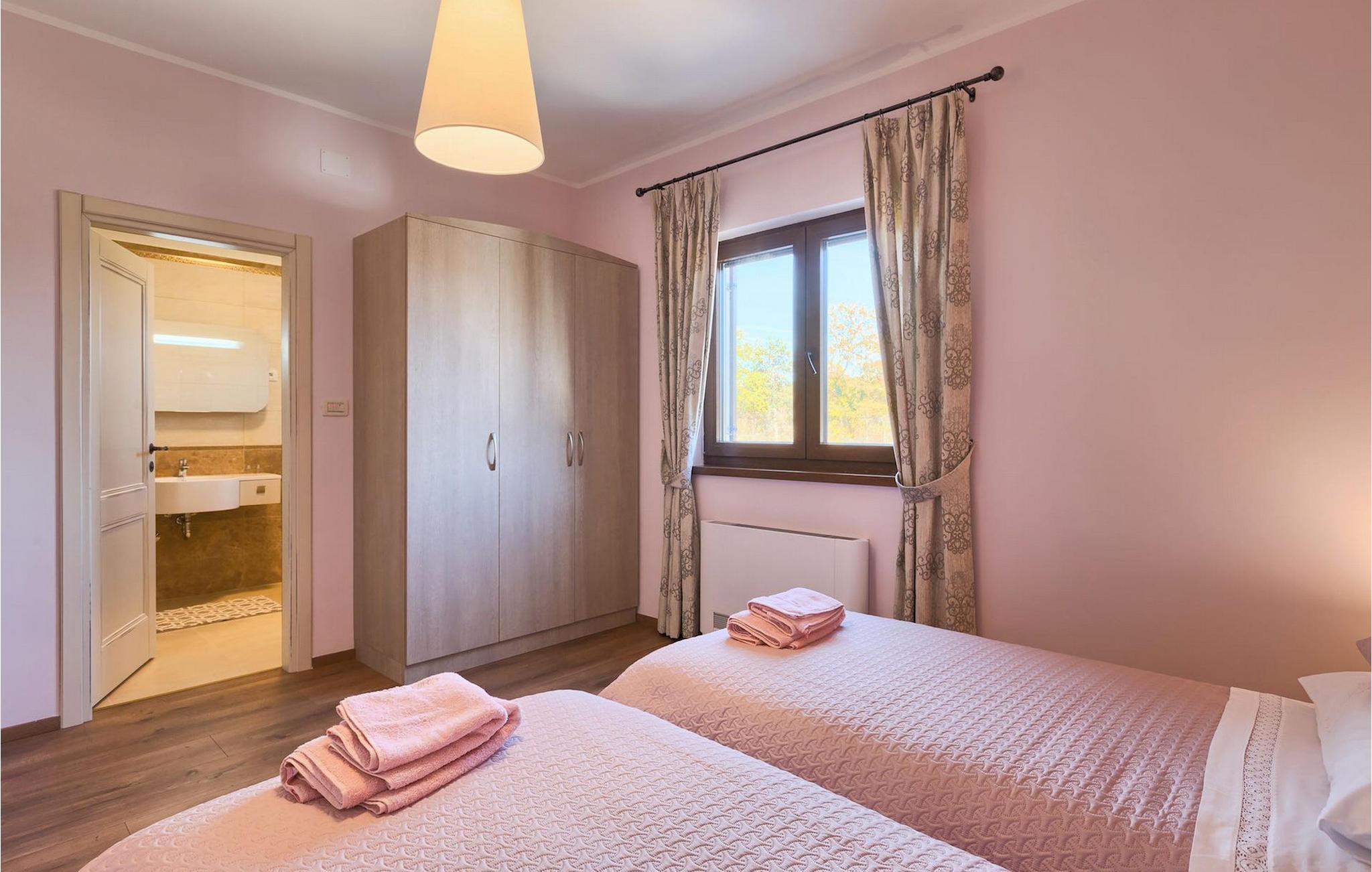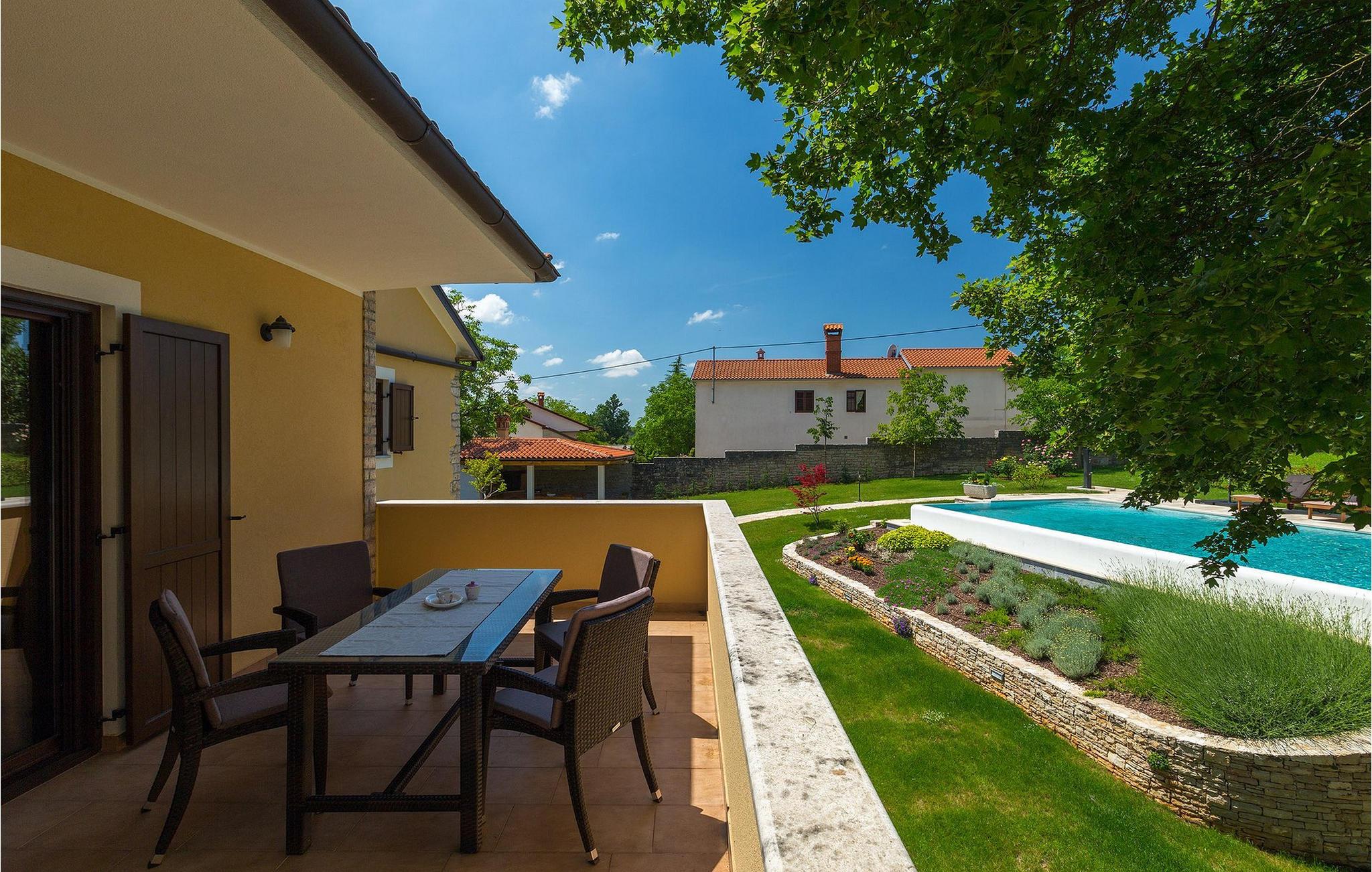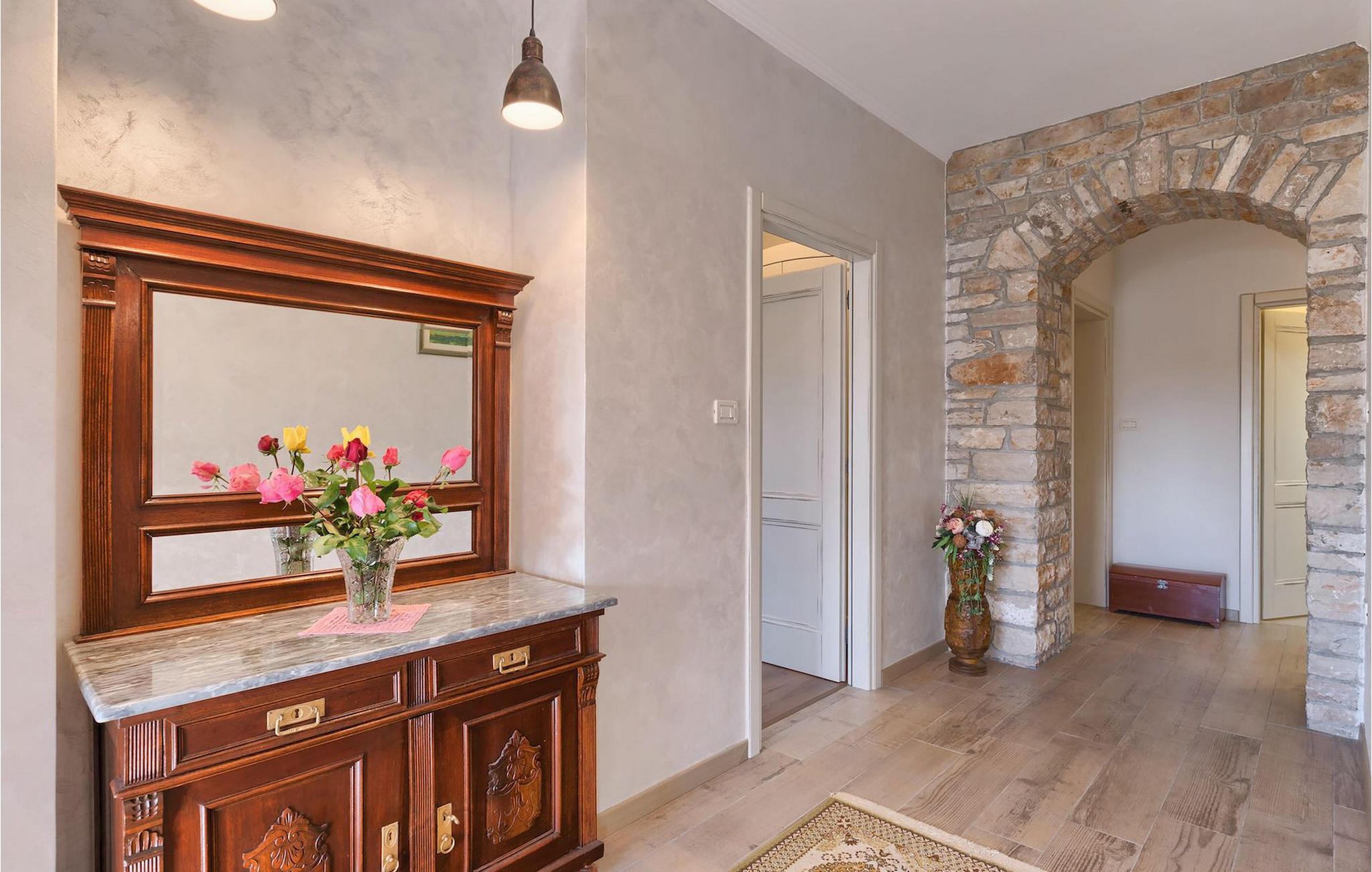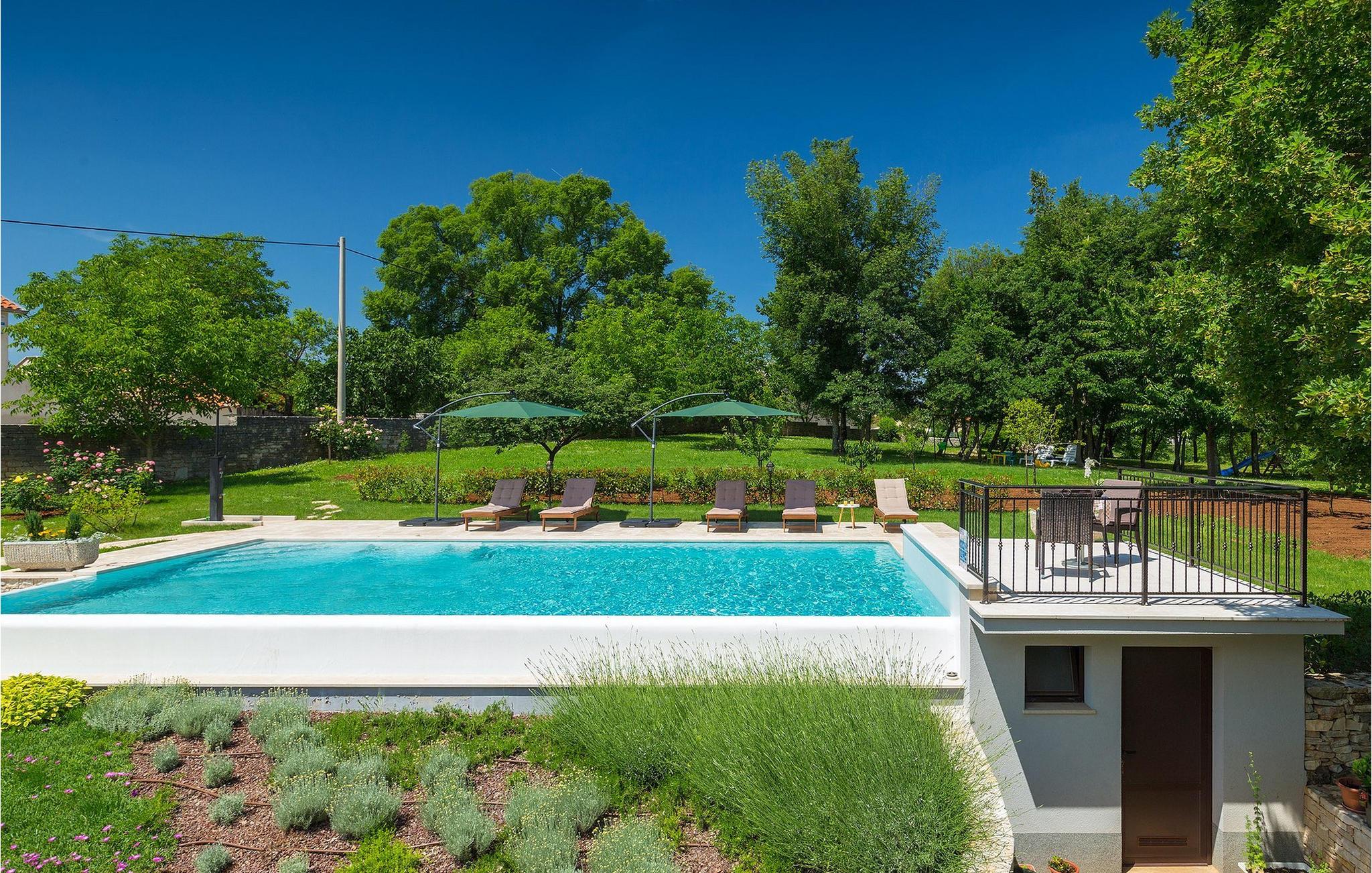 Vakre Villa Sany, som ligger i hjertet av Istria, er det ideelle valget for deg som drømmer om en avslappende ferie. Den rustikke steinvillaen har en privat, stor og velstelt hage hvor de yngste gjestene kan løpe rundt mens resten av gruppen nyter solen ved bassenget. Ved siden av bassenget med vannmassasje er det et utekjøkken med grill hvor du kan tilberede lokale spesialiteter og spise utendørs mens du er omgitt av duften av Middelhavet. Villaens interiør er innredet med kjærlighet. Alle rommene ligger i første etasje. Første etasje leies ikke ut. Til din disposisjon har du 3 soverom, den koselige stuen og det fullt utstyrte kjøkkenet med spiseplass. Med 3 soverom har villaen plass til opptil 6 personer. Ett av soverommene har til og med egen terrasse med utsikt over bassengområdet og hagen. Villaen har klimaanlegg, WiFi og 3 parkeringsplasser.fantastiske Villa Sany ligger midt i sentrum og er omgitt av vakker, fredelig natur. Bare en kort kjøretur fra villaen finner du Pazin-slottet og Pazin-grotten, hvor du kan prøve Kroatias mest berømte zipline-tur. Du finner også en rideklubb og en lekeplass i nærheten. Kystbyene i Istria er lett tilgjengelige fra Pazin - Poren og Rovinj på vestkysten og Pula sør på halvøya. Sentralt i Istria kan du besøke de mange små middelalderbyene og smake på tradisjonelle spesialiteter mens du nyter den vakre utsikten over omgivelsene, som uimotståelig minner om Toscana eller Provence. Istria er kjent for sitt kjøkken - den berømte istriske prosciuttoen, svinemørbraden og pølsene har en spesiell smak og aroma, mens fisk og sjømat kommer fra den idylliske skjærgården. Det sentrale Istria er ideelt for sykkel- og fotturer.