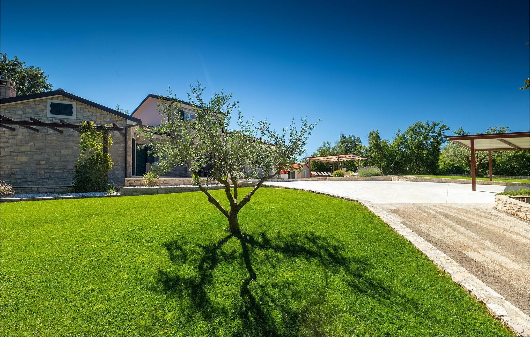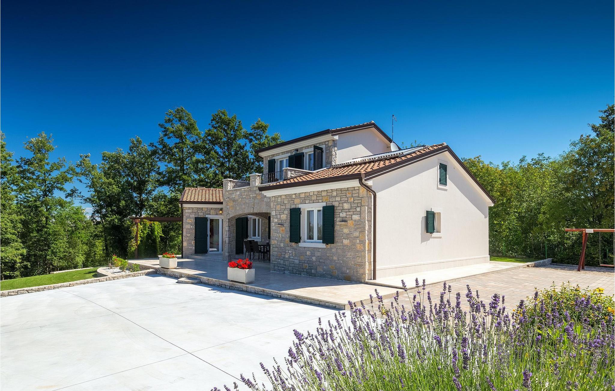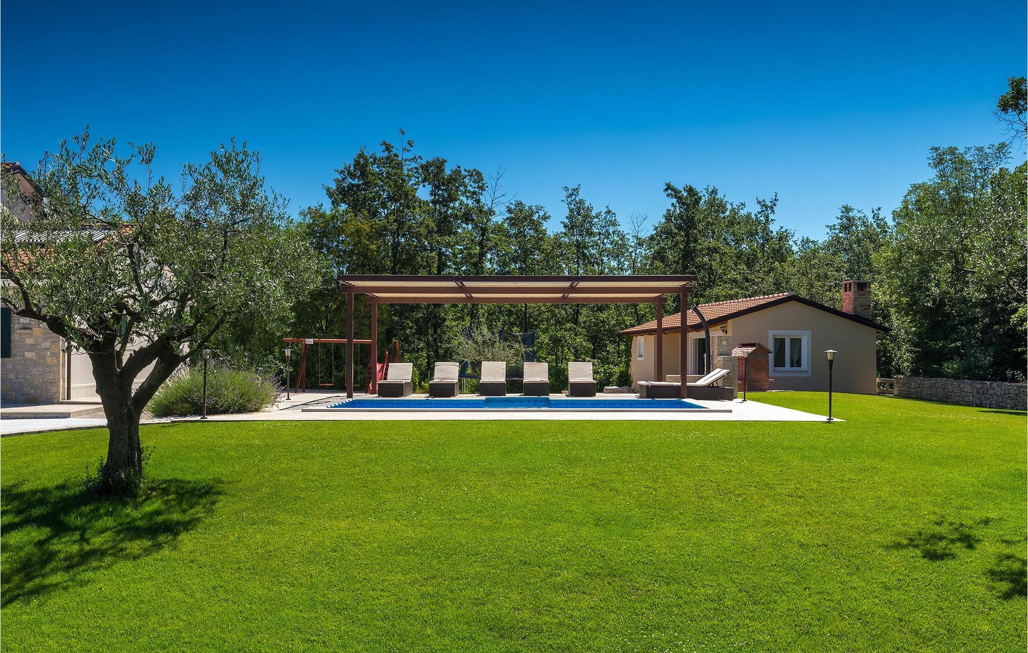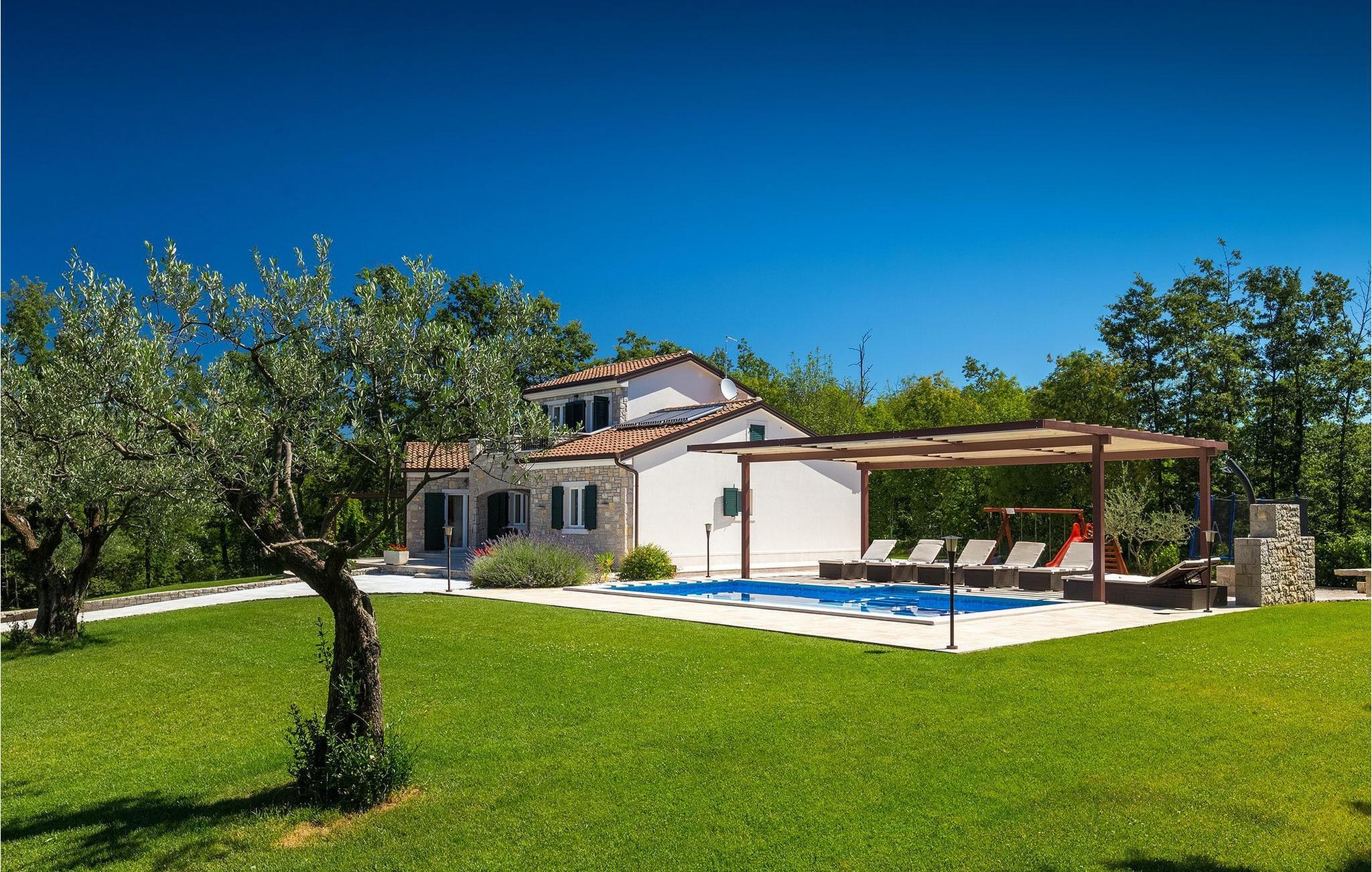 Den vakre familievillaen Funcici med privat basseng ligger midt i den idylliske naturen i det sentrale Istria. Det er et utmerket tilfluktssted for alle som ønsker å tilbringe en avslappende ferie, men som samtidig ikke vil være for langt unna større byer som Pazin. I den lyse og gjennomlyste første etasje finner du en åpen stue og et moderne, fullt utstyrt kjøkken med spiseplass. I villaens første etasje er det 2 soverom, 1 bad og et ekstra toalett. Ett av soverommene har direkte utgang til det vakre, private bassenget hvor du kan slappe av og nyte den varme istriske solen. I øverste etasje finner du enda et soverom med eget bad og en terrasse hvor du kan beundre den vakre naturen som omgir huset eller bare slappe av. I den velstelte hagen til Villa Funcici finner du også et utendørs sommerkjøkken med spiseplass, ideelt for å tilberede deilige måltider mens du puster inn den friske luften, samt det fjerde soverommet og et bad. For de som ønsker å prøve seg på en populær sport i Istria, er det en boulebane i nærheten av villaen. Den vakre familievillaen Funcici ligger midt i idyllisk natur i det sentrale Istria, ca. 7 km fra byen Pazin. Pazin, med sine lange tradisjoner og rike kultur, er det administrative senteret i Istrias fylke. På grunn av den utmerkede beliggenheten i hjertet av Istria har byen svært gode forbindelser til andre byer, og større turistsentre ligger bare ca. 30 km unna. Denne regionen har noe for enhver smak. Adrenalinelskere kan prøve zip-lining og tauhopping over det geografiske fenomenet Pazin Pit, friklatring, kajakkpadling eller speleologi. I Pazin ligger Istrias største og best bevarte middelalderslott (Kastel) over 130 meter høye klipper der elven Pazincica renner ut i Pazin-gropa. Den kjente franske forfatteren Jules Verne ble også inspirert av Pazin, og deler av romanen hans "Mathias Sandorf" utspiller seg i Pazin. I dag finnes det en Jules Verne-klubb i byen, og Jules Verne-dagene arrangeres hvert år i slutten av juni.
