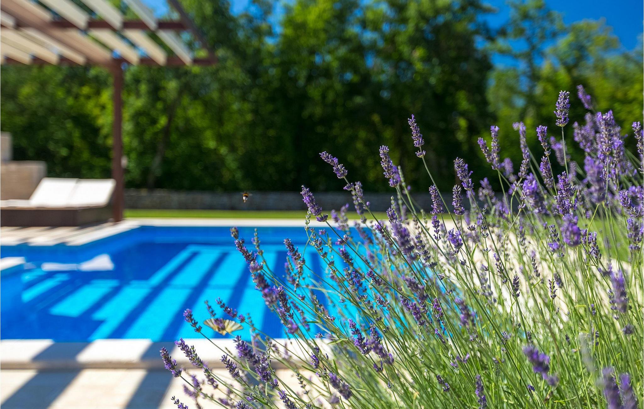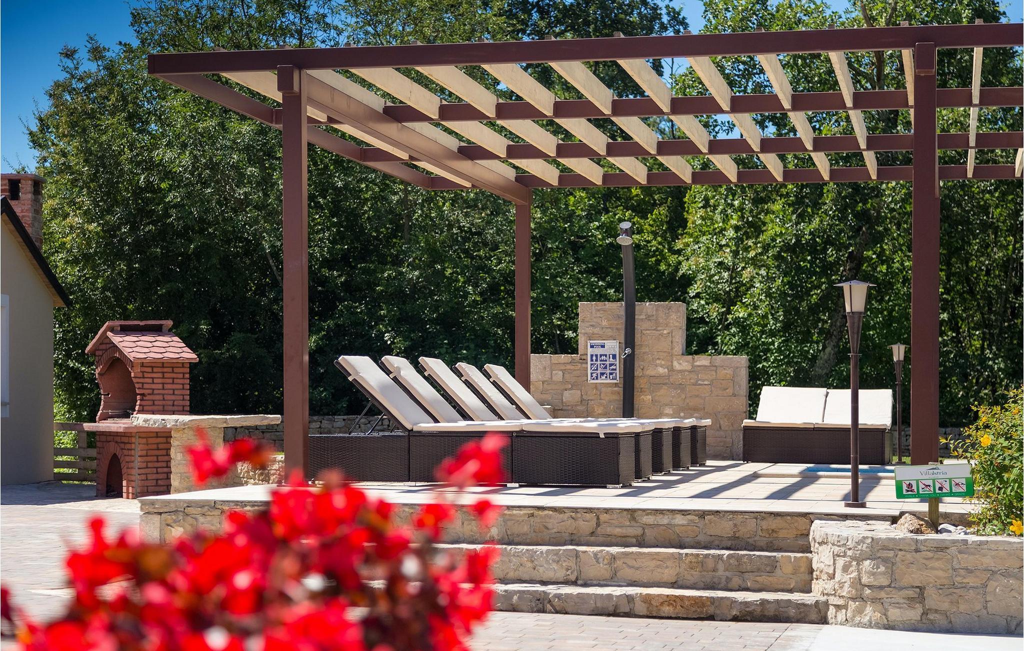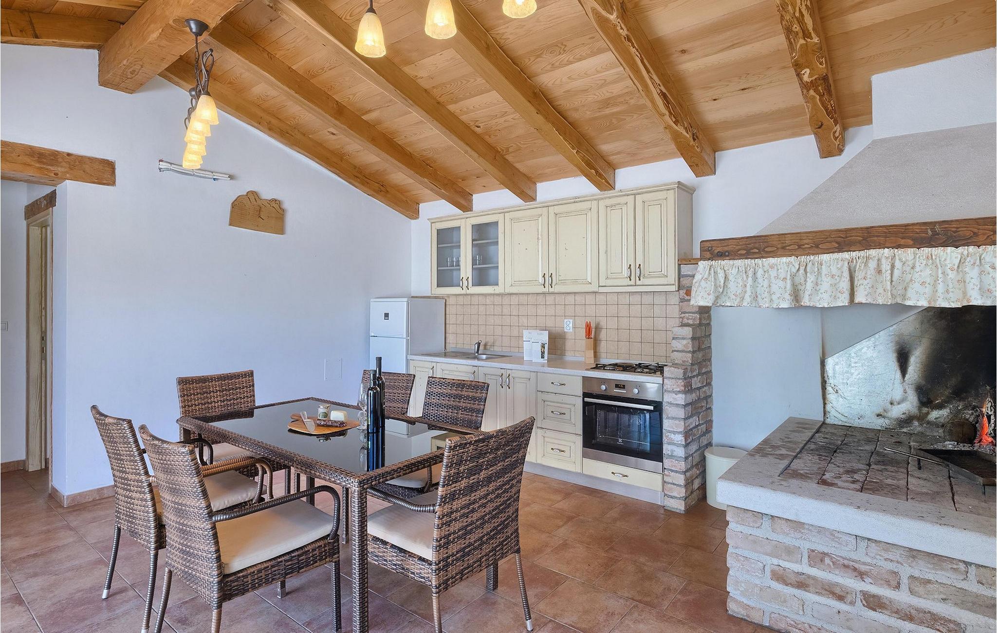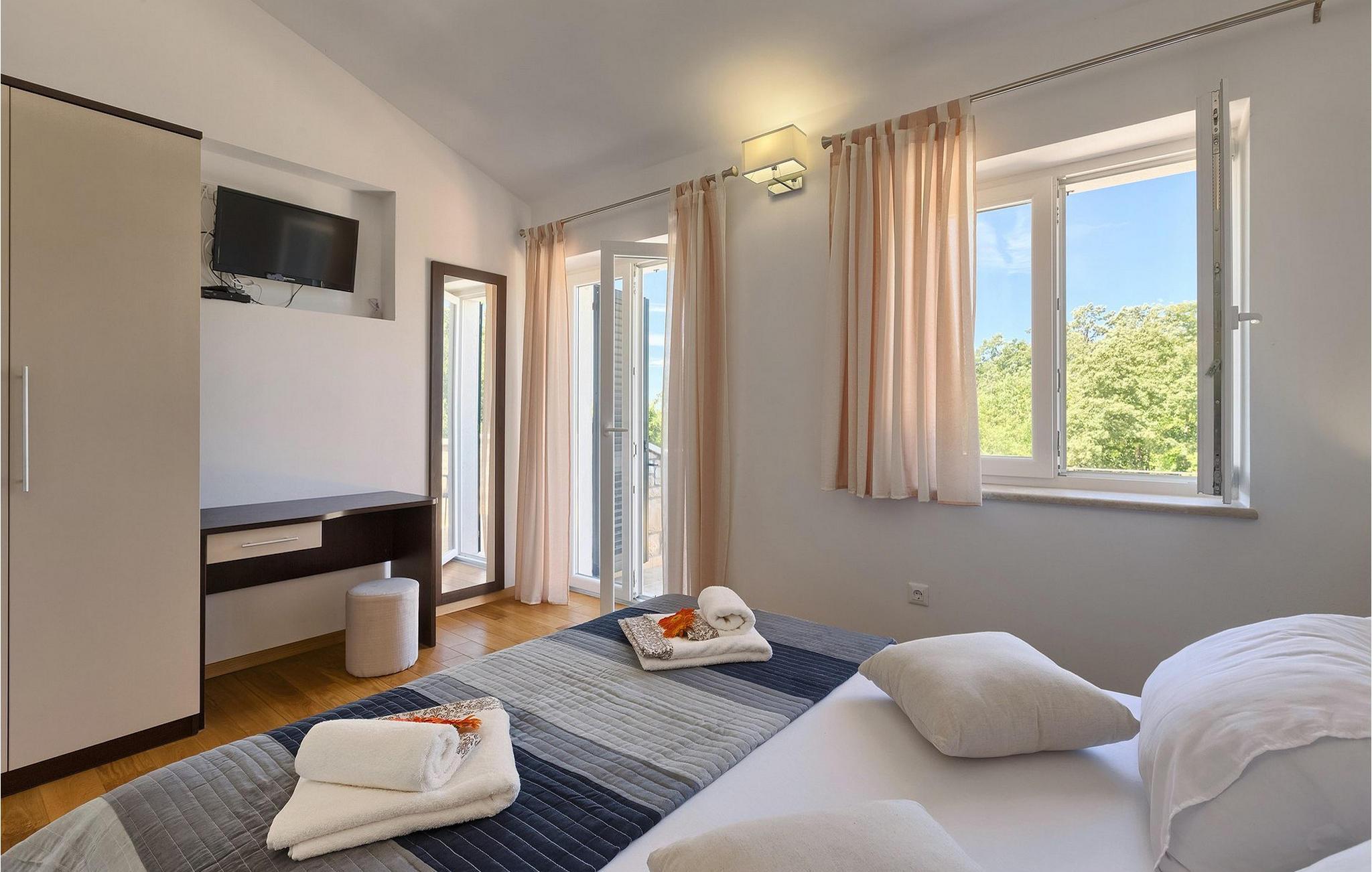 Den vakre familievillaen Funcici med privat basseng ligger midt i den idylliske naturen i det sentrale Istria. Det er et utmerket tilfluktssted for alle som ønsker å tilbringe en avslappende ferie, men som samtidig ikke vil være for langt unna større byer som Pazin. I den lyse og gjennomlyste første etasje finner du en åpen stue og et moderne, fullt utstyrt kjøkken med spiseplass. I villaens første etasje er det 2 soverom, 1 bad og et ekstra toalett. Ett av soverommene har direkte utgang til det vakre, private bassenget hvor du kan slappe av og nyte den varme istriske solen. I øverste etasje finner du enda et soverom med eget bad og en terrasse hvor du kan beundre den vakre naturen som omgir huset eller bare slappe av. I den velstelte hagen til Villa Funcici finner du også et utendørs sommerkjøkken med spiseplass, ideelt for å tilberede deilige måltider mens du puster inn den friske luften, samt det fjerde soverommet og et bad. For de som ønsker å prøve seg på en populær sport i Istria, er det en boulebane i nærheten av villaen. Den vakre familievillaen Funcici ligger midt i idyllisk natur i det sentrale Istria, ca. 7 km fra byen Pazin. Pazin, med sine lange tradisjoner og rike kultur, er det administrative senteret i Istrias fylke. På grunn av den utmerkede beliggenheten i hjertet av Istria har byen svært gode forbindelser til andre byer, og større turistsentre ligger bare ca. 30 km unna. Denne regionen har noe for enhver smak. Adrenalinelskere kan prøve zip-lining og tauhopping over det geografiske fenomenet Pazin Pit, friklatring, kajakkpadling eller speleologi. I Pazin ligger Istrias største og best bevarte middelalderslott (Kastel) over 130 meter høye klipper der elven Pazincica renner ut i Pazin-gropa. Den kjente franske forfatteren Jules Verne ble også inspirert av Pazin, og deler av romanen hans "Mathias Sandorf" utspiller seg i Pazin. I dag finnes det en Jules Verne-klubb i byen, og Jules Verne-dagene arrangeres hvert år i slutten av juni.