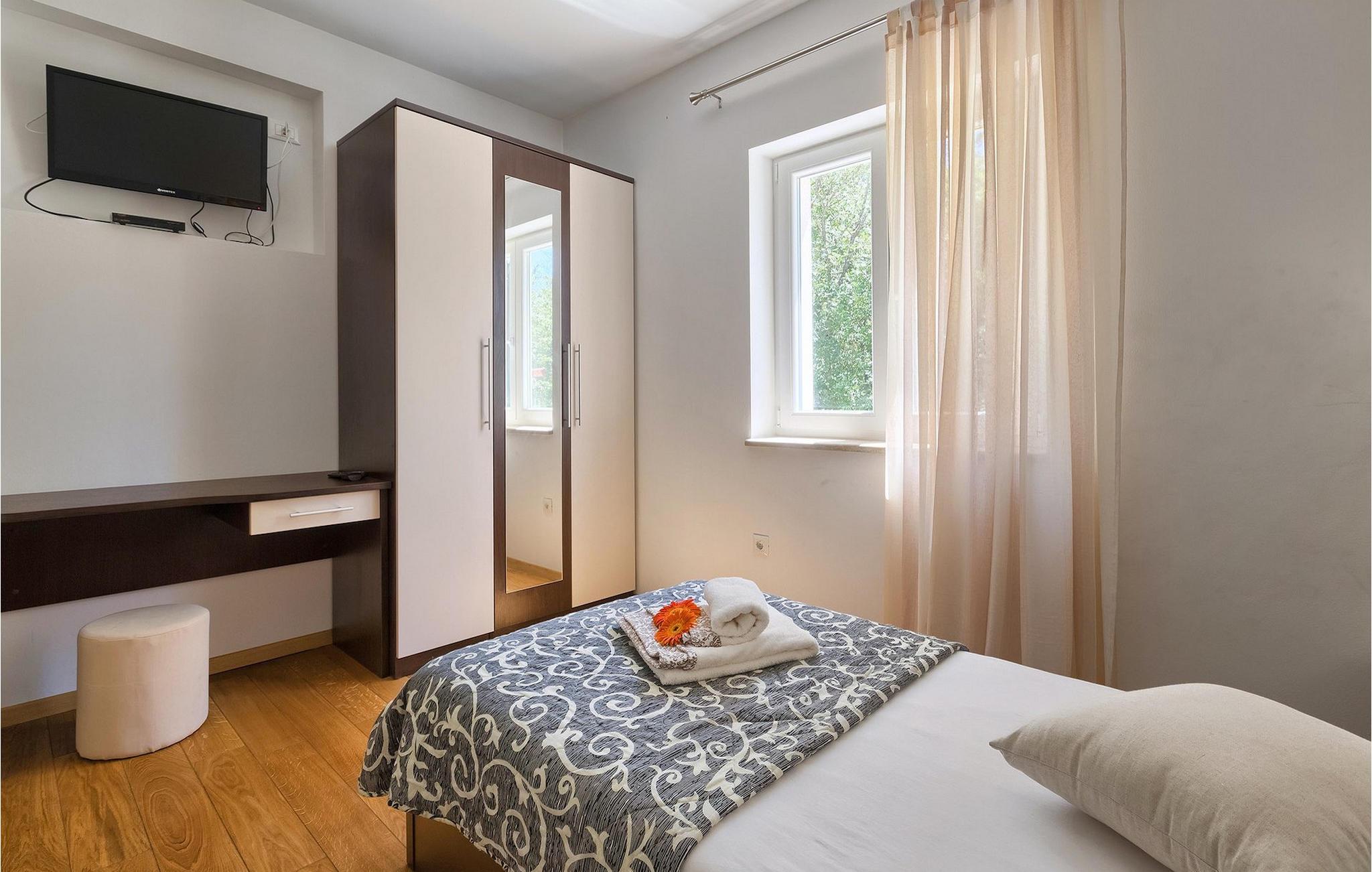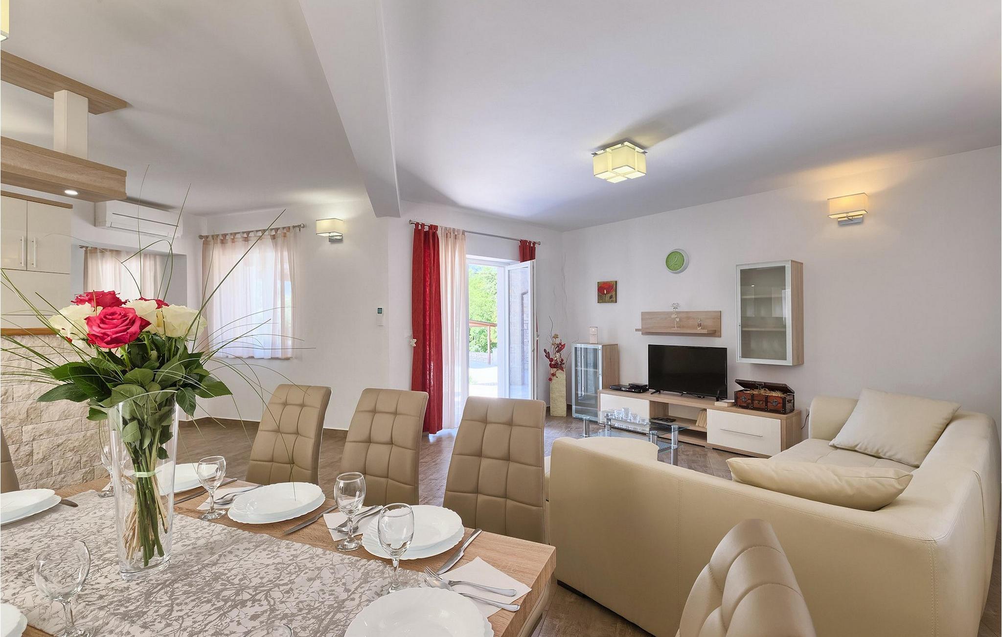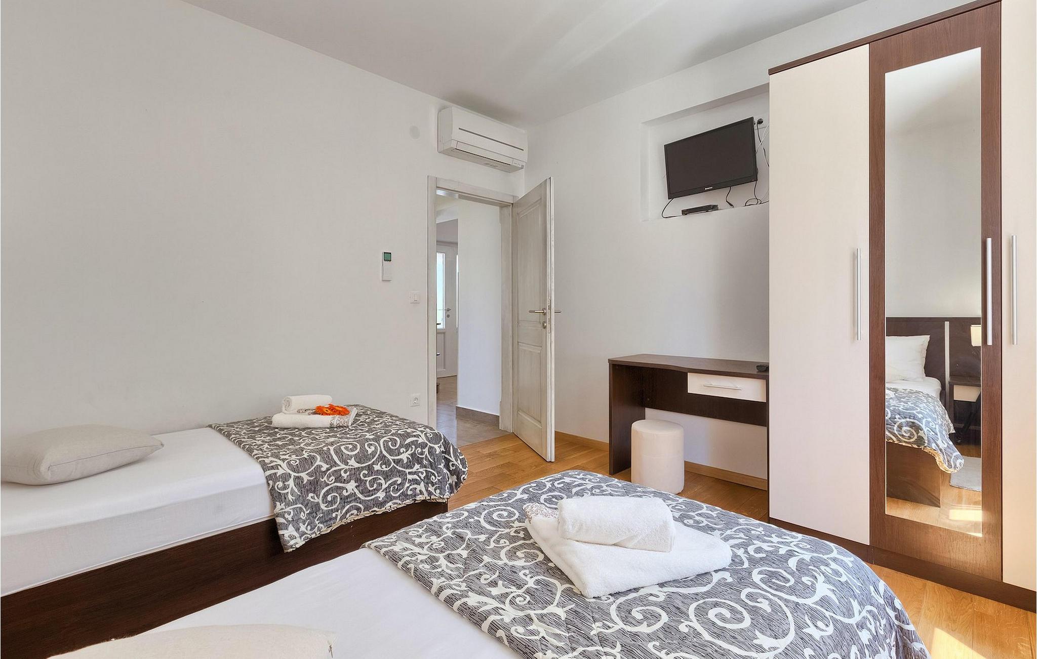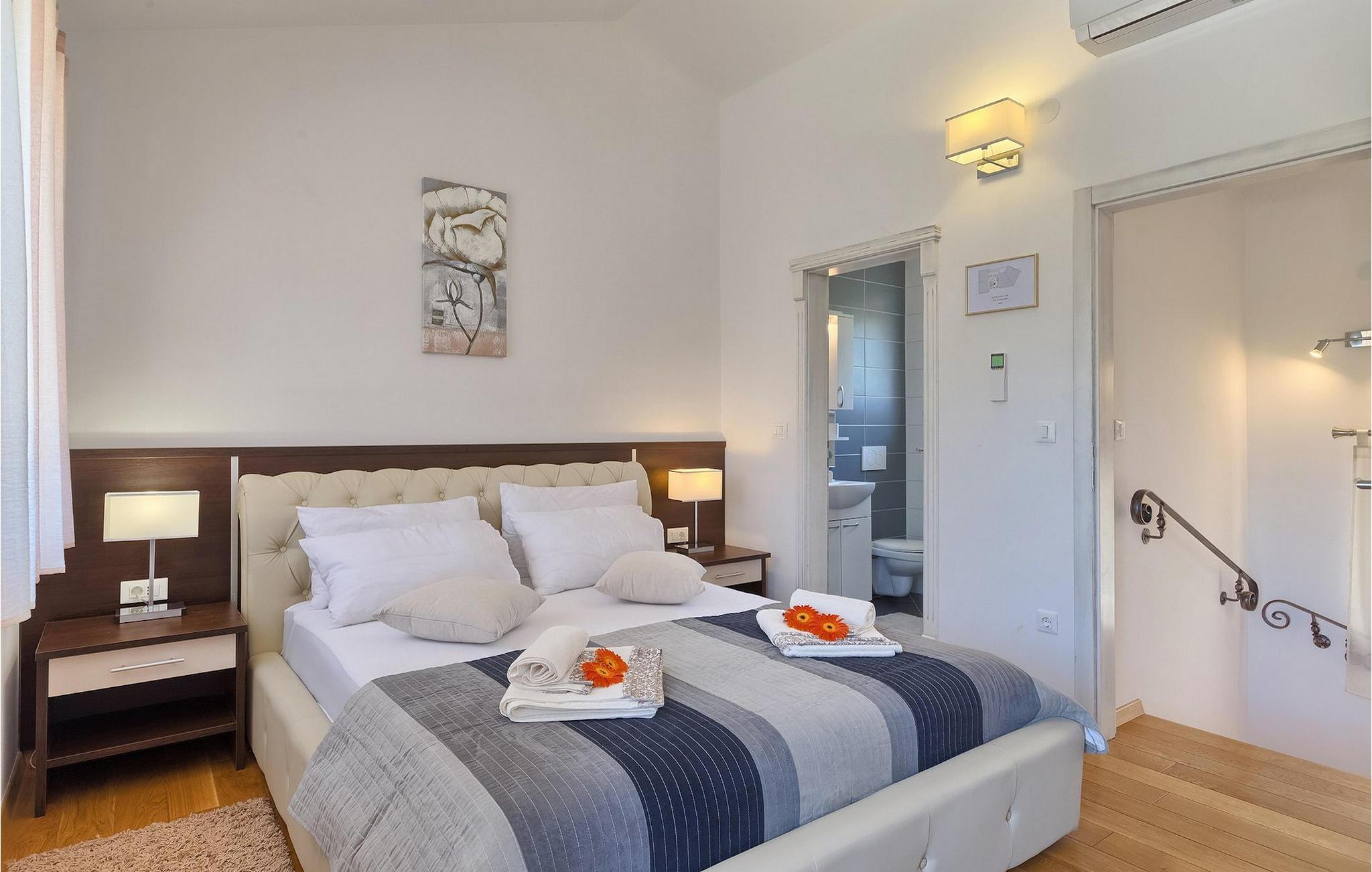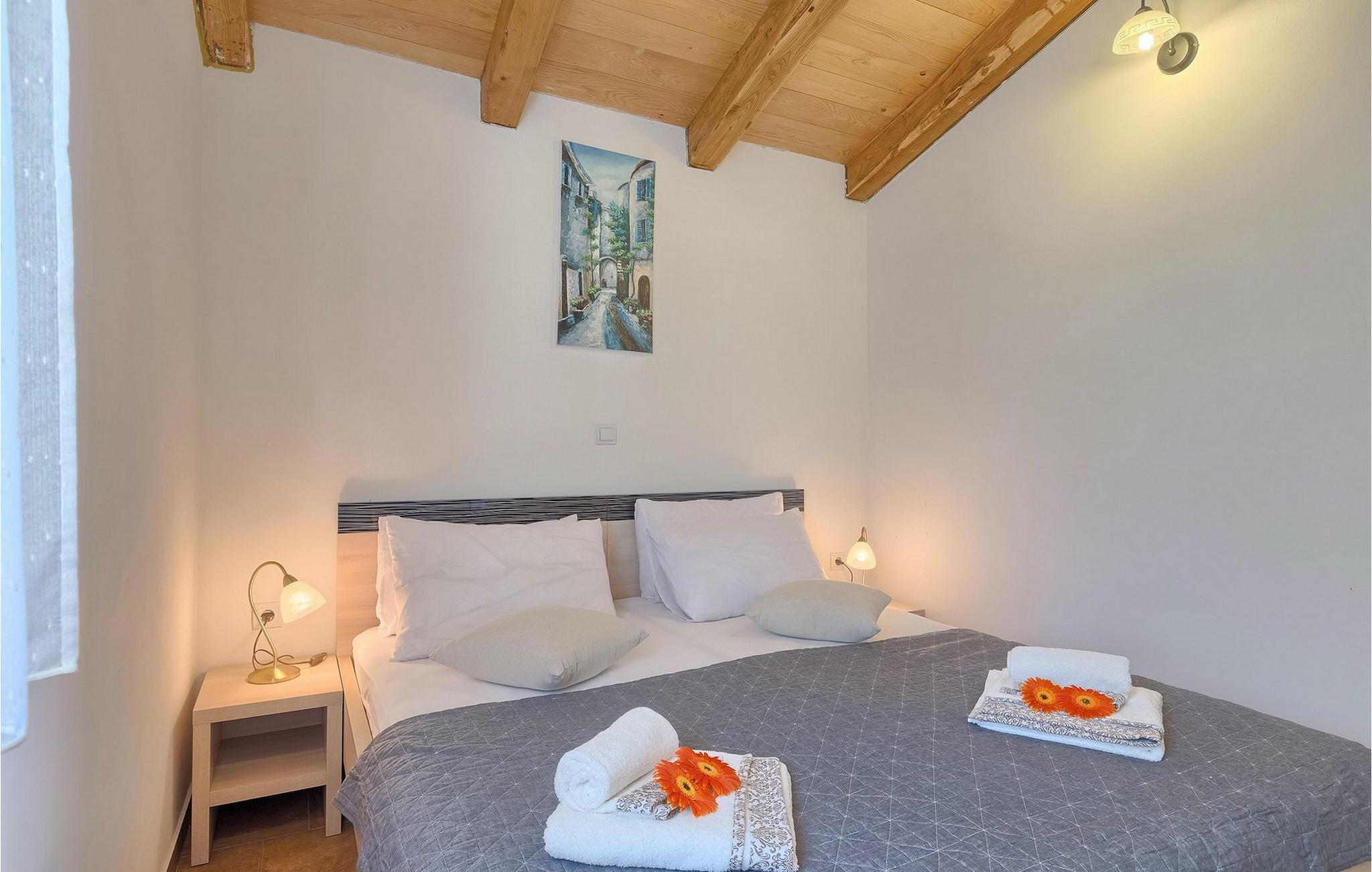 Den vakre familievillaen Funcici med privat basseng ligger midt i den idylliske naturen i det sentrale Istria. Det er et utmerket tilfluktssted for alle som ønsker å tilbringe en avslappende ferie, men som samtidig ikke vil være for langt unna større byer som Pazin. I den lyse og gjennomlyste første etasje finner du en åpen stue og et moderne, fullt utstyrt kjøkken med spiseplass. I villaens første etasje er det 2 soverom, 1 bad og et ekstra toalett. Ett av soverommene har direkte utgang til det vakre, private bassenget hvor du kan slappe av og nyte den varme istriske solen. I øverste etasje finner du enda et soverom med eget bad og en terrasse hvor du kan beundre den vakre naturen som omgir huset eller bare slappe av. I den velstelte hagen til Villa Funcici finner du også et utendørs sommerkjøkken med spiseplass, ideelt for å tilberede deilige måltider mens du puster inn den friske luften, samt det fjerde soverommet og et bad. For de som ønsker å prøve seg på en populær sport i Istria, er det en boulebane i nærheten av villaen. Den vakre familievillaen Funcici ligger midt i idyllisk natur i det sentrale Istria, ca. 7 km fra byen Pazin. Pazin, med sine lange tradisjoner og rike kultur, er det administrative senteret i Istrias fylke. På grunn av den utmerkede beliggenheten i hjertet av Istria har byen svært gode forbindelser til andre byer, og større turistsentre ligger bare ca. 30 km unna. Denne regionen har noe for enhver smak. Adrenalinelskere kan prøve zip-lining og tauhopping over det geografiske fenomenet Pazin Pit, friklatring, kajakkpadling eller speleologi. I Pazin ligger Istrias største og best bevarte middelalderslott (Kastel) over 130 meter høye klipper der elven Pazincica renner ut i Pazin-gropa. Den kjente franske forfatteren Jules Verne ble også inspirert av Pazin, og deler av romanen hans "Mathias Sandorf" utspiller seg i Pazin. I dag finnes det en Jules Verne-klubb i byen, og Jules Verne-dagene arrangeres hvert år i slutten av juni.
