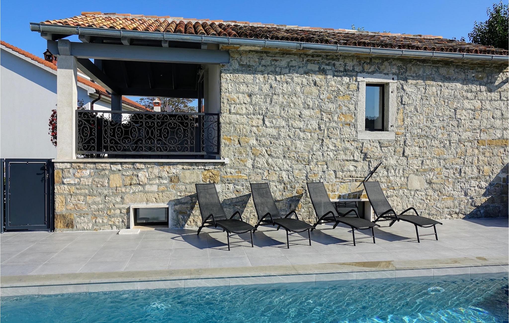 Hvis du er ute etter en avslappende ferie med familien, er Villa Pepa det rette valget for deg. Villaen ligger i byen Pazin, i hjertet av Istria. Den to-etasjes villaen ligger på en tomt på 500m2. Første etasje består av et velutstyrt kjøkken, en koselig spiseplass, en komfortabel stue med TV og et bad. I andre etasje er det to soverom, ett med dobbeltseng og det andre med to enkeltsenger. De to soverommene deler et bad med dusj. I første etasje er det også en terrasse hvor du kan nyte utsikten over området rundt. Foran villaen er det et 32 m2 stort privat basseng og en terrasse med solsenger hvor du kan slappe av. Bare noen få skritt unna ligger det overbygde sommerkjøkkenet, hvor du kan tilberede deilige måltider til familien på gassgrillen. Villaen ligger i et rolig nabolag, noe som gjør dette til det perfekte stedet for å koble av fra hverdagens stress. Ikke gå glipp av denne muligheten og bestill Villa Pepa med en gang.Den lille familievillaen Pepa ligger ikke langt fra byen Pazin i det sentrale Istria, og er et ideelt utgangspunkt for mange utflukter. Oppdag de mange middelalderbyene som Buzet, Gronjan og Motovun, og prøv de beste tradisjonelle rettene i de utmerkede lokale restaurantene og tavernaene. Sentrale Istria er også veldig populært blant syklister og turgåere. Oppdag den gamle Parenzana-sykkelstien eller turstien til de 7 fossefallene, som vil vise deg Istrias skjulte naturskjønnheter. For alle kulturelskere er Pula med amfiteateret, Pore med Eufrasius-basilikaen eller Rovinj med sine sjarmerende fargerike hus et must. Oppdag de mange skjulte strendene på øst- og vestkysten av Istria, og besøk Kapp Kamenjak i sør.