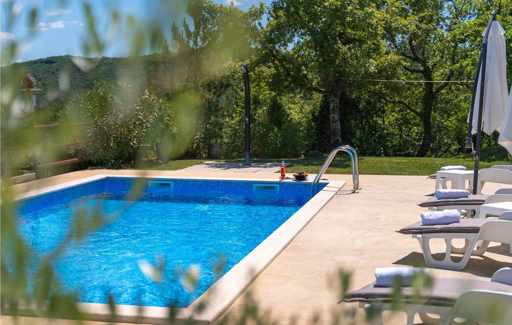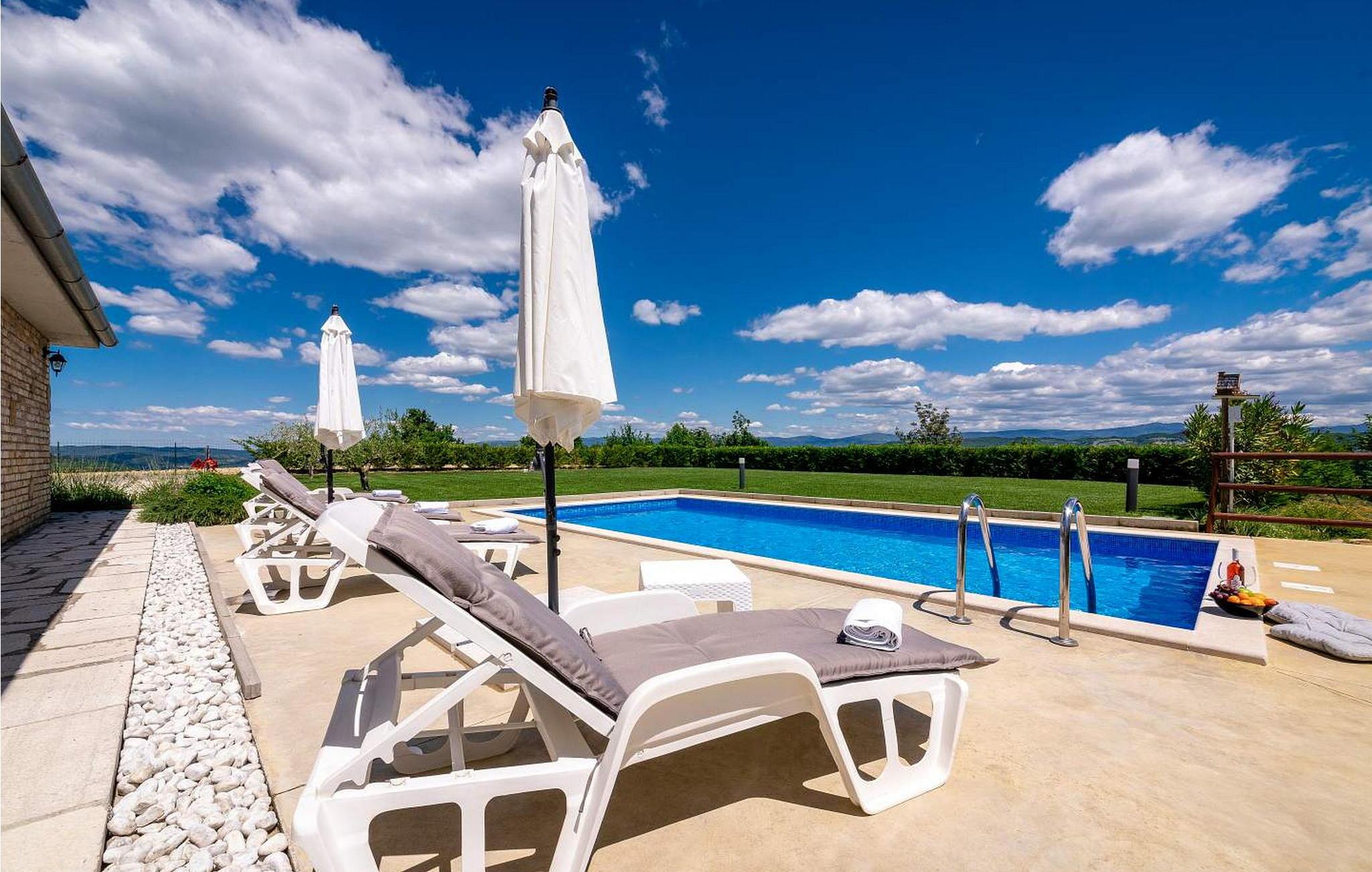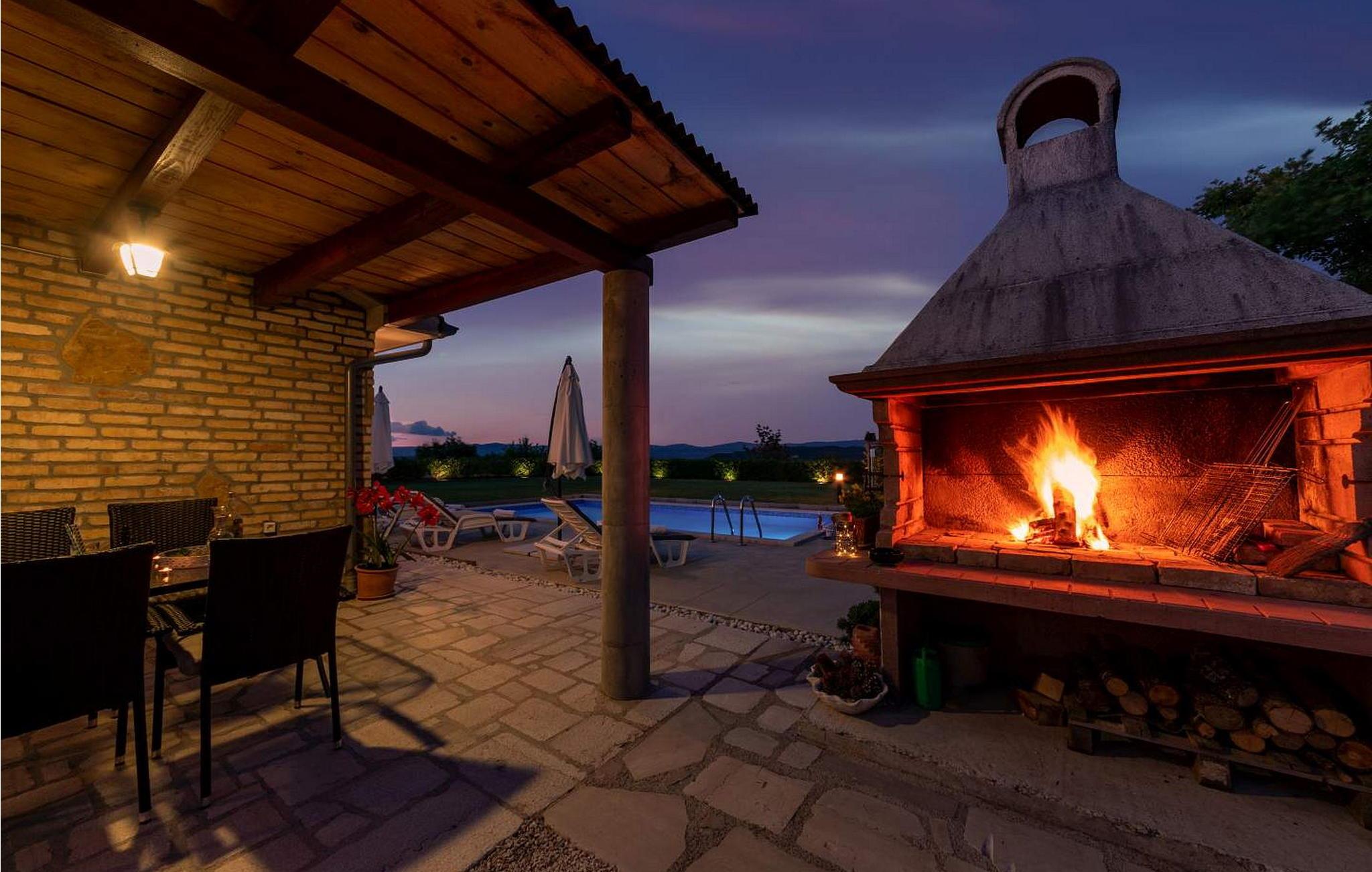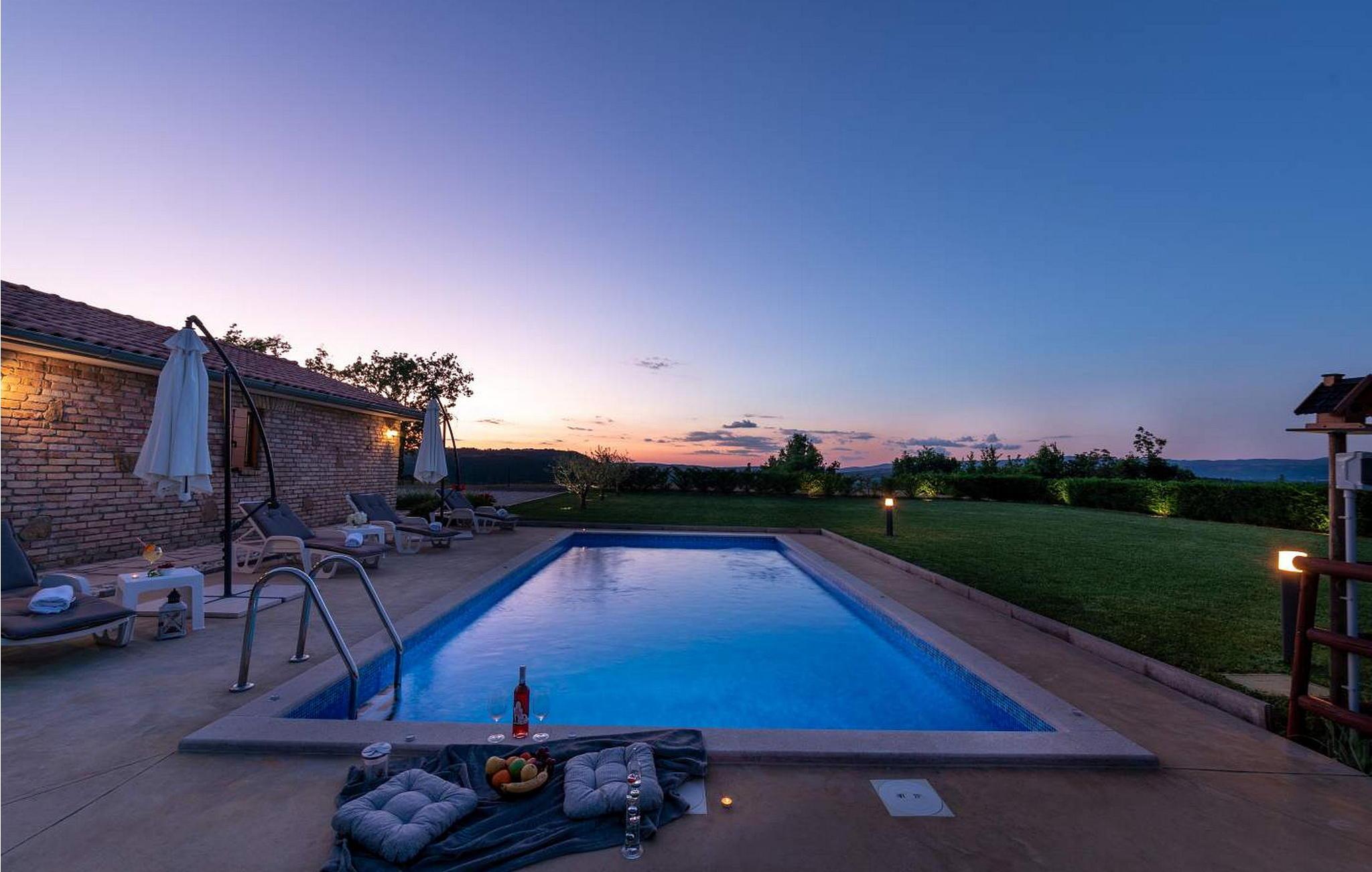Casa Ivan er et sjarmerende feriehus i én etasje på en høyde med fantastisk panoramautsikt over det frodige istriske landskapet og innsjøen Butoniga. Dette gjemmestedet ligger på en inngjerdet tomt, og er ideelt for deg som søker ro langt unna de travle turistmassene. Eiendommen har et herlig uteområde med svømmebasseng, en overbygd terrasse som er ideell for uteservering og en huske for barn. Inne i den klimatiserte stuen finner du et velutstyrt kjøkken, spiseplass og en komfortabel sovesofa. Nyt de rolige omgivelsene og et fredelig opphold her. Et besøk til den nærliggende byen Pazin er et must. Pazin er kjent for sin rike historie, og gir et innblikk i istrisk kultur gjennom sin bevarte middelalderarkitektur og det imponerende Pazin-slottet, som har utsikt over den dramatiske Pazin-hulen, et naturlig underverk dannet av elven som renner gjennom den. Merk at dette overnattingsstedet kan ta imot ungdomsgrupper på forespørsel. Ta kontakt med oss for å sjekke dette. En ungdomsgruppe på denne eiendommen består av personer som er 26 år eller yngre. Hvis du er en ungdomsgruppe [eller planlegger et utdrikningslag], kan du bli bedt om å betale et ekstra depositum ved ankomst. Eventuelle beløp som kreves for å reparere skader på overnattingsstedet, vil bli trukket fra depositumet.