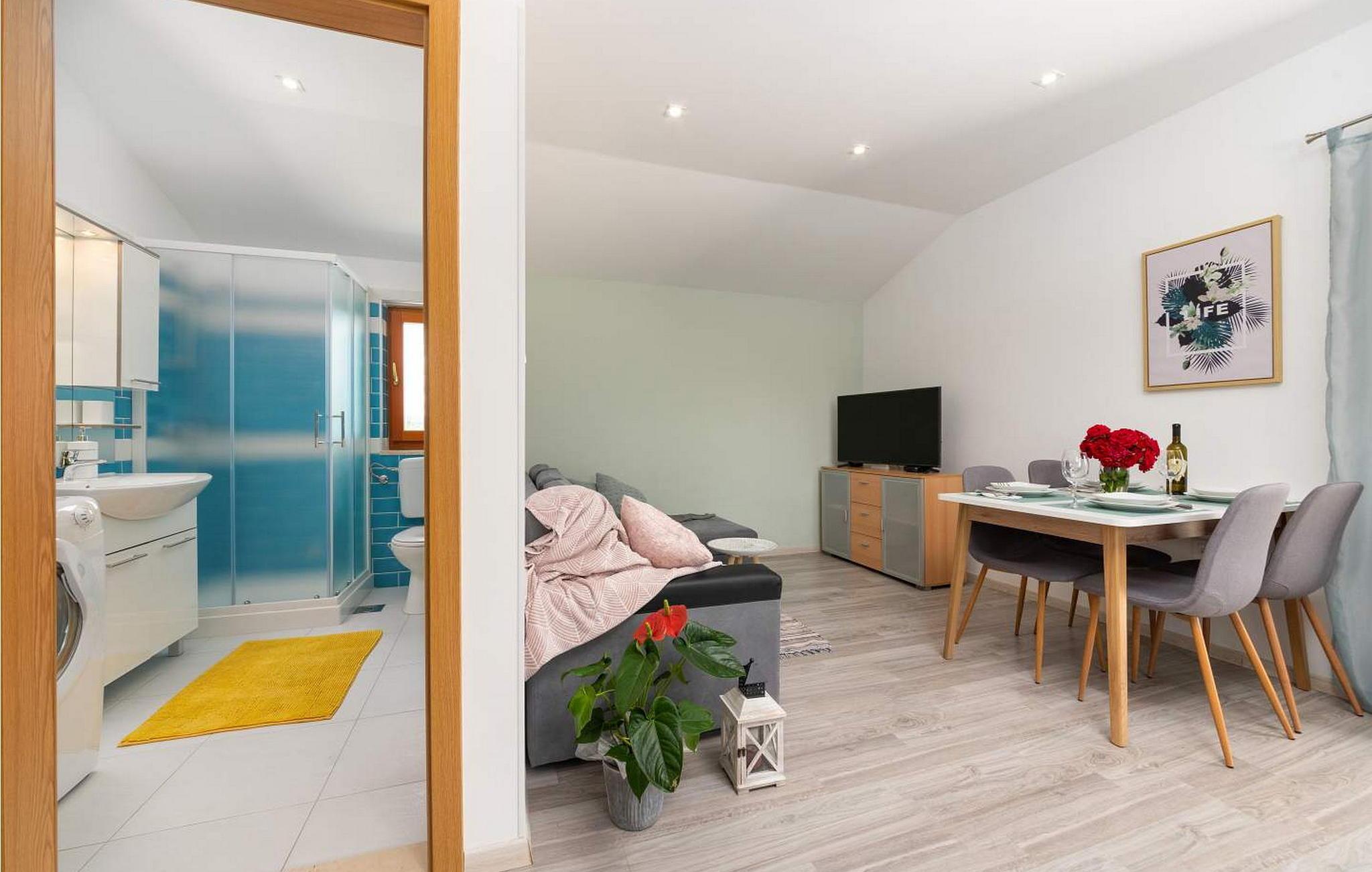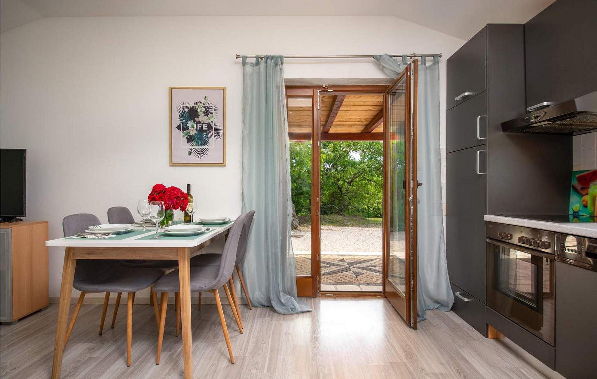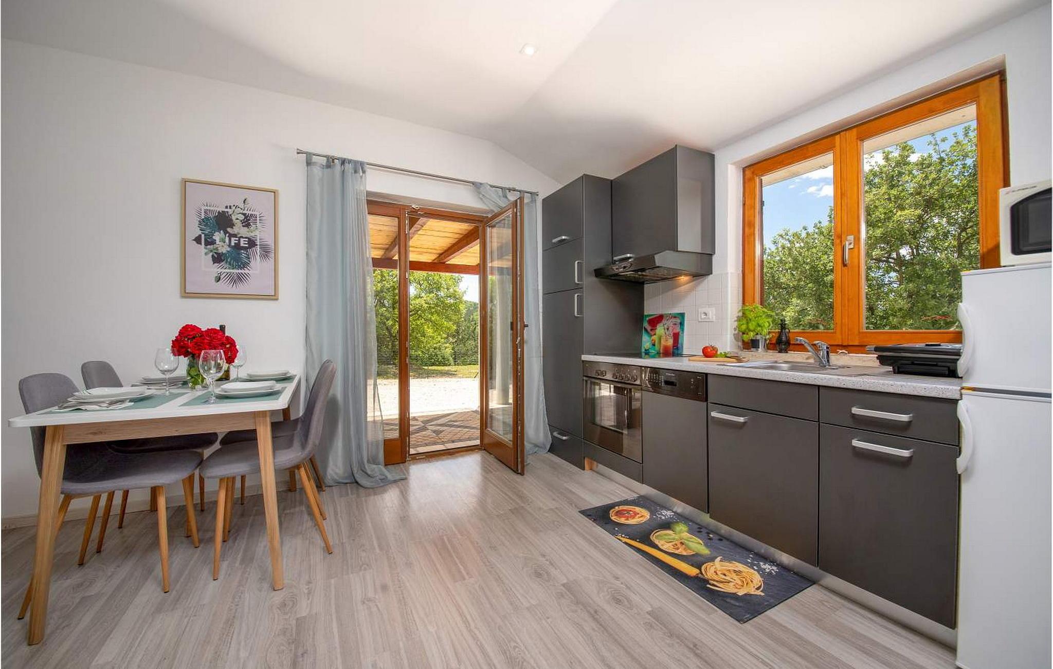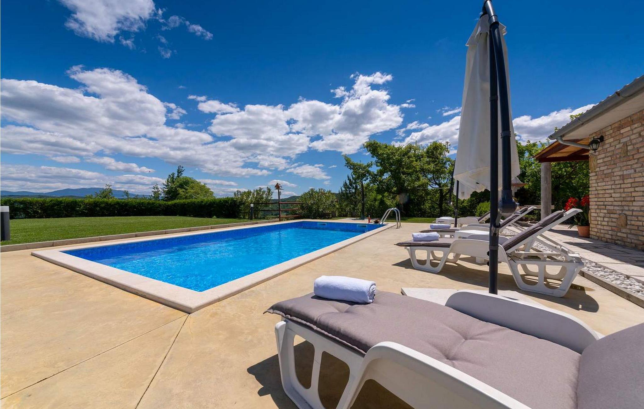 Casa Ivan er et sjarmerende feriehus i én etasje på en høyde med fantastisk panoramautsikt over det frodige istriske landskapet og innsjøen Butoniga. Dette gjemmestedet ligger på en inngjerdet tomt, og er ideelt for deg som søker ro langt unna de travle turistmassene. Eiendommen har et herlig uteområde med svømmebasseng, en overbygd terrasse som er ideell for uteservering og en huske for barn. Inne i den klimatiserte stuen finner du et velutstyrt kjøkken, spiseplass og en komfortabel sovesofa. Nyt de rolige omgivelsene og et fredelig opphold her. Et besøk til den nærliggende byen Pazin er et must. Pazin er kjent for sin rike historie, og gir et innblikk i istrisk kultur gjennom sin bevarte middelalderarkitektur og det imponerende Pazin-slottet, som har utsikt over den dramatiske Pazin-hulen, et naturlig underverk dannet av elven som renner gjennom den. Merk at dette overnattingsstedet kan ta imot ungdomsgrupper på forespørsel. Ta kontakt med oss for å sjekke dette. En ungdomsgruppe på denne eiendommen består av personer som er 26 år eller yngre. Hvis du er en ungdomsgruppe [eller planlegger et utdrikningslag], kan du bli bedt om å betale et ekstra depositum ved ankomst. Eventuelle beløp som kreves for å reparere skader på overnattingsstedet, vil bli trukket fra depositumet.