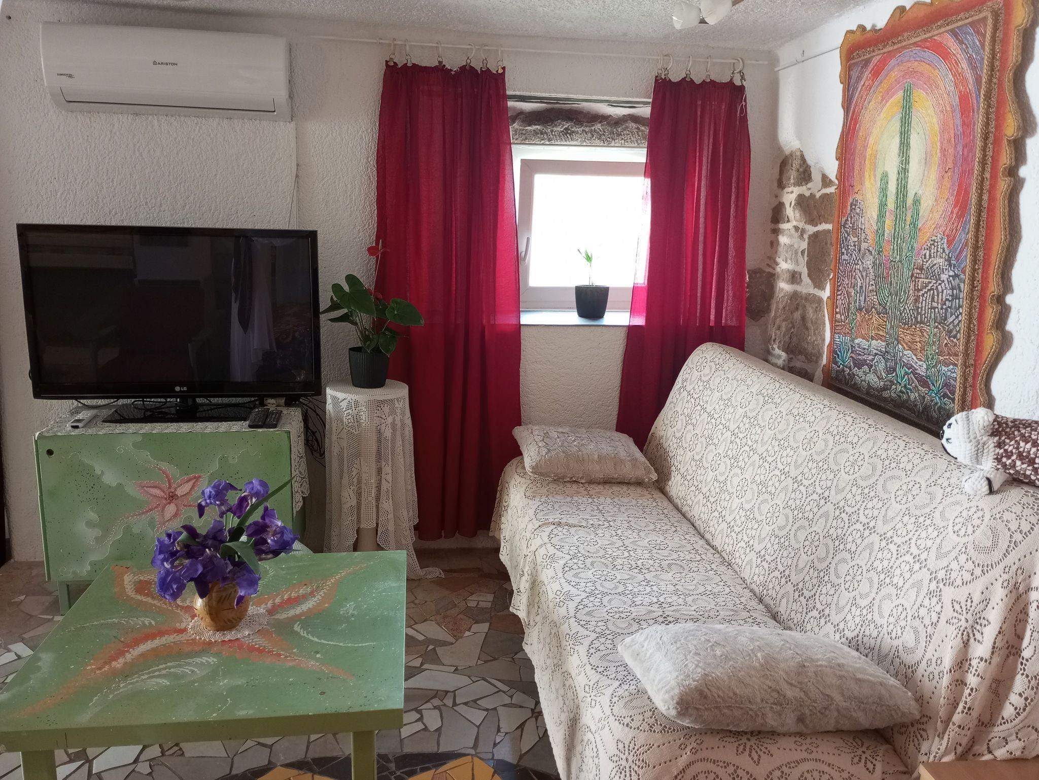 Studio bietet Platz für 4 Gäste. Die Betten sind in Wohnzimmer, innerhalb einer Gesamtfläche von 58m2, angeordnet. Die Gäste haben eine eigene Terrasse zur Verfügung, auf der sie in warmen Sommernächten genießen können. Es ist erlaubt, Speisen auf dem Gemeinschafts-Grill vorzubereiten. IM PREIS INBEGRIFFEN: Kurtaxe, Endreinigung, Klimatisierung, Parkplatz, Internet, Bügeleisen, Bügelbrett, Föhn. VERBINDLICHE ZUSÄTZLICHE KOSTEN: Aufzahlung für Kurzaufenthalte (prozentualer Zuschlag pro Nächtigungsanzahl: 30% - 1, 20% - 2, 10% - 3). Die Verfügbarkeit zusätzlicher Dienstleistungen in Ihrem reservierten Termin und die Preise derselben (falls nicht aufgeführt) müssen im Voraus überprüft werden. Zusätzliche Dienstleistungen die in der Zahlungsaufforderung nicht aufgeführt sind werden direkt beim Vermieter bezahlt, angenommen der Gast nutzt auch diese. Ermäßigung auf den Grundpreis: Gratistag 14=13 (bei einem Aufenthalt von 14 Tagen oder mehr erhalten Sie einen Gratistag für den Aufenthalt bis 31.12.26).