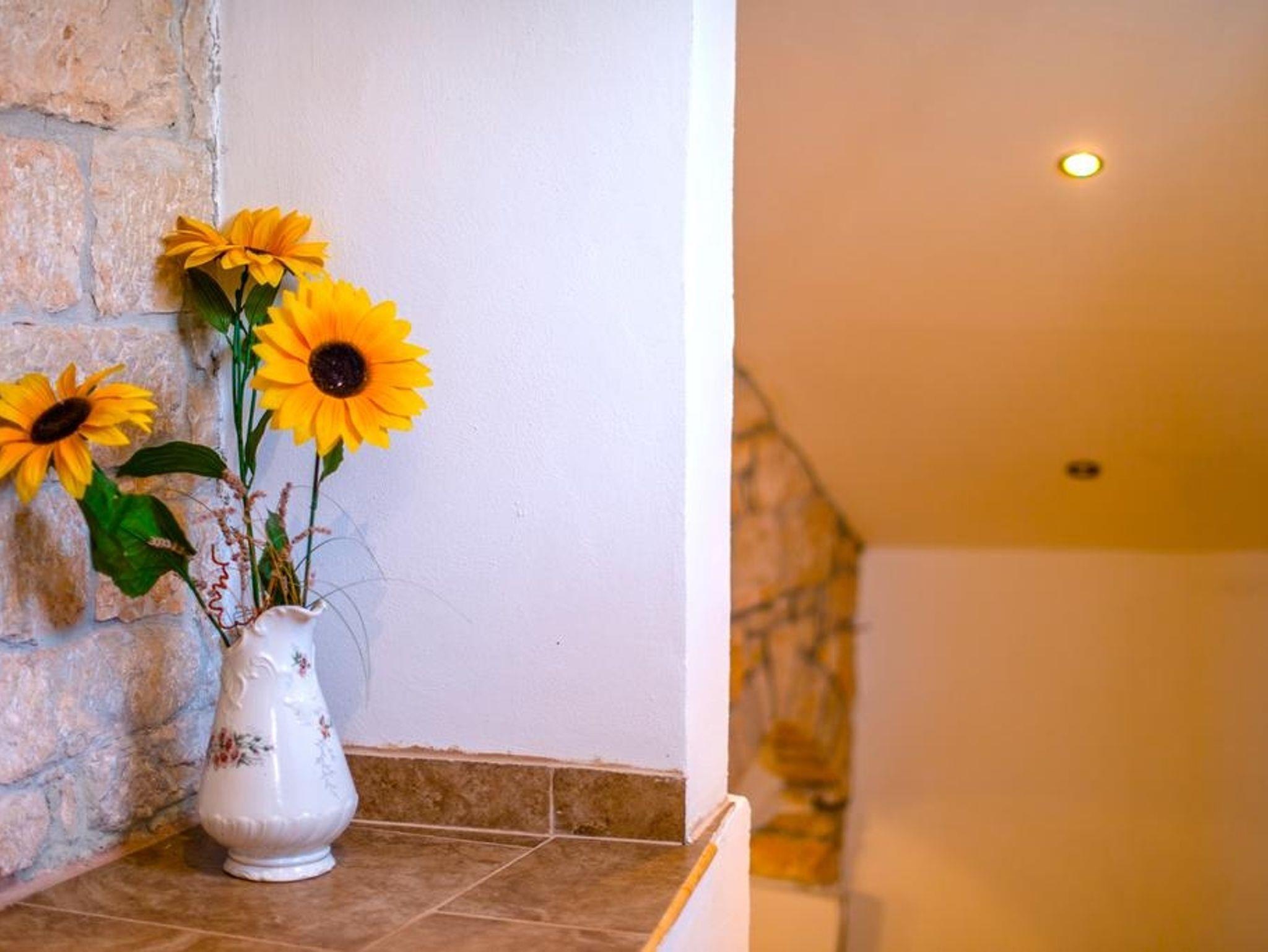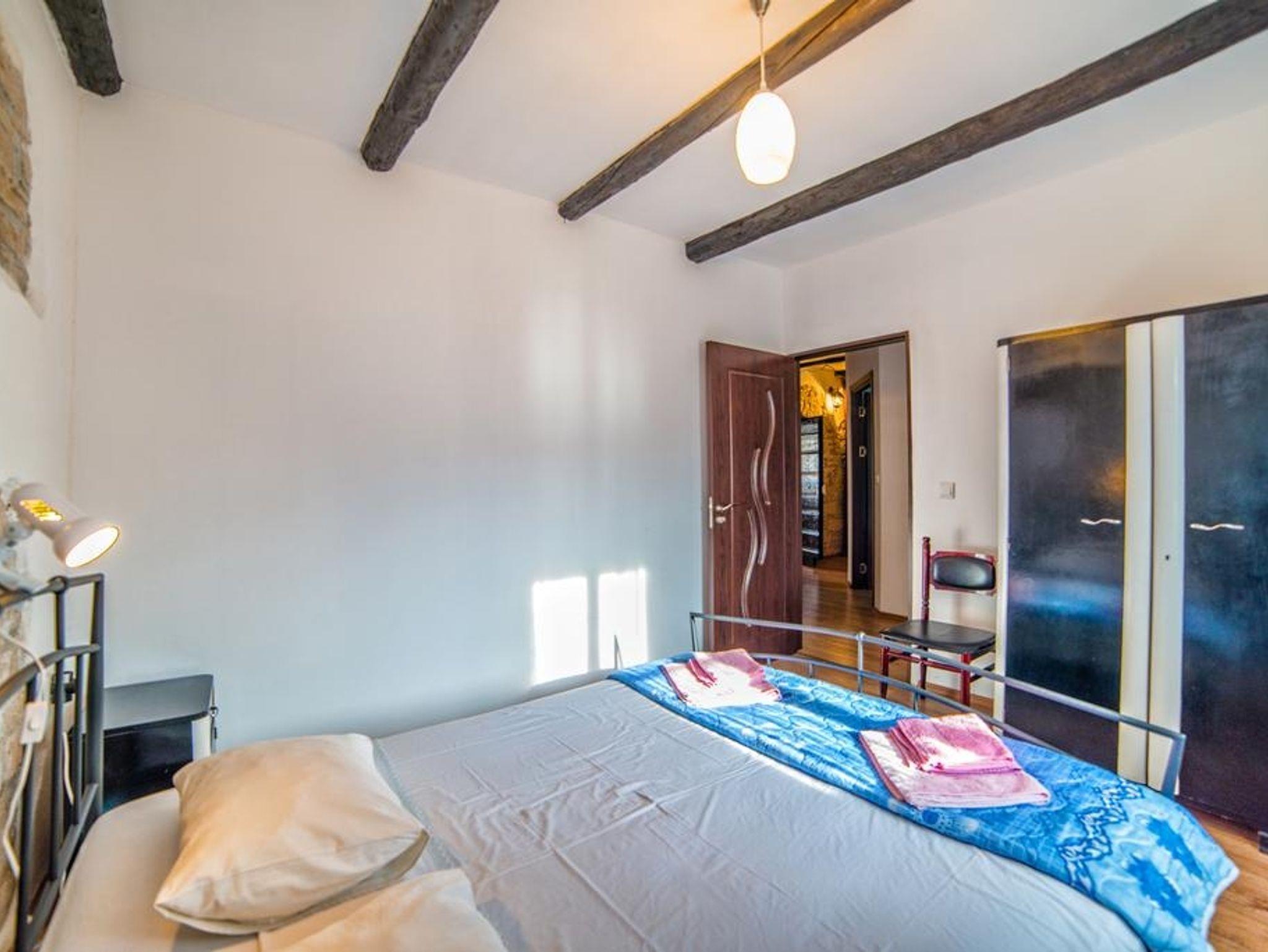 Haus bietet Platz für 5 Gäste. Die Betten sind in Schlafzimmern, die es 3 gibt, innerhalb einer Gesamtfläche von 77m2, angeordnet. Die Gäste haben eine eigene Terrasse zur Verfügung, auf der sie in warmen Sommernächten genießen können. Für vollen Genuss und Entspannung gibt es einen privaten Grill für Gäste dieser Unterkunft. Während ihres Aufenthalts können sich Gäste im privaten Schwimmbad entspannen. In der Unterkunftseinheit besteht die Möglichkeit des Mitbringens von Haustieren gegen Aufpreis. Unterkunftseinheit hat Räume, die von dem Rest der Einheit abgetrennt werden. IM PREIS INBEGRIFFEN: Kurtaxe, Endreinigung, Klimatisierung, Pool, Parkplatz, Internet, Kinderbett, Föhn. VERBINDLICHE ZUSÄTZLICHE KOSTEN: Aufzahlung für Kurzaufenthalte (prozentualer Zuschlag pro Nächtigungsanzahl: 30% - 1, 20% - 2, 10% - 3). UNVERBINDLICHE ZUSÄTZLICHE KOSTEN: Haustiere (7,00 € pro Nacht). Die Verfügbarkeit zusätzlicher Dienstleistungen in Ihrem reservierten Termin und die Preise derselben (falls nicht aufgeführt) müssen im Voraus überprüft werden. Zusätzliche Dienstleistungen die in der Zahlungsaufforderung nicht aufgeführt sind werden direkt beim Vermieter bezahlt, angenommen der Gast nutzt auch diese. Ermäßigung auf den Grundpreis: Gratistag 14=13 (bei einem Aufenthalt von 14 Tagen oder mehr erhalten Sie einen Gratistag für den Aufenthalt bis 31.12.26).