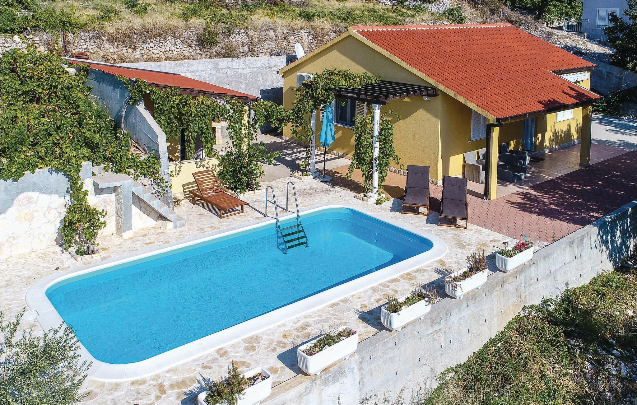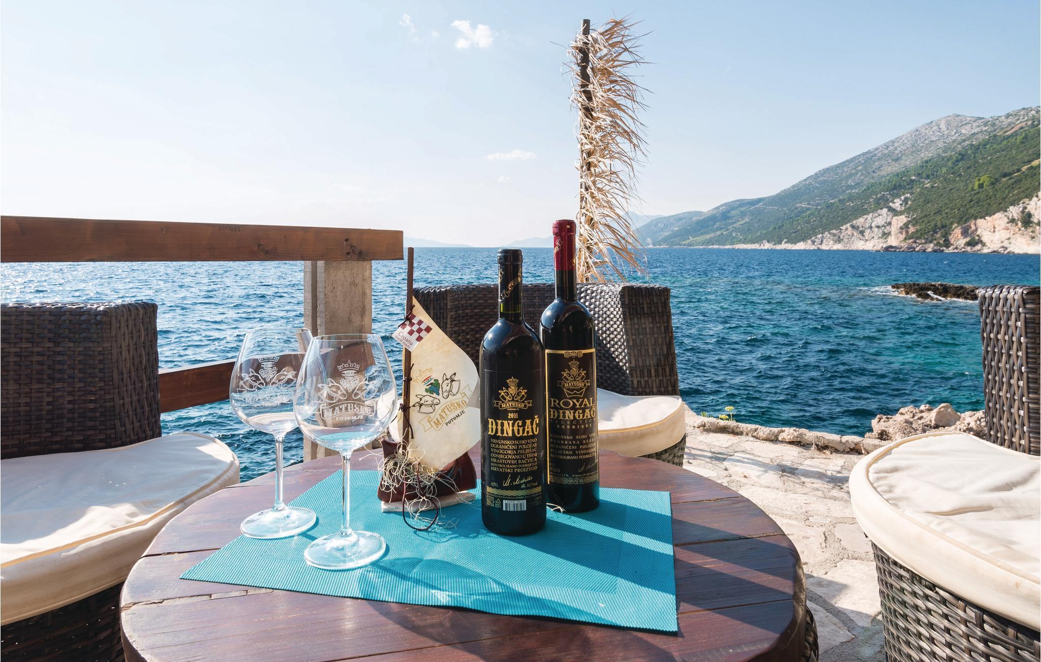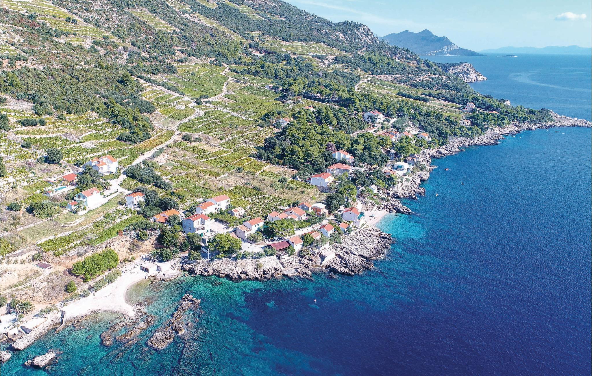 Denne fantastiske ferieboligen med basseng, som består av to soverom, et bad og en romslig stue med kjøkken, ligger i et mildt kupert landskap der vinmarkene strekker seg ut i det uendelige. Opplev middelhavsstilen på den vakre terrassen med basseng og grillplass, hvor du kan nyte den fantastiske utsikten over havet og de skiftende fargene i horisonten når som helst på dagen. Den vakre naturen, de gode vinene, fisken og skalldyrene er hovedattraksjonene på halvøya, som du også kan nyte i eierens nærliggende restaurant. Hvis du bestemmer deg for å ta en dagstur fra de fredelige omgivelsene, anbefaler vi et besøk til de velkjente byene Korula og Dubrovnik.