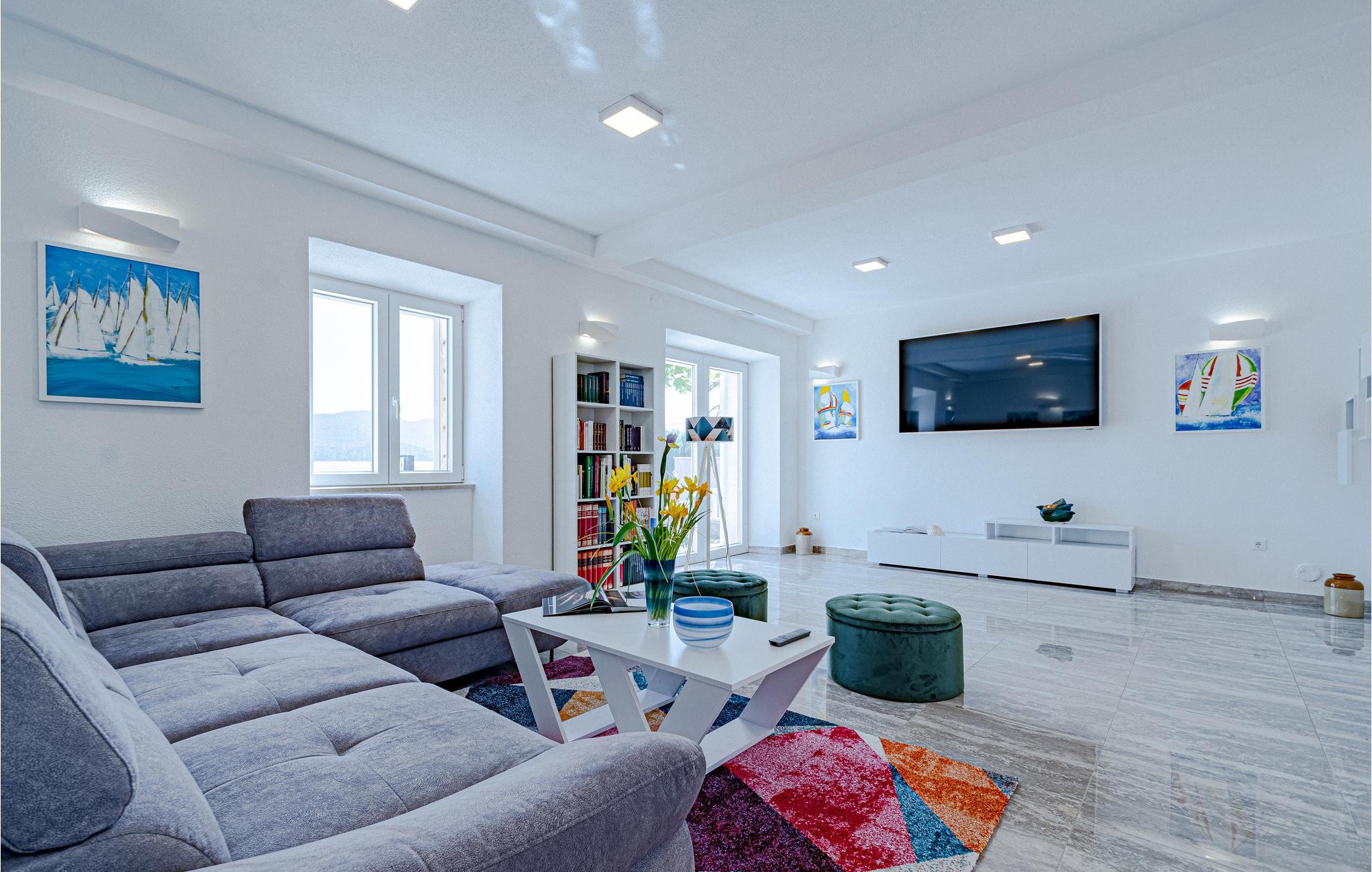 Velkommen til dette moderne feriehuset, som venter på sine gjester i første rekke til sjøen. Hvis du setter pris på en komfortabel atmosfære, havutsikt og stilig innredning, er dette stedet for deg. 4 soverom og 3 bad gir god plass til å nyte ferien.