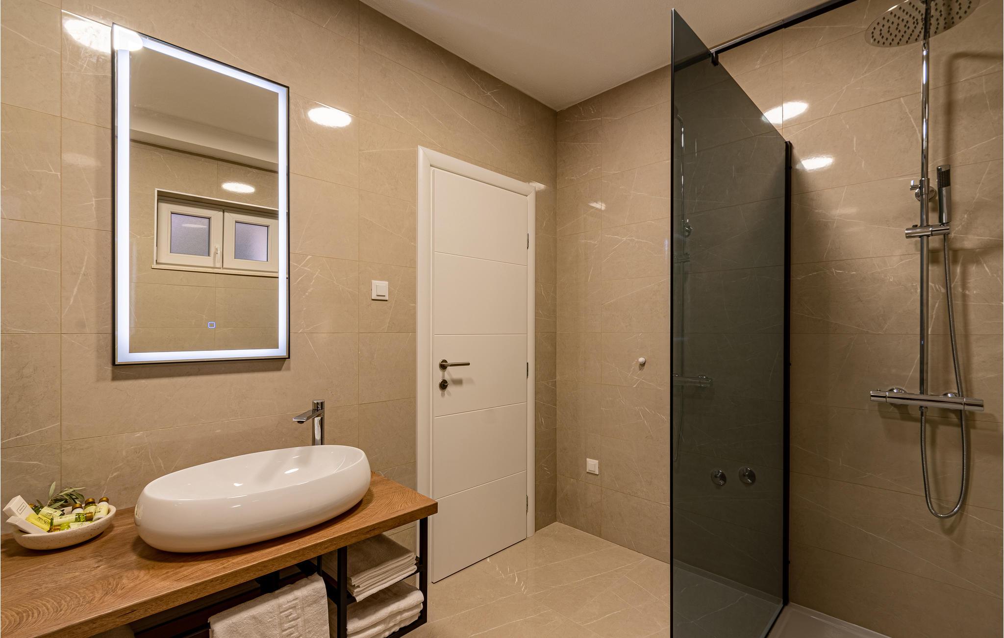 - WC med varmt og kaldt vann, Dusj