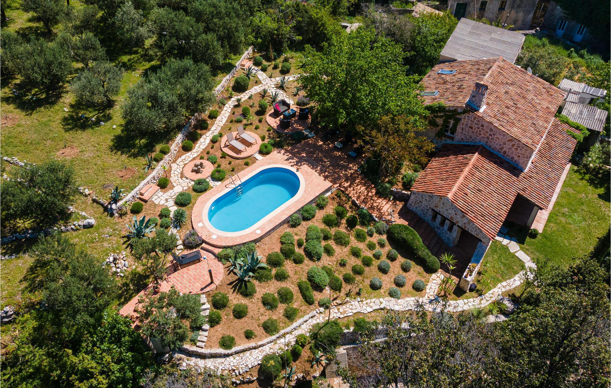 Idyllisk beliggende i landsbyen Trstenik, venter denne villaen med svømmebasseng på deg på en høyde, og tilbyr sine besøkende den nødvendige komforten og roen. På grunn av den tradisjonelle konstruksjonsmetoden sørger de tykke veggene for behagelig friskhet selv om sommeren. Rommene er utsøkt innredet, fulle av vakre detaljer. Første etasje har en romslig stue, et kjøkken og et bad. I 1. etasje har du to soverom og et annet bad. Stuen er koblet til de overbygde terrassene. Oliventrær og andre busker vokser i hagen. I den vakre middelalderbyen Korcula, som ligger 30 km fra huset, vil du kunne beundre ridderdansene Moreska og Kumpanija. Fra parkeringsplassen kan du nå huset via trapper og en liten bro.
