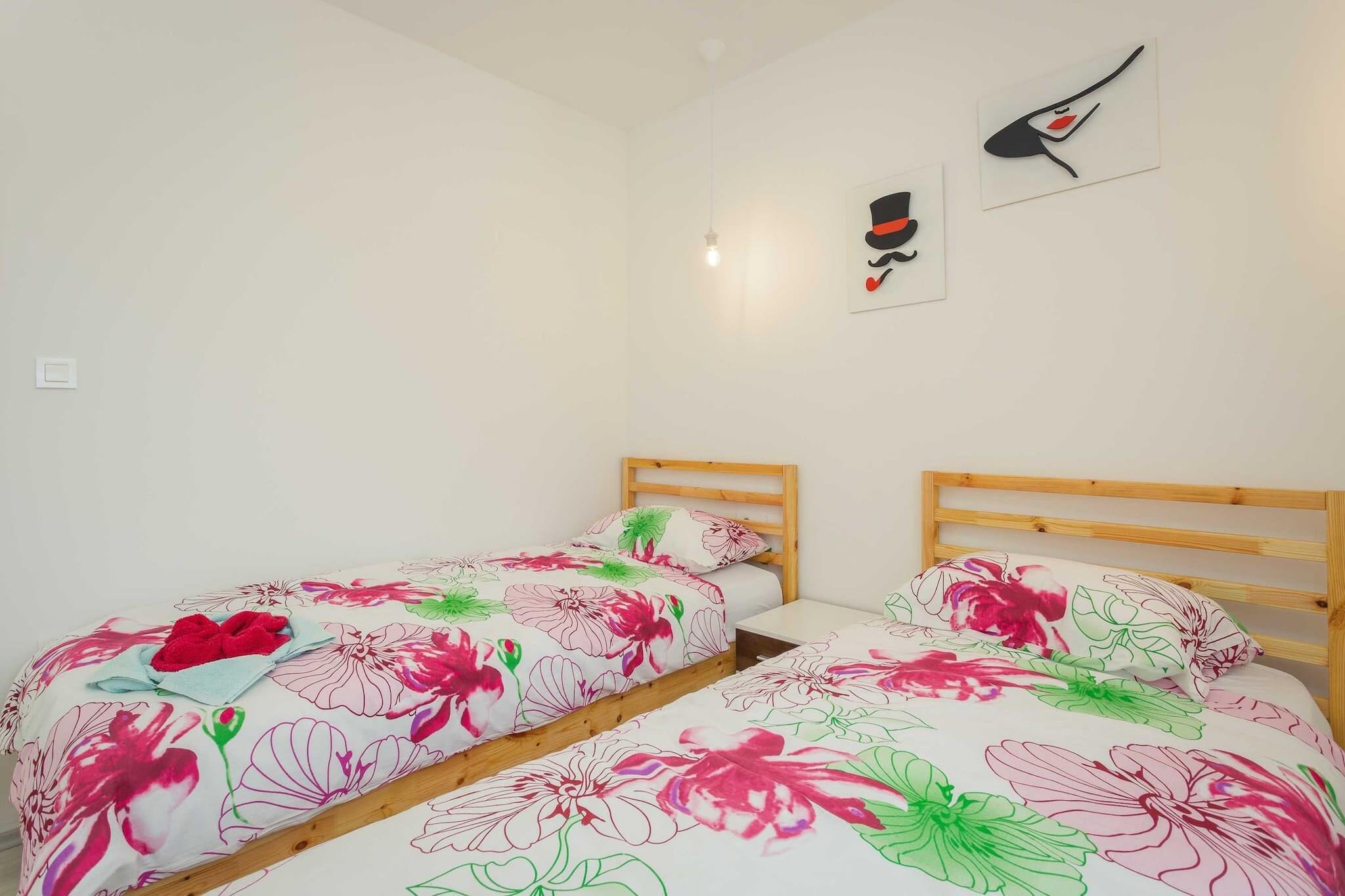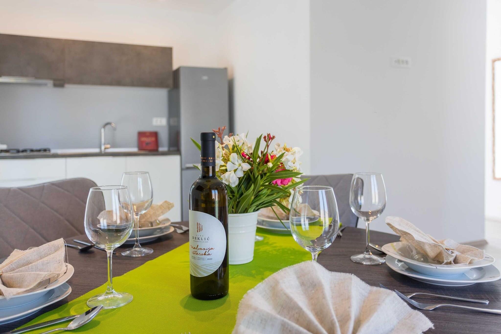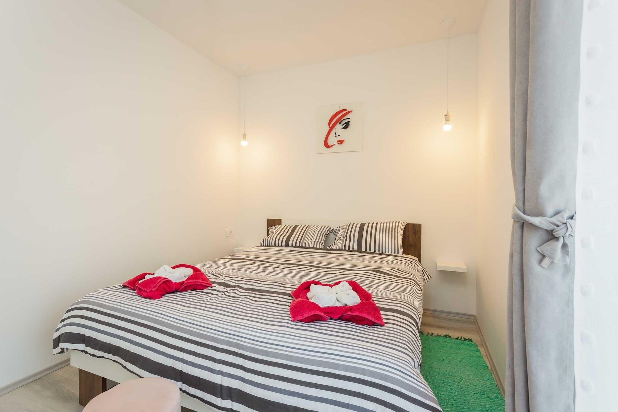 Dette sjarmerende huset i Peroj tilbyr en komfortabel og lys innkvartering for opptil 5 gjester, med maksimalt 4 voksne. Huset har 2 koselige soverom og en romslig stue, noe som gjør det perfekt for familier eller små grupper. Gjestene kan nyte den vakre hagen og utendørsterrassen, ideell for avslapning og utendørs servering. Eiendommen er utstyrt med essensielle fasiliteter som klimaanlegg, Wi-Fi, satellitt-TV og en grill som gjestene kan nyte. Huset tilbyr også utendørs parkering på stedet for ekstra bekvemmelighet. Huset ligger i et fredelig og familievennlig landlig område, kun 100 meter fra en klippestrand, perfekt for de som liker utendørs og kystutsikt. Eiendommen ligger i kort avstand fra viktige fasiliteter, med et supermarked og en restaurant kun 2 km unna. Det pulserende sentrum ligger 6 km unna, og tilbyr en rekke butikker, restauranter og kulturelle attraksjoner. Flyplassen ligger 15 km unna, noe som sikrer enkel tilgang for reisende. Huset har et fullt utstyrt åpent kjøkken med både gass- og elektriske apparater, inkludert kjøleskap, fryser, komfyr, kaffetrakter og vannkoker, noe som gjør det enkelt for gjestene å tilberede sine egne måltider. Kjøkkenet inkluderer også alt nødvendig kjøkkenutstyr, servise og bestikk. Med alle disse fasilitetene er huset et perfekt tilfluktssted for de som søker en blanding av komfort og bekvemmelighet i rolige landlige omgivelser.
