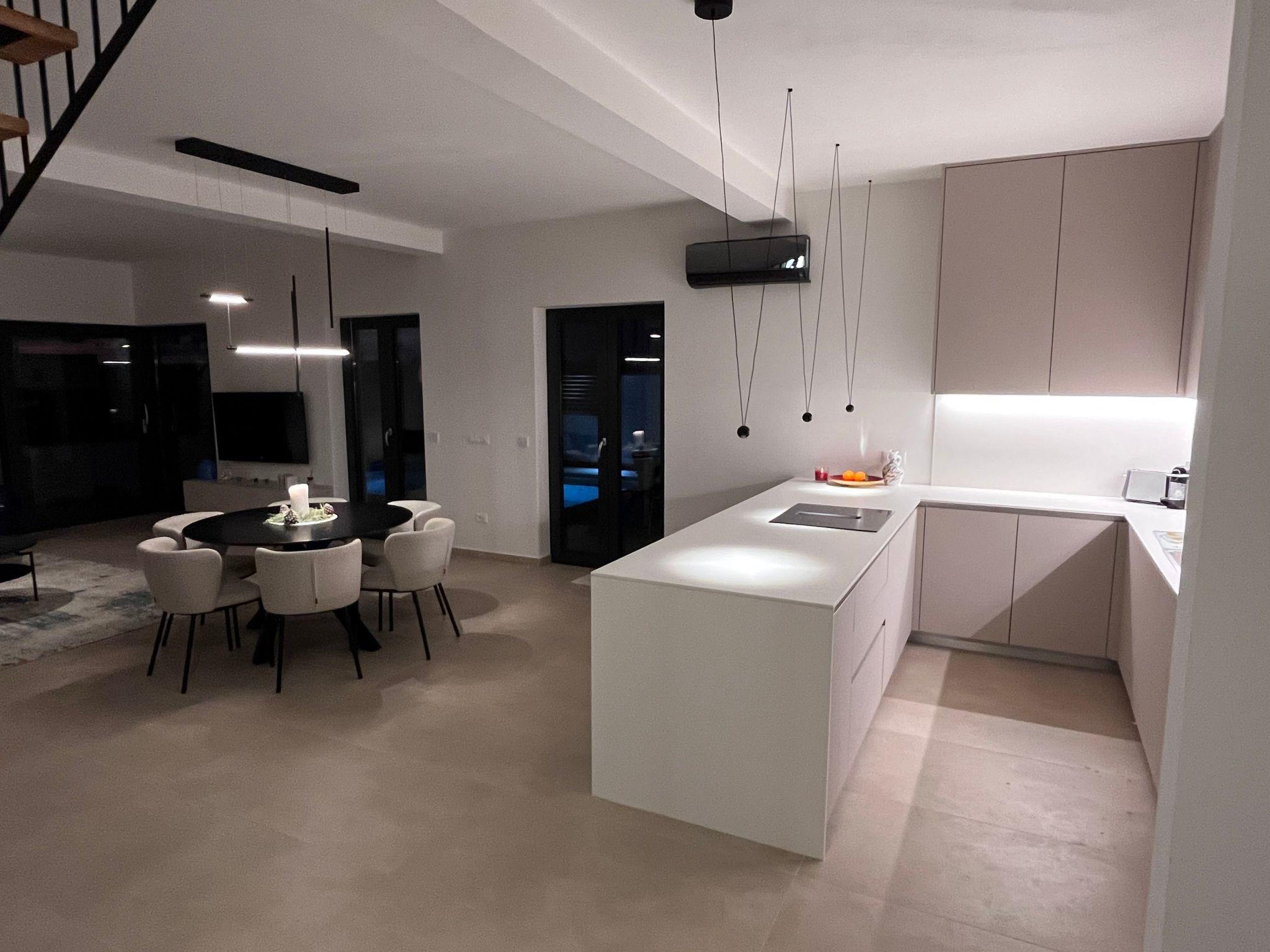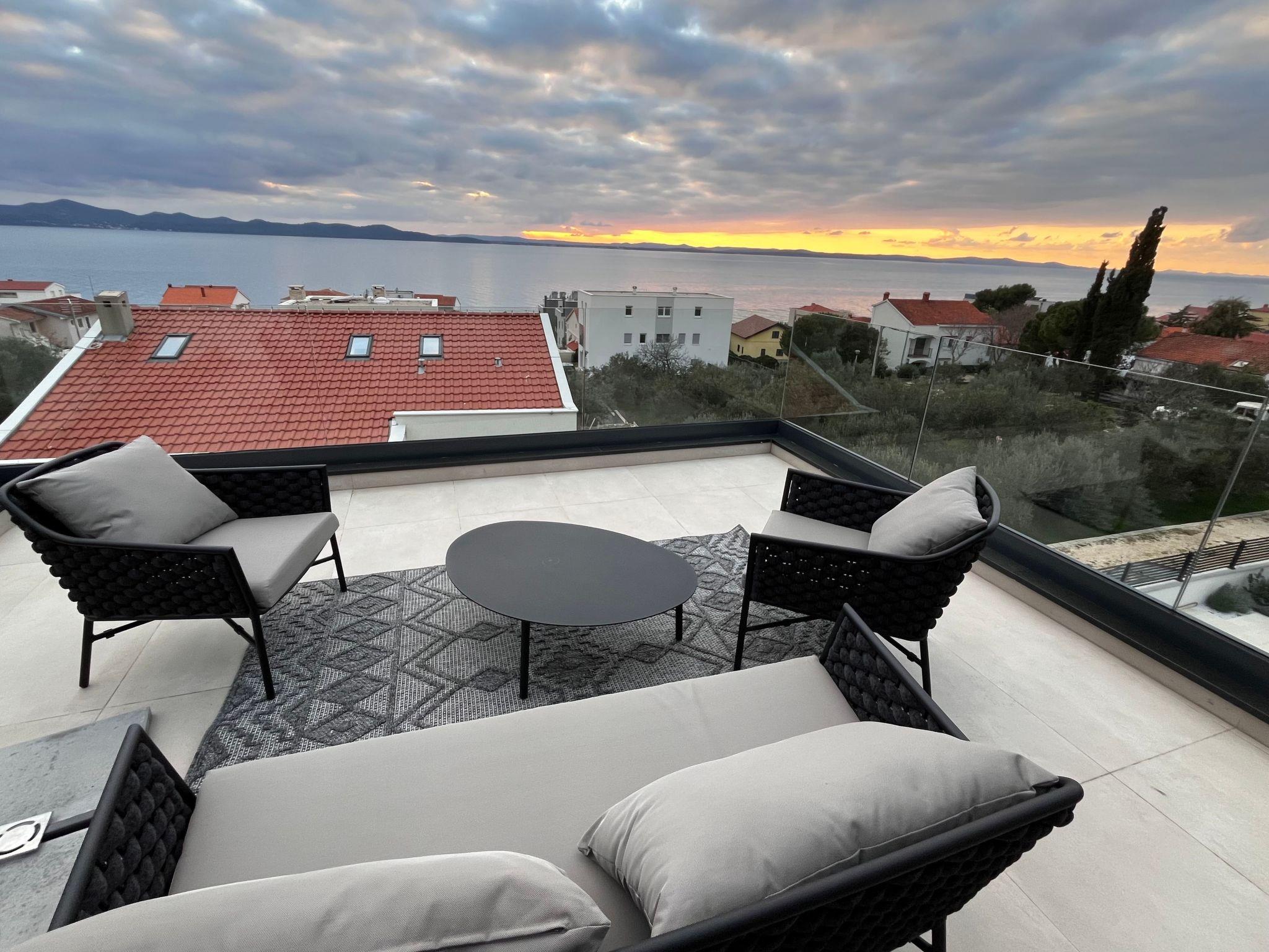 Experience the epitome of coastal luxury at our newly built 3-story villa, just 170 meters from the Zadar coast. Revel in the breathtaking 180-degree panorama of the sea and Zadar skyline from top floor. Immerse yourself in modern elegance with sleek architecture and contemporary furnishings. Indulge in relaxation with an indoor sauna and jacuzzi, complemented by four bathrooms. The stylish kitchen is a culinary haven, while outdoor amenities include a refreshing swimming pool and a grill.