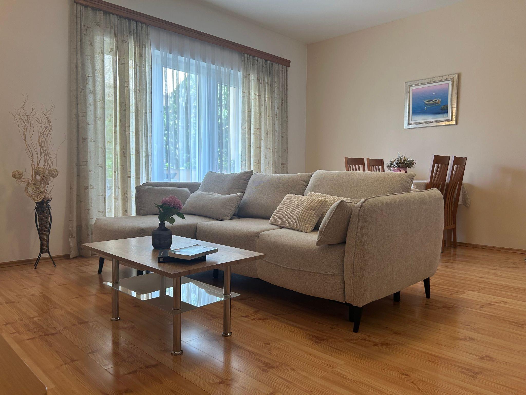 The house was built on a 2000 m² plot (surrounded by pool, olive, cherry and mandarine trees, figs, pomegranates ...), lovingly furnished and about 900 m from the sea, in the quiet upper part of the village. The apartment has 65 m², with two bedrooms, a bathroom, and a living room. The apartment is comfortable, air-conditioned and completely equipped (wifi, satellite TV, washing machine and a dishwasher). There is large sunny terrace, sunny pool, private entrance with a driveway, parking is ensured in front of the house.