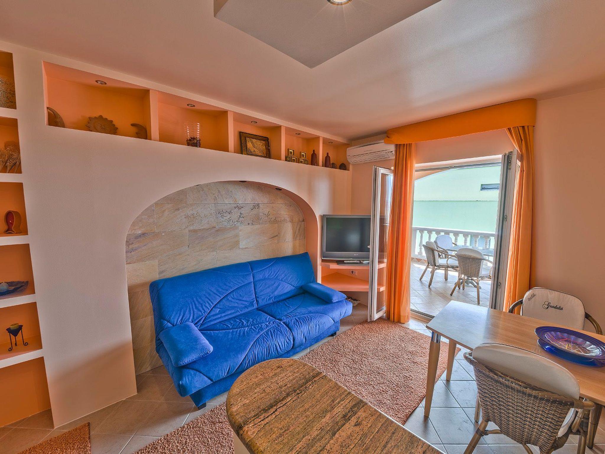 This apartment offers a spacious living/dining area with an open plan kitchen. The kitchen has a microwawe, electric kettle, coffee maker, stove and oven. There is a double bed in the bedroom (160x200) and a sofa bed (150x200) for two people in the living room.The bathroom is spacious and complete with washing machine. The space is air conditioned and covered with WIFI internet.