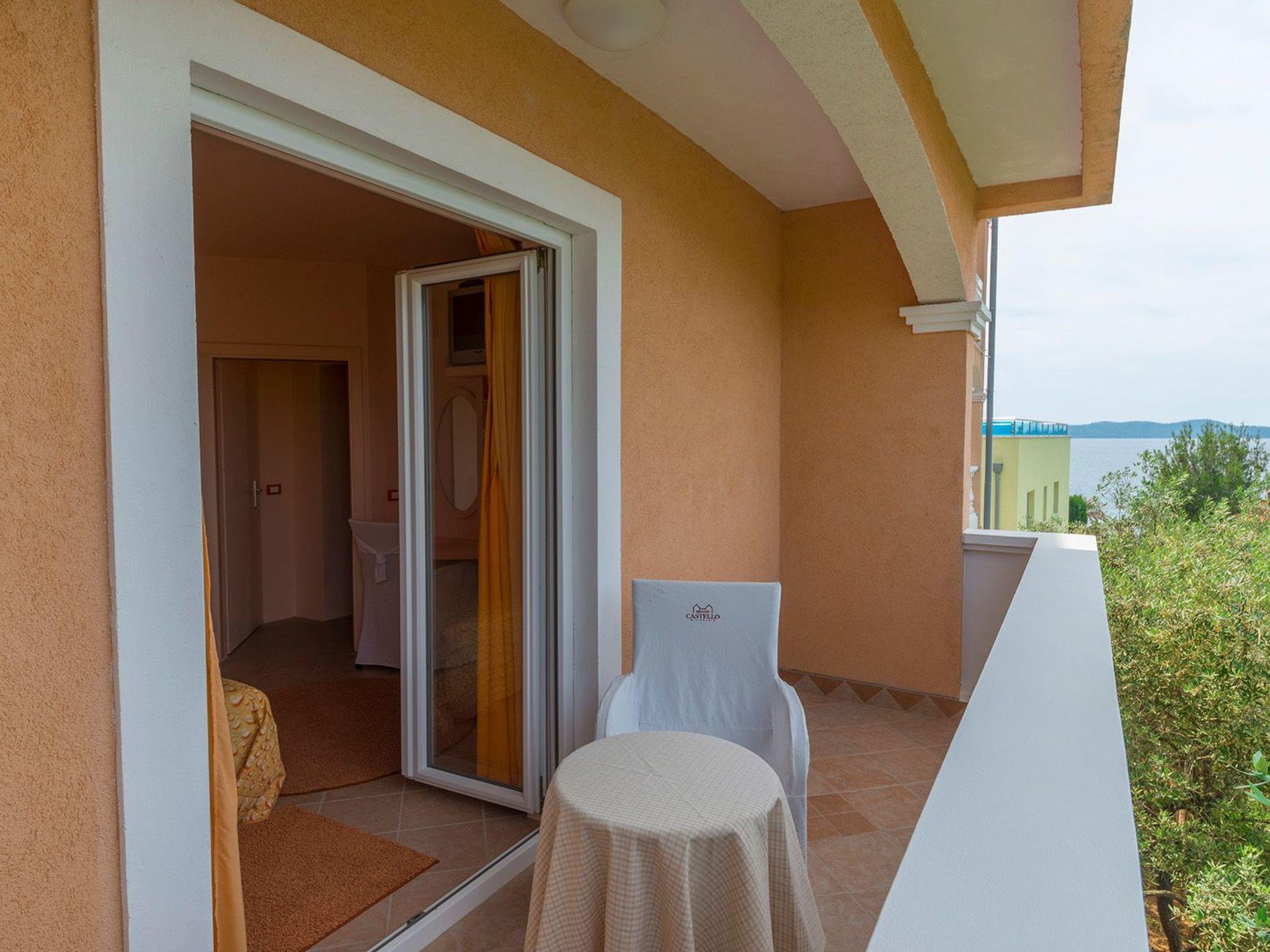 Your private sea view balcony is equipped with a dining table and chairs. And each apartment has its own private parking space at the front of the house.