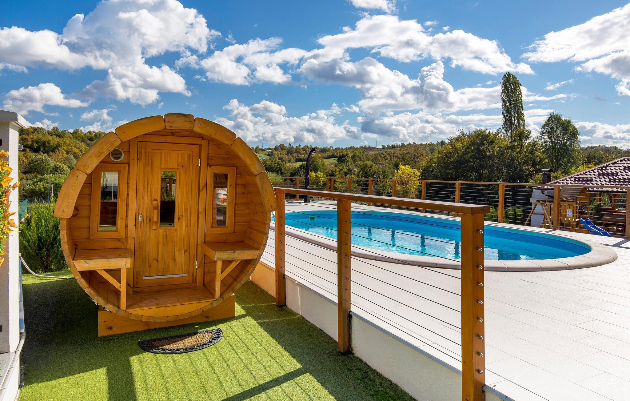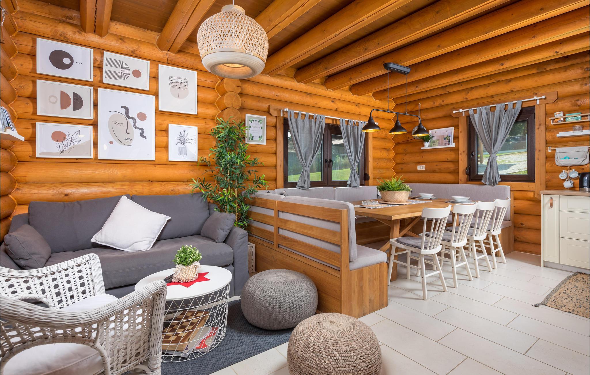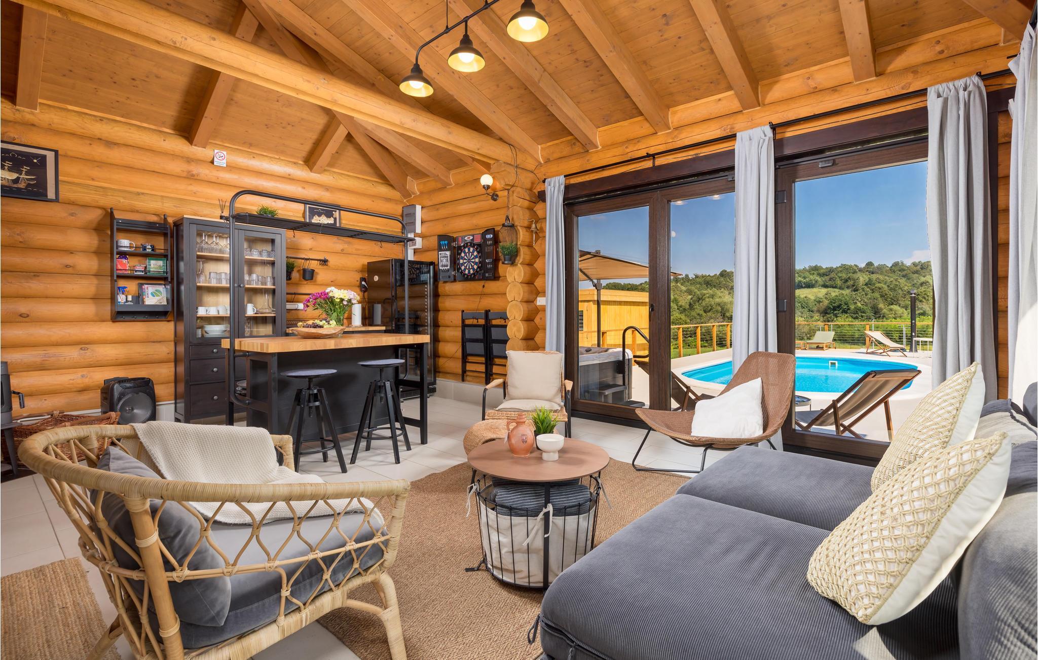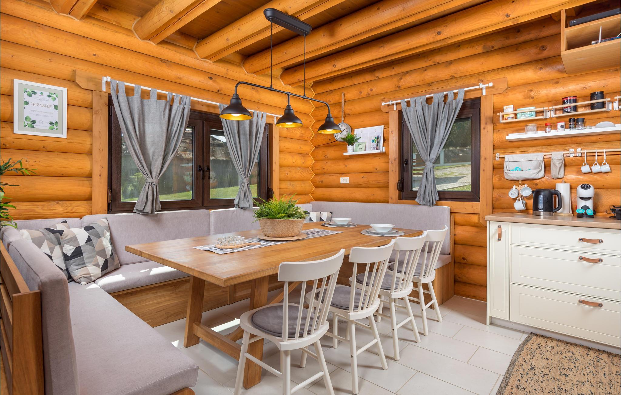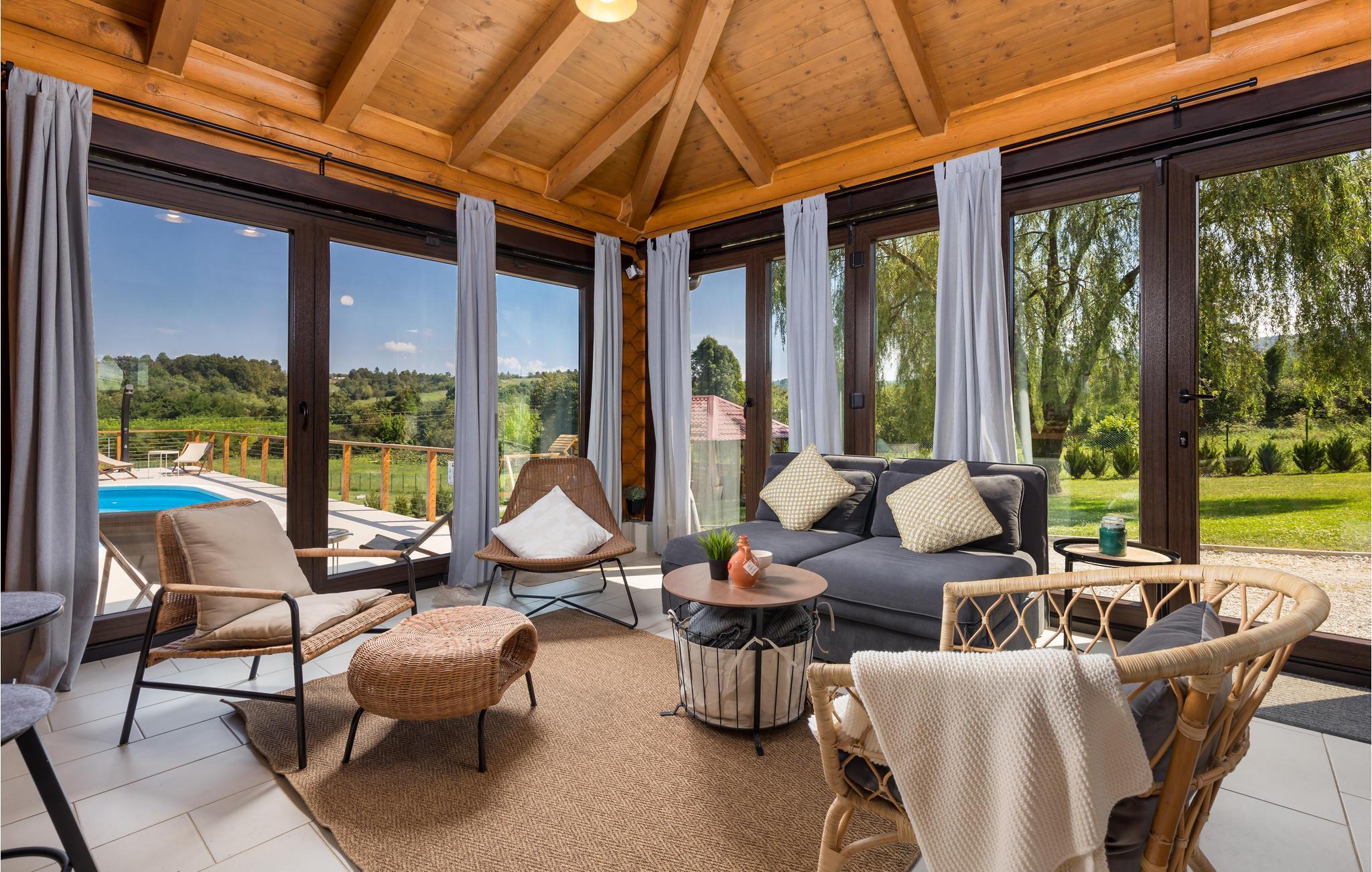 Velkommen til dette attraktive feriehuset i tre med idyllisk beliggenhet i Zagrebs nærområde. Huset har sin sjarm takket være en vellykket blanding av moderne komfort og rustikk hygge, og de koselige rommene innbyr til en avslappende pause fra hverdagen. Slapp av i badstuen etter utendørsaktiviteter, og la deg fortrylle av den vakre utsikten gjennom vinduene fra gulv til tak i sittegruppen.