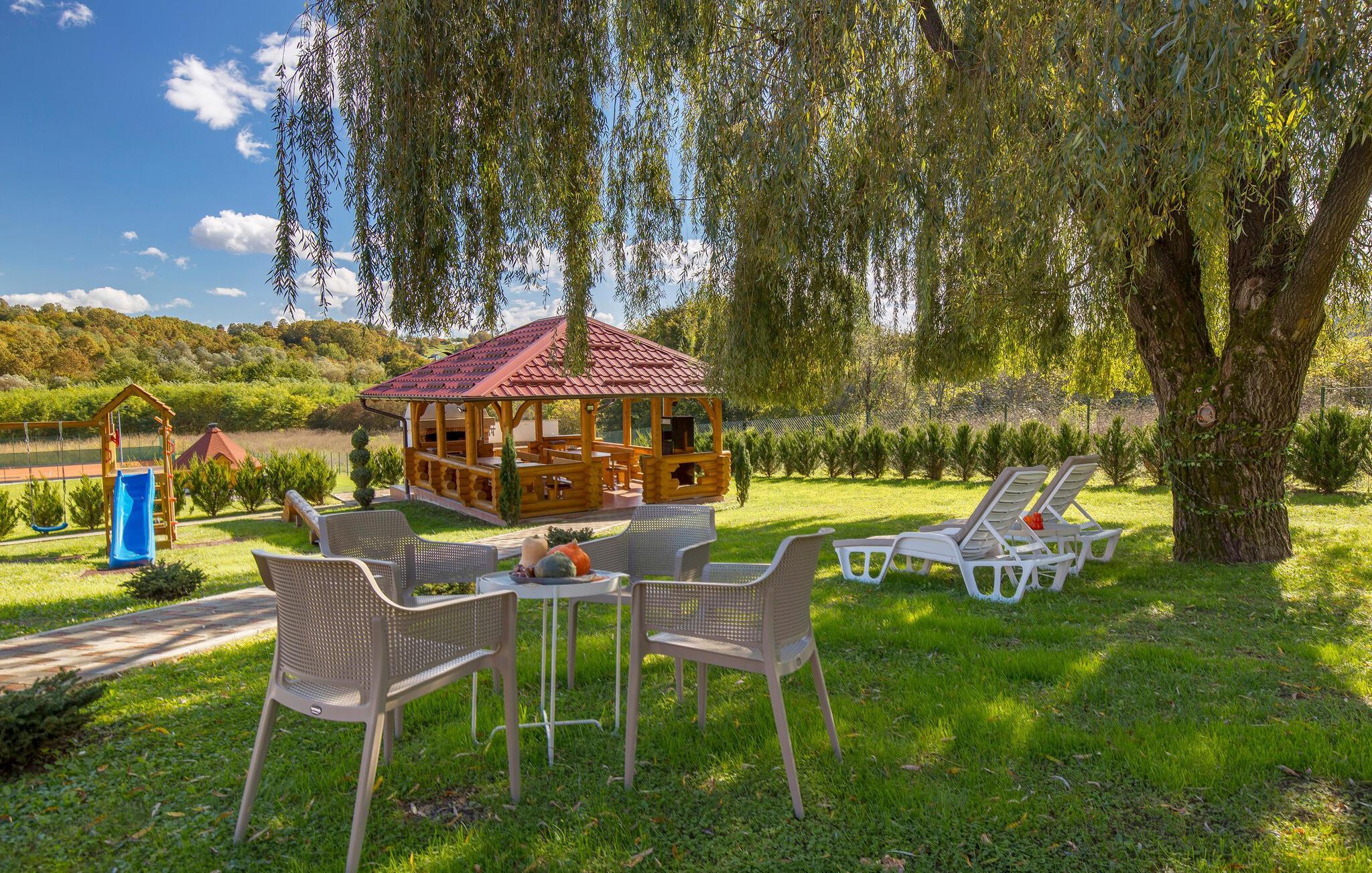 Du kan også slappe av utendørs i det idylliske landskapet. Nyt måltidene på terrassen, forfrisk deg i bassenget og avslutt dagen i boblebadet utendørs.
