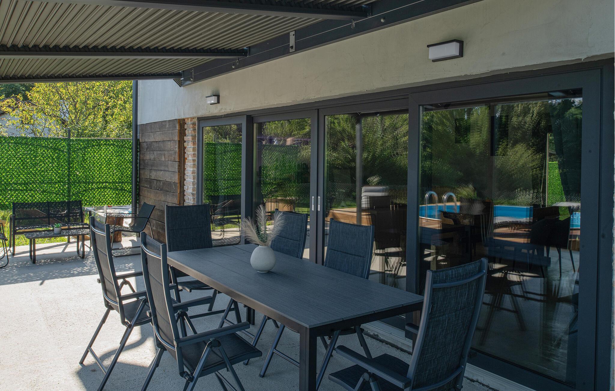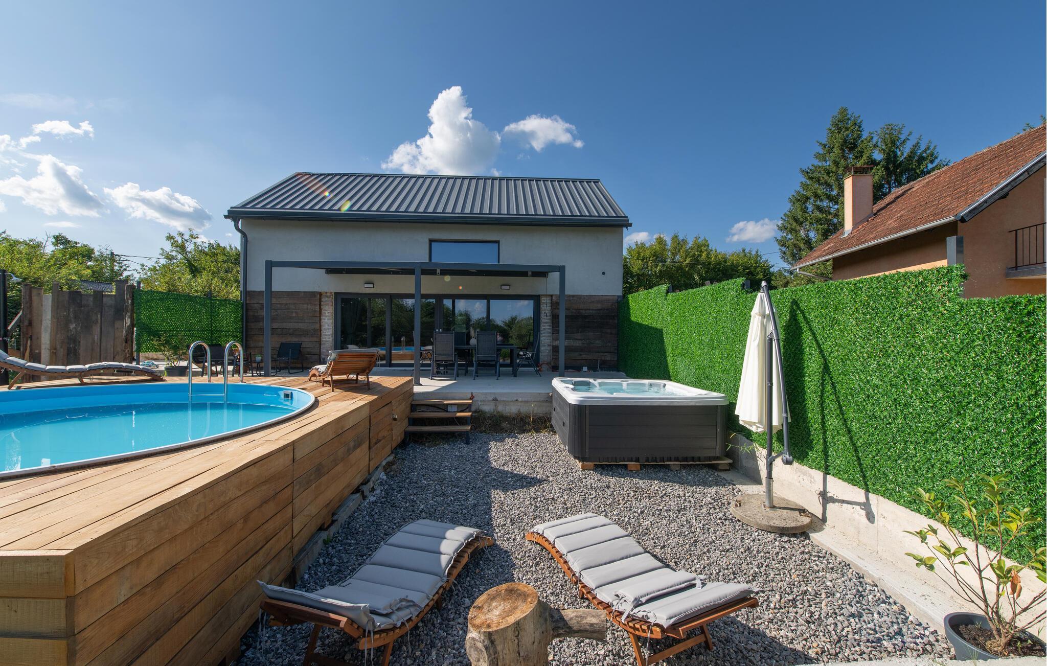 Tilbring en avslappende ferie i dette moderne feriehuset med basseng og boblebad.