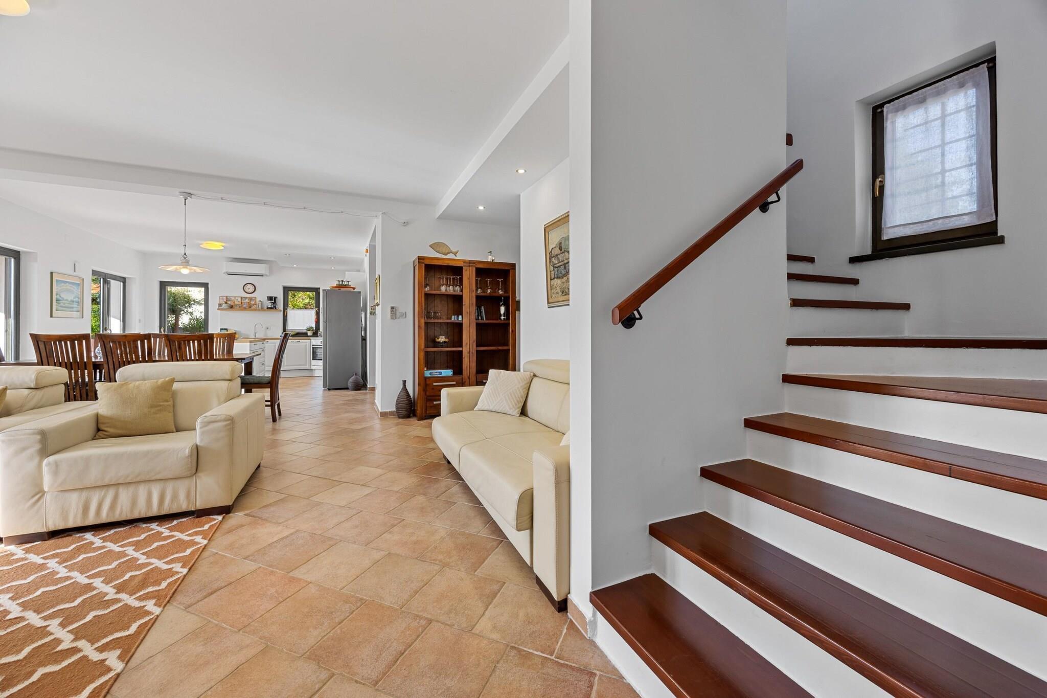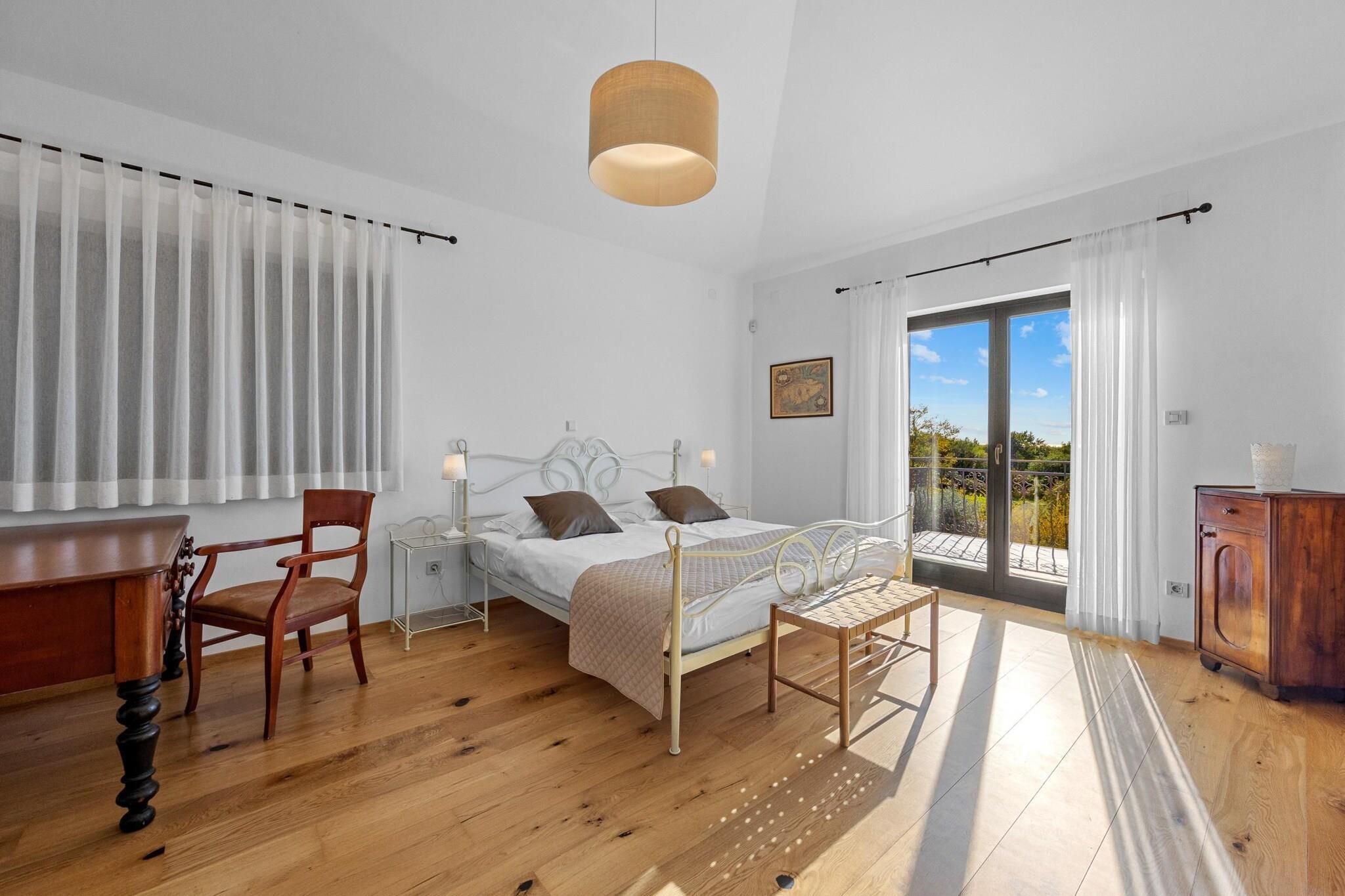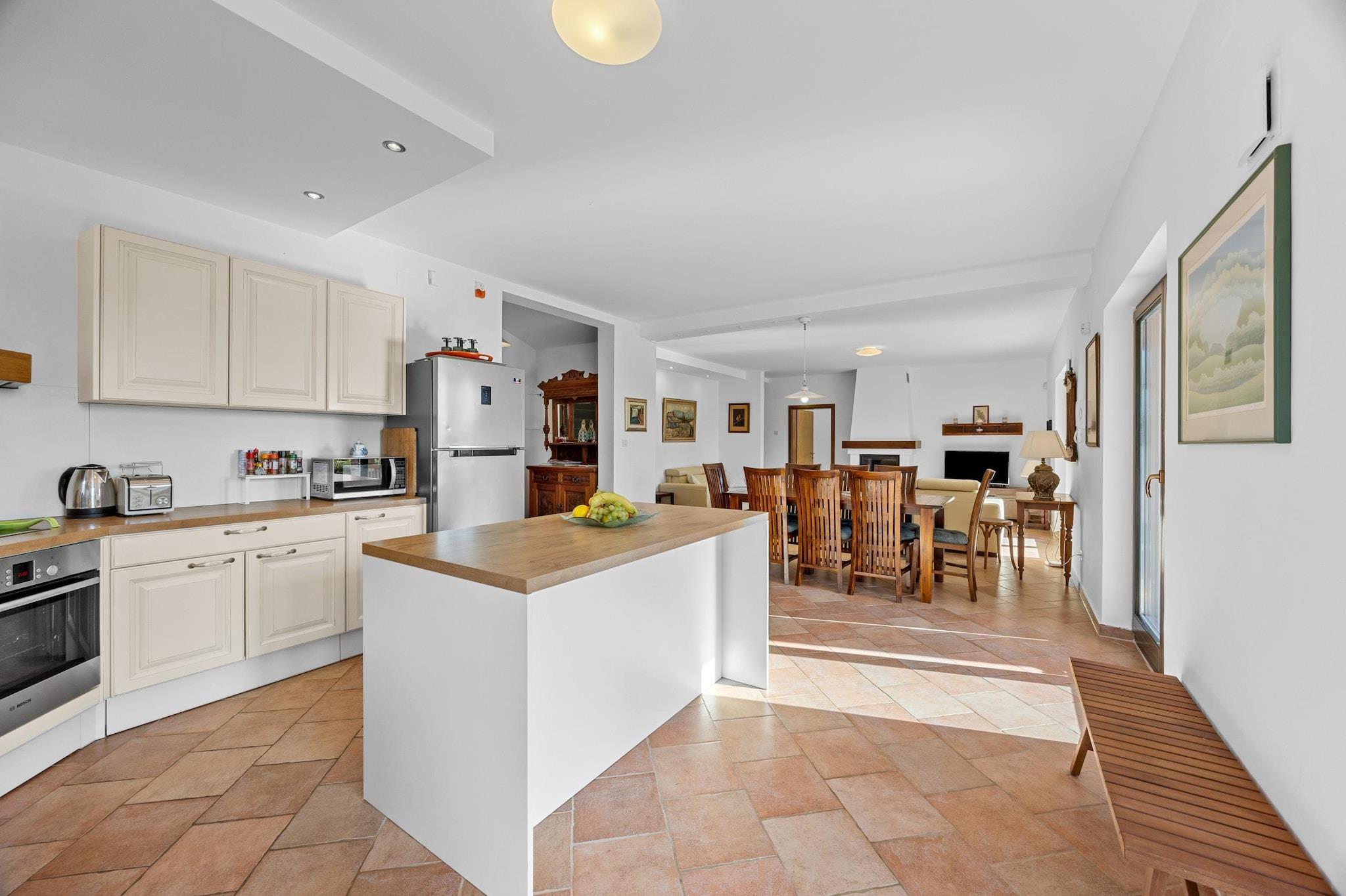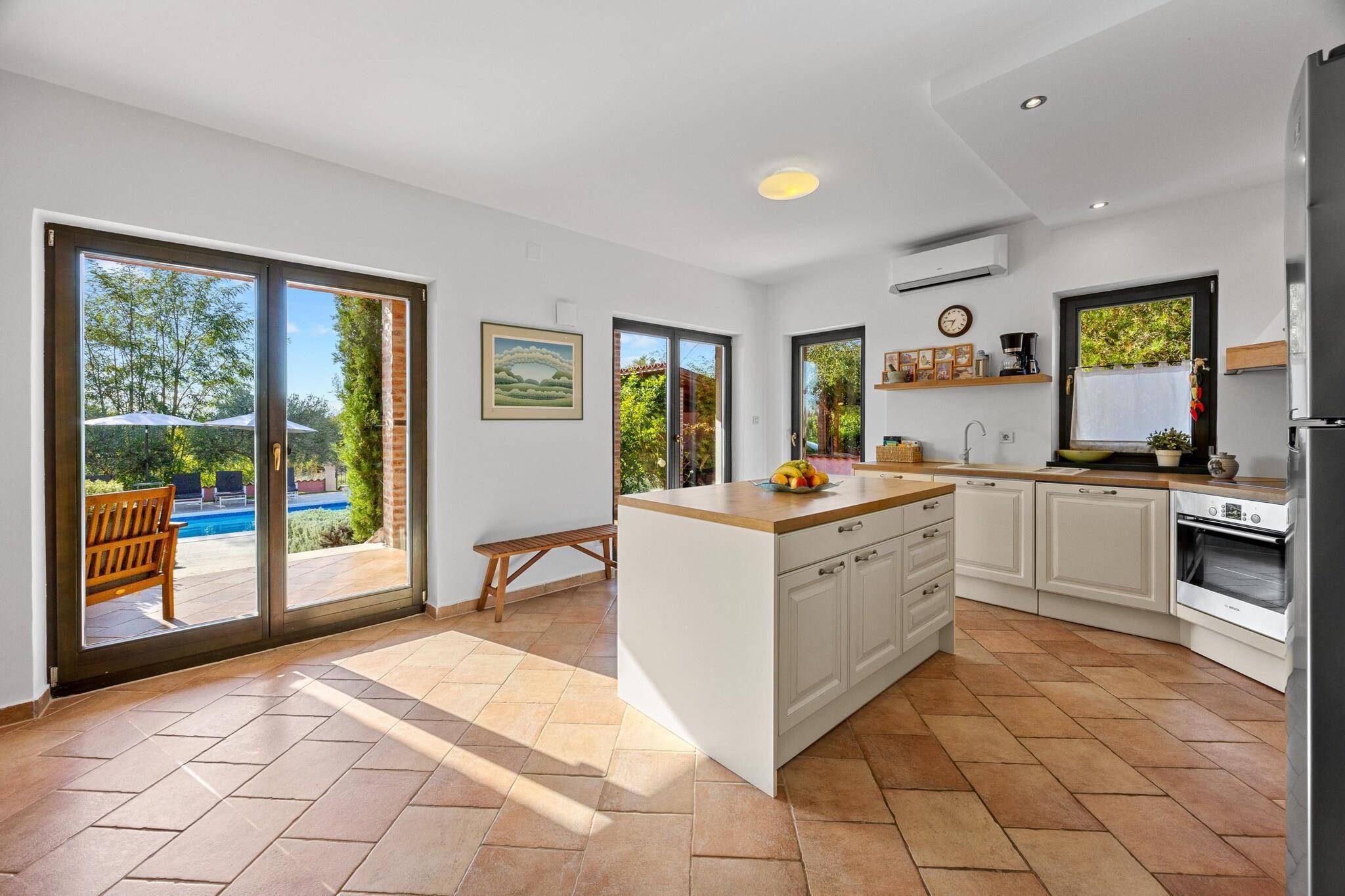 Oppdag denne vakre, moderne villaen på 200 m² i Pinezici, som tilbyr en fredelig tilflukt for opptil 8 gjester. Med 3 komfortable soverom, en romslig hage og et privat svømmebasseng, er det den perfekte setting for en avslappende ferie med familie eller venner. Beliggende i et rolig, familievennlig landlig område, finner du god plass til å slappe av og nyte det vakre landskapet i Istria. Den inngjerdede tomten sikrer privatliv og inviterer deg til å omfavne freden og roen i omgivelsene dine. Villaen er gjennomtenkt utstyrt for å sikre din komfort og bekvemmelighet. Gå ut på den sjenerøse terrassen på 20 m² for å nyte utendørs servering med hagemøbler og grill, eller samles rundt peisen for koselige kvelder. Innvendig har det åpne elektriske kjøkkenet kjøleskap, stekeovn, fryser, oppvaskmaskin, kaffemaskin, brødrister og vannkoker for alle dine kulinariske behov. Hold deg tilkoblet med Wi-Fi, og nyt underholdning med en TV (inkludert tyske satellittkanaler) og en DVD-spiller. Ekstra fasiliteter som vaskemaskin, strykejern, hårføner, balkong, varmepumpe og klimaanlegg sikrer et komfortabelt opphold i alle årstider. Mens du nyter den landlige sjarmen til Pinezici, er du også beleilig nær lokale fasiliteter og attraksjoner. Byen Sveti Lovrec, med supermarked og restauranter, ligger bare 6 km unna. For en forfriskende dag ute, ligger Aquapark Porec 22 km unna, og de steinete strendene i Porec ligger 23 km unna. Naturelskere vil sette pris på naturreservatet Bijuniøyene, bare 50 meter fra dørstokken din. For de som ønsker å utforske videre, ligger Pazin togstasjon 16 km unna, og en busstasjon finnes i Pazin 17 km unna.