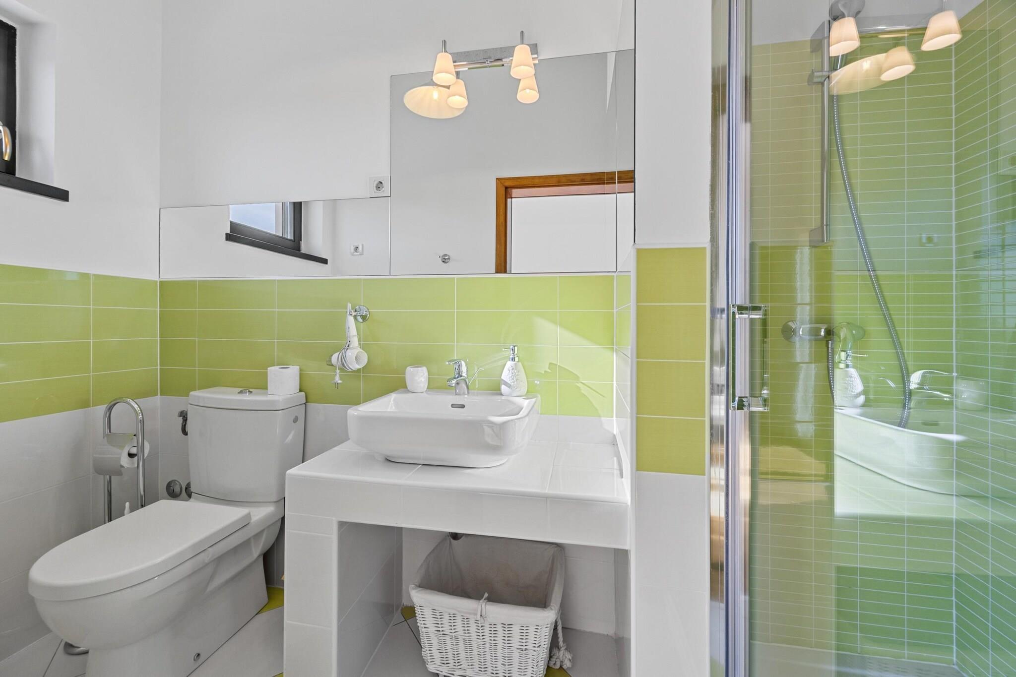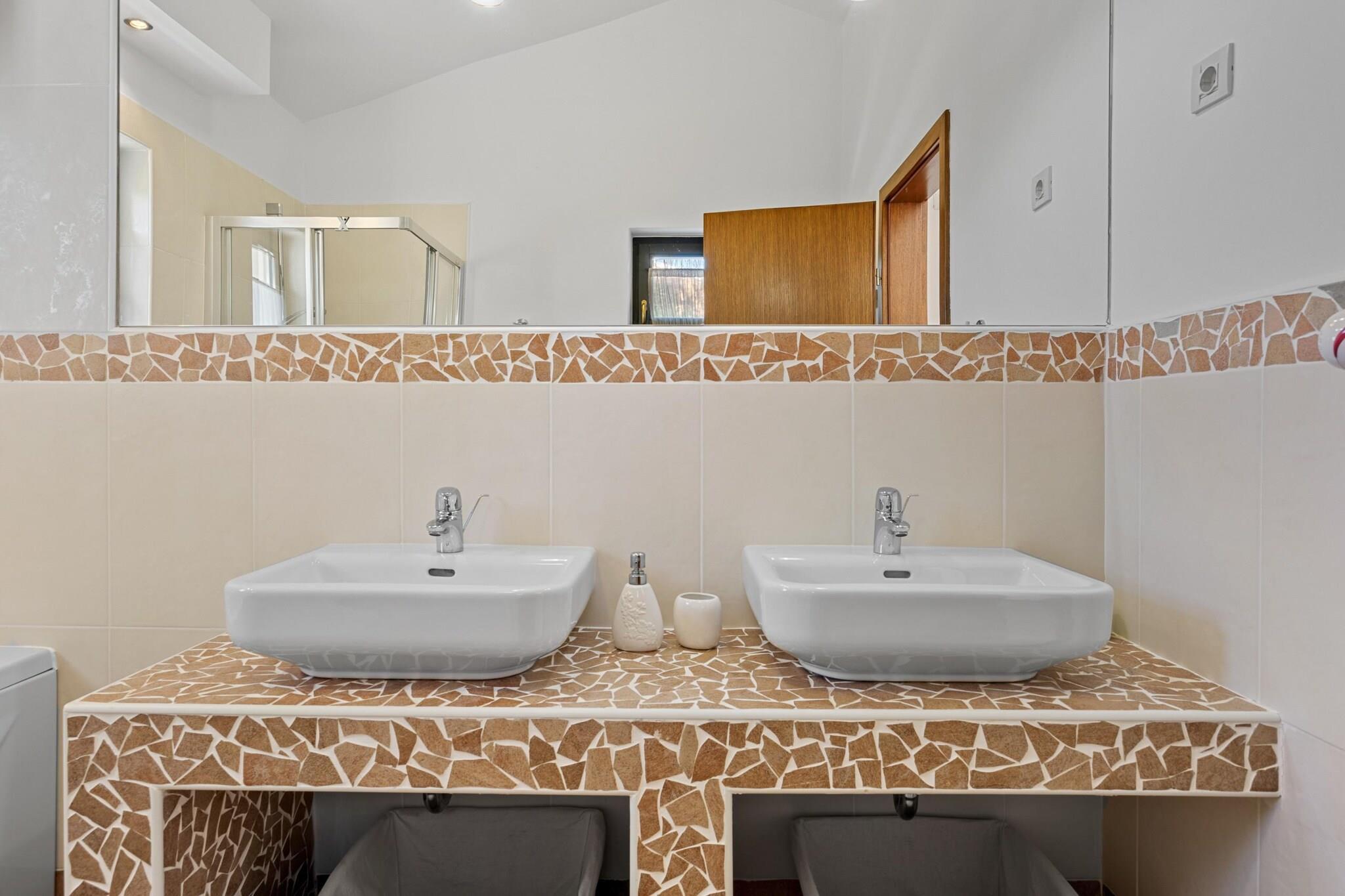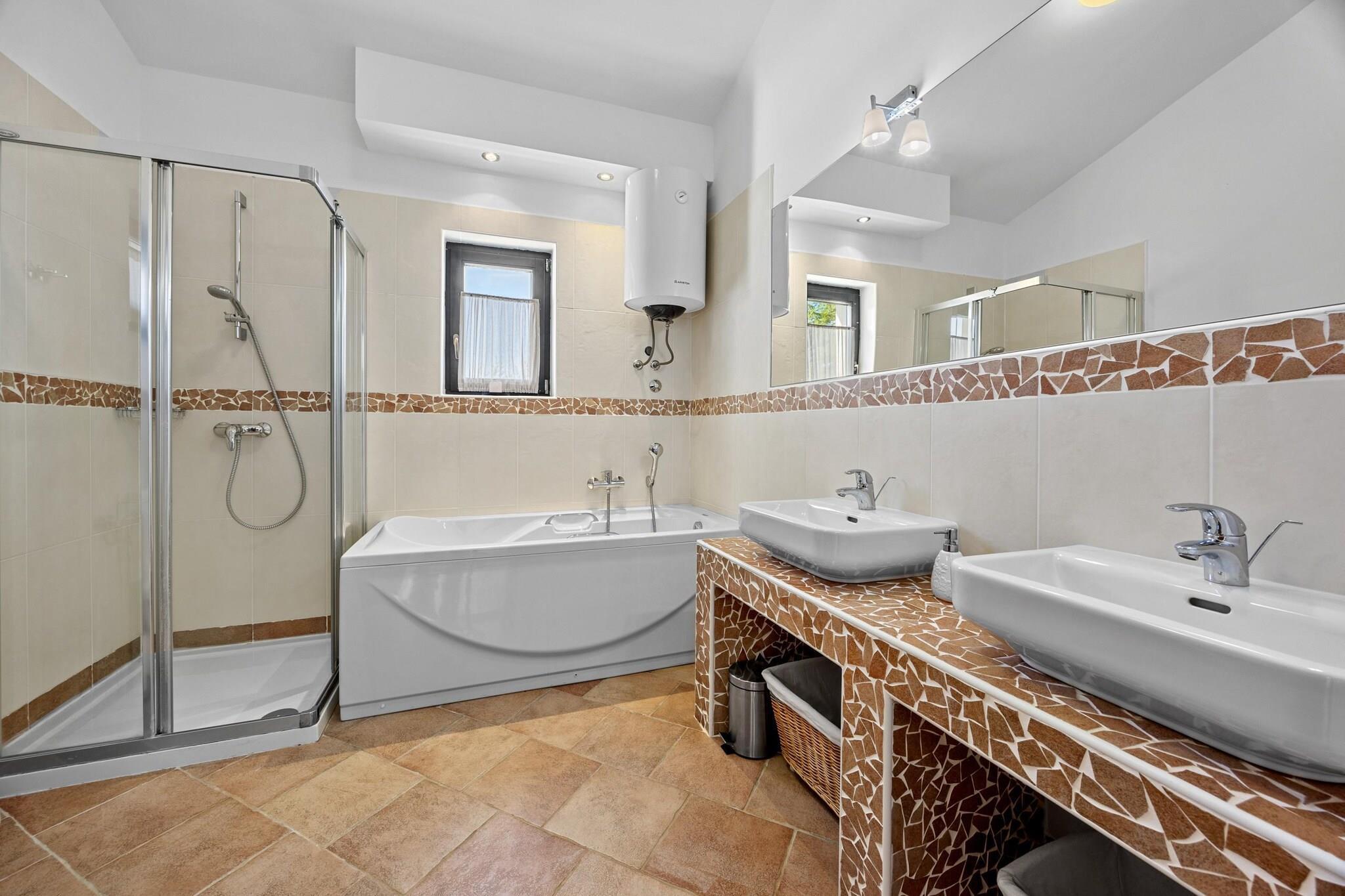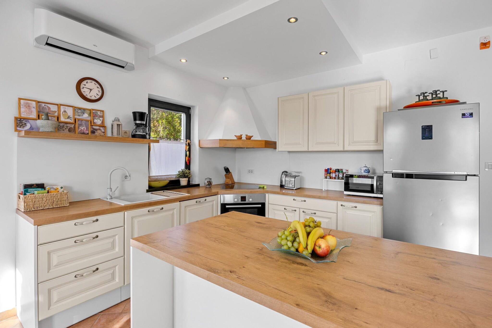 Oppdag denne vakre, moderne villaen på 200 m² i Pinezici, som tilbyr en fredelig tilflukt for opptil 8 gjester. Med 3 komfortable soverom, en romslig hage og et privat svømmebasseng, er det den perfekte setting for en avslappende ferie med familie eller venner. Beliggende i et rolig, familievennlig landlig område, finner du god plass til å slappe av og nyte det vakre landskapet i Istria. Den inngjerdede tomten sikrer privatliv og inviterer deg til å omfavne freden og roen i omgivelsene dine. Villaen er gjennomtenkt utstyrt for å sikre din komfort og bekvemmelighet. Gå ut på den sjenerøse terrassen på 20 m² for å nyte utendørs servering med hagemøbler og grill, eller samles rundt peisen for koselige kvelder. Innvendig har det åpne elektriske kjøkkenet kjøleskap, stekeovn, fryser, oppvaskmaskin, kaffemaskin, brødrister og vannkoker for alle dine kulinariske behov. Hold deg tilkoblet med Wi-Fi, og nyt underholdning med en TV (inkludert tyske satellittkanaler) og en DVD-spiller. Ekstra fasiliteter som vaskemaskin, strykejern, hårføner, balkong, varmepumpe og klimaanlegg sikrer et komfortabelt opphold i alle årstider. Mens du nyter den landlige sjarmen til Pinezici, er du også beleilig nær lokale fasiliteter og attraksjoner. Byen Sveti Lovrec, med supermarked og restauranter, ligger bare 6 km unna. For en forfriskende dag ute, ligger Aquapark Porec 22 km unna, og de steinete strendene i Porec ligger 23 km unna. Naturelskere vil sette pris på naturreservatet Bijuniøyene, bare 50 meter fra dørstokken din. For de som ønsker å utforske videre, ligger Pazin togstasjon 16 km unna, og en busstasjon finnes i Pazin 17 km unna.