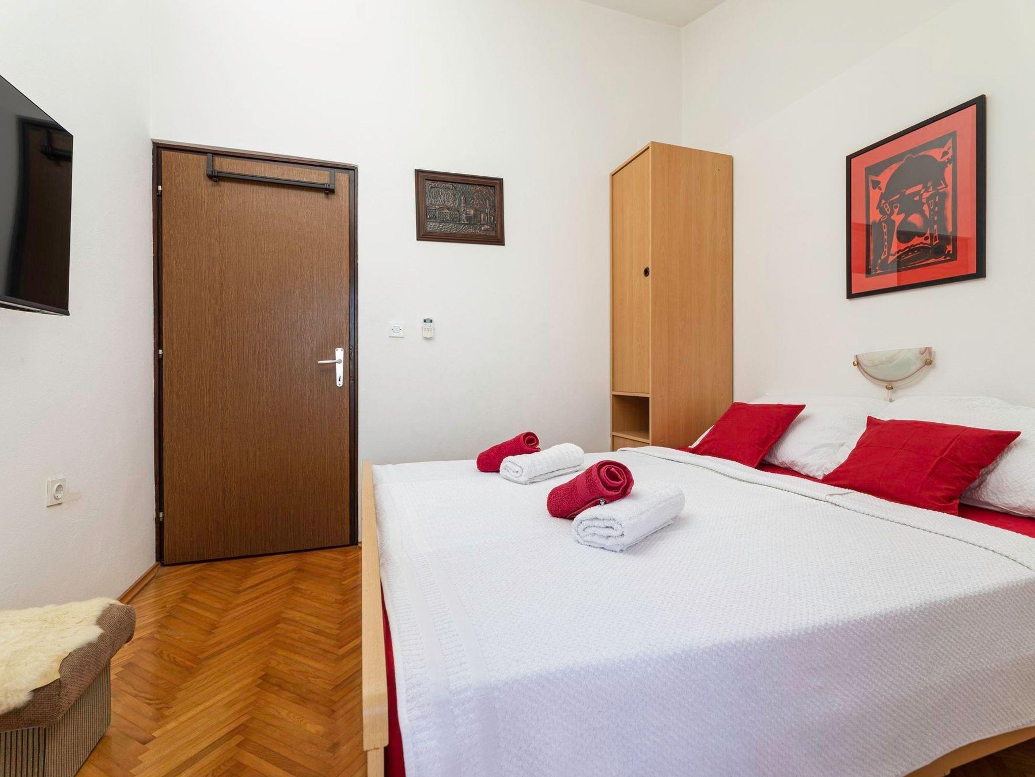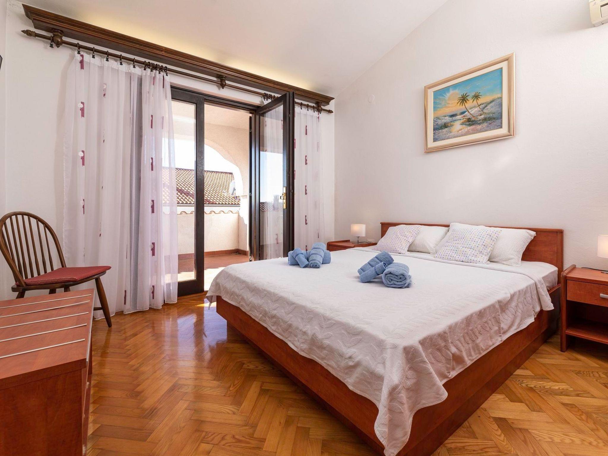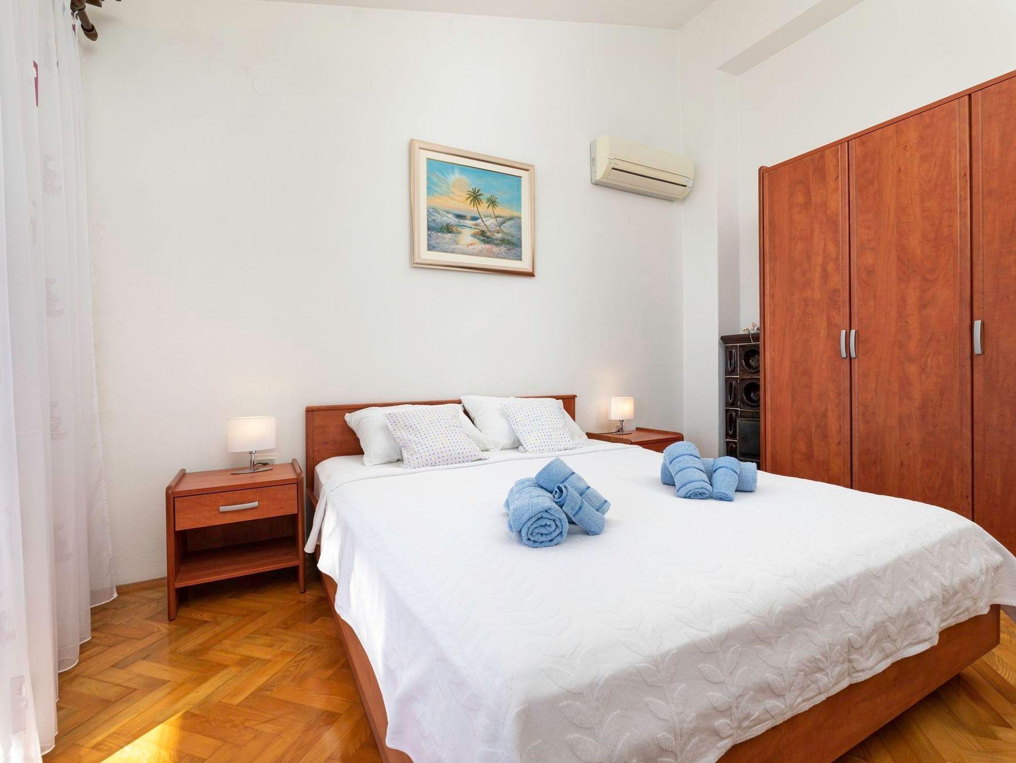 Ferienwohnung bietet Platz für 6 Gäste. Die Betten sind in Schlafzimmern, die es 3 gibt, innerhalb einer Gesamtfläche von 106m2, angeordnet. Die Gäste haben eine eigene Terrasse zur Verfügung, auf der sie in warmen Sommernächten genießen können. Das Apartment bietet Meerblick. Für vollen Genuss und Entspannung gibt es einen privaten Grill für Gäste dieser Unterkunft. IM PREIS INBEGRIFFEN: Kurtaxe, Endreinigung, Klimatisierung, Parkplatz, Internet, Bügeleisen, Föhn. Die Verfügbarkeit zusätzlicher Dienstleistungen in Ihrem reservierten Termin und die Preise derselben (falls nicht aufgeführt) müssen im Voraus überprüft werden. Zusätzliche Dienstleistungen die in der Zahlungsaufforderung nicht aufgeführt sind werden direkt beim Vermieter bezahlt, angenommen der Gast nutzt auch diese.