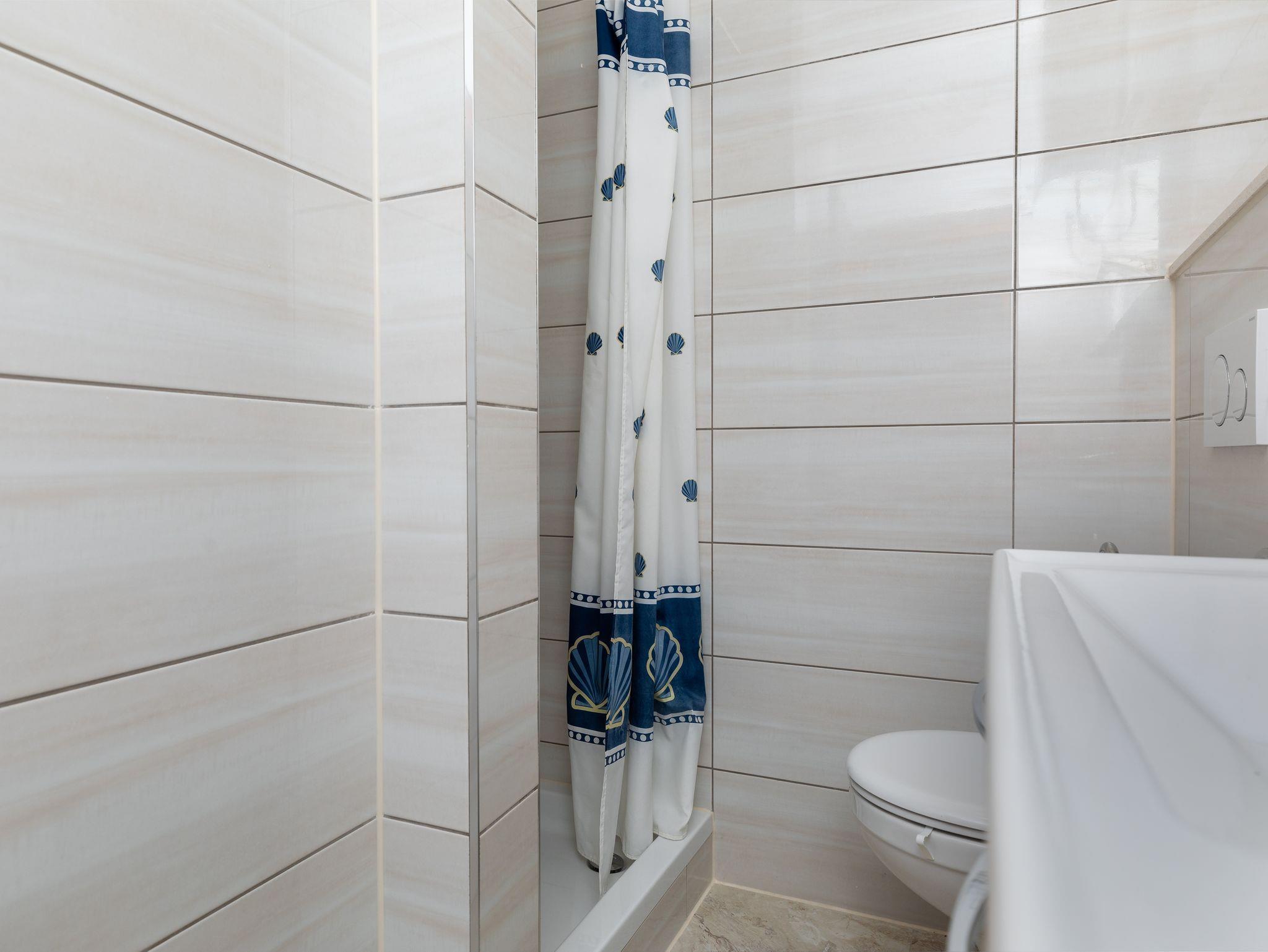 Ferienwohnung bietet Platz für 6 Gäste. Die Betten sind in Schlafzimmern, die es 2 gibt, innerhalb einer Gesamtfläche von 38m2, angeordnet. Die Gäste haben eine eigene Terrasse zur Verfügung, auf der sie in warmen Sommernächten genießen können. Das Apartment bietet Meerblick. Es ist erlaubt, Speisen auf dem Gemeinschafts-Grill vorzubereiten. In der Unterkunftseinheit besteht die Möglichkeit des Mitbringens von Haustieren gegen Aufpreis. IM PREIS INBEGRIFFEN: Kurtaxe, Endreinigung, Klimatisierung, Parkplatz, Internet. VERBINDLICHE ZUSÄTZLICHE KOSTEN: Aufzahlung für Kurzaufenthalte (prozentualer Zuschlag pro Nächtigungsanzahl: 30% - 1, 20% - 2, 10% - 3). UNVERBINDLICHE ZUSÄTZLICHE KOSTEN: Haustiere (8,00 € pro Nacht). Die Verfügbarkeit zusätzlicher Dienstleistungen in Ihrem reservierten Termin und die Preise derselben (falls nicht aufgeführt) müssen im Voraus überprüft werden. Zusätzliche Dienstleistungen die in der Zahlungsaufforderung nicht aufgeführt sind werden direkt beim Vermieter bezahlt, angenommen der Gast nutzt auch diese.