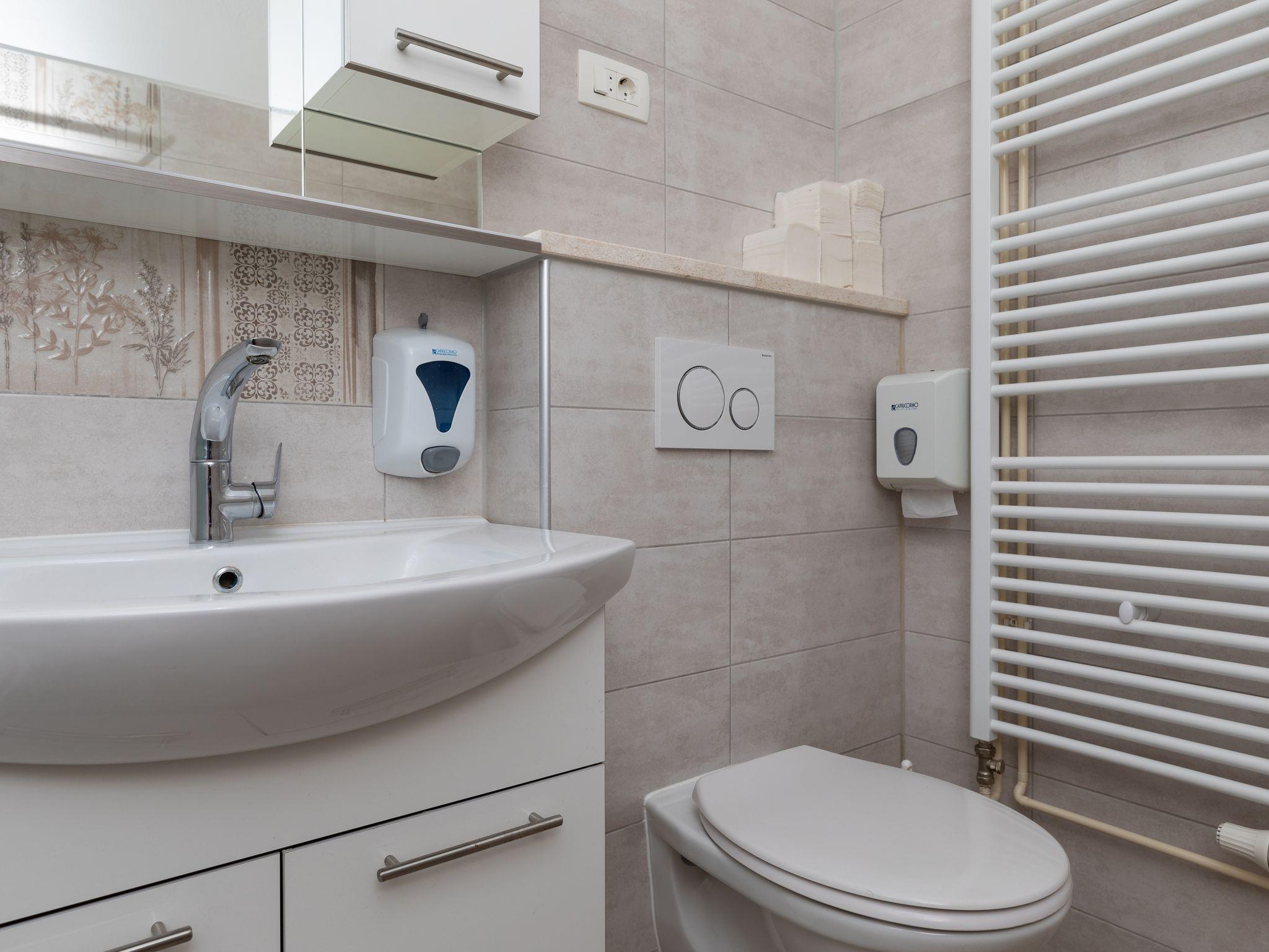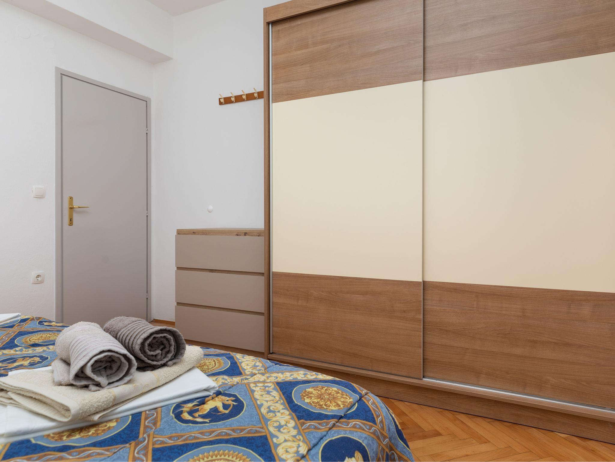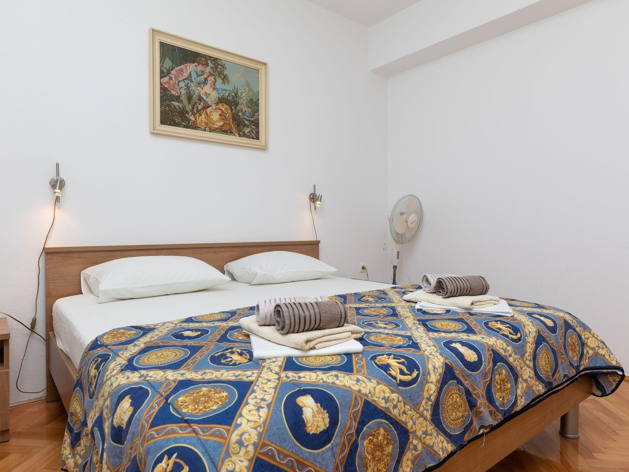 Ferienwohnung bietet Platz für 8 Gäste. Die Betten sind in Schlafzimmern, die es 2 gibt, und in Wohnzimmer, innerhalb einer Gesamtfläche von 76m2, angeordnet. Die Gäste haben eine eigene Terrasse zur Verfügung, auf der sie in warmen Sommernächten genießen können. Das Apartment bietet Meerblick. Es ist erlaubt, Speisen auf dem Gemeinschafts-Grill vorzubereiten. In der Unterkunftseinheit besteht die Möglichkeit des Mitbringens von Haustieren gegen Aufpreis. IM PREIS INBEGRIFFEN: Kurtaxe, Endreinigung, Klimatisierung, Parkplatz, Internet. VERBINDLICHE ZUSÄTZLICHE KOSTEN: Aufzahlung für Kurzaufenthalte (prozentualer Zuschlag pro Nächtigungsanzahl: 30% - 1, 20% - 2, 10% - 3). UNVERBINDLICHE ZUSÄTZLICHE KOSTEN: Haustiere (8,00 € pro Nacht). Die Verfügbarkeit zusätzlicher Dienstleistungen in Ihrem reservierten Termin und die Preise derselben (falls nicht aufgeführt) müssen im Voraus überprüft werden. Zusätzliche Dienstleistungen die in der Zahlungsaufforderung nicht aufgeführt sind werden direkt beim Vermieter bezahlt, angenommen der Gast nutzt auch diese.