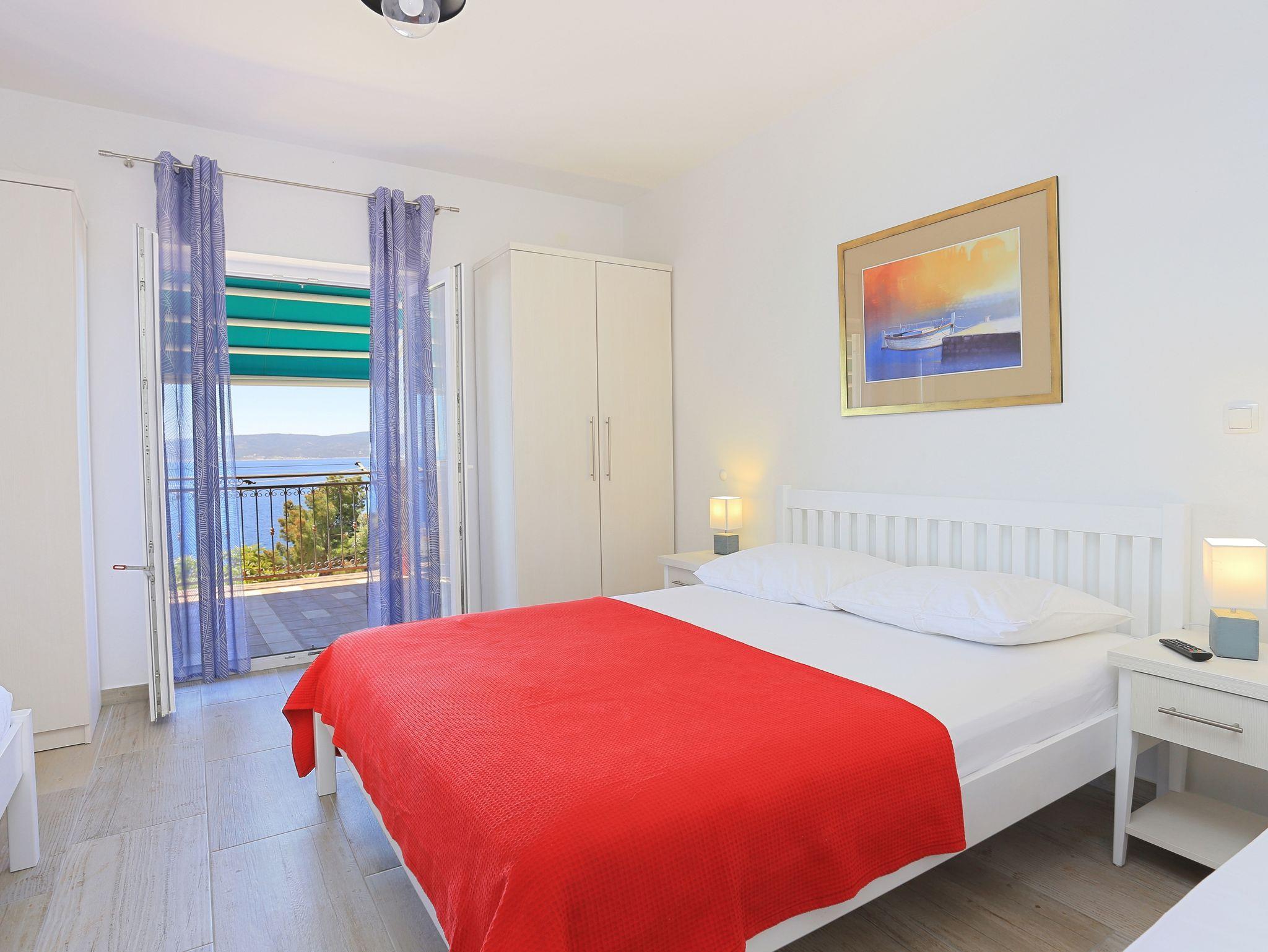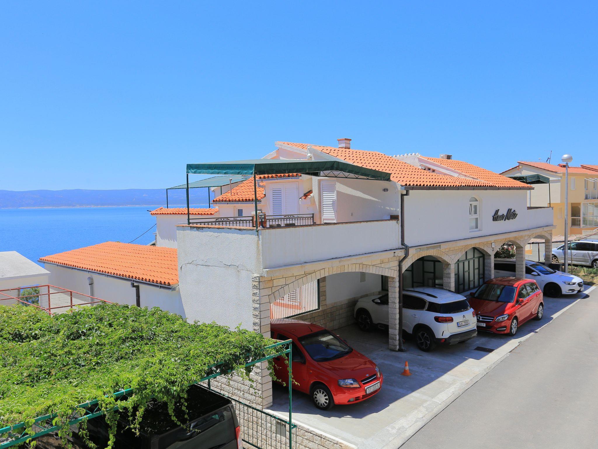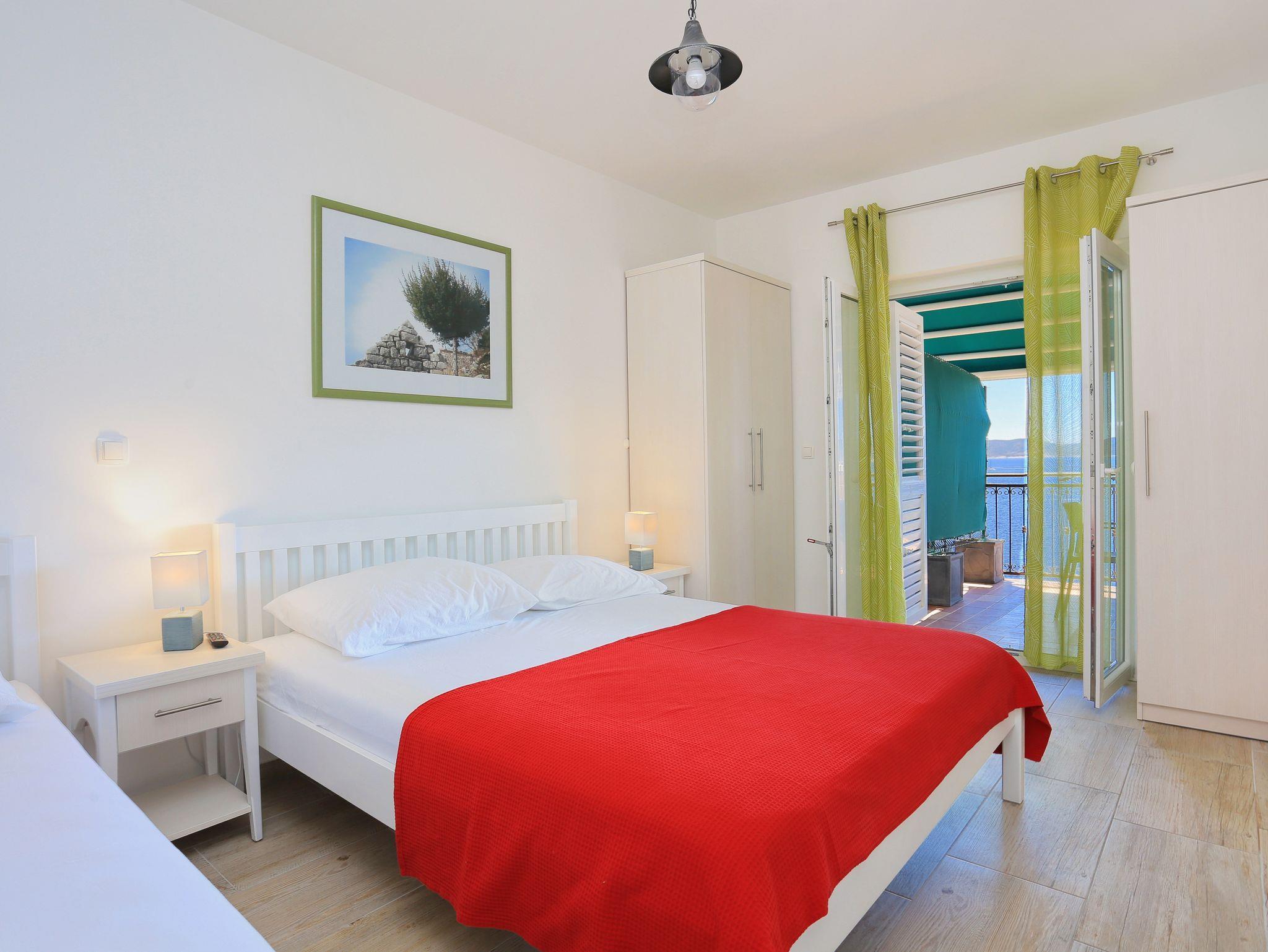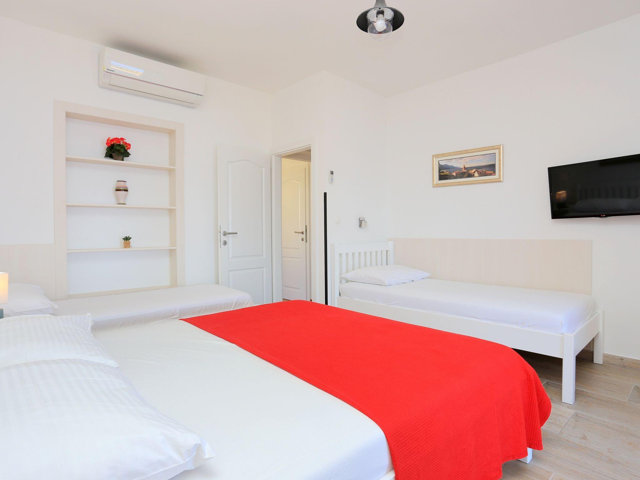 Ferienwohnung bietet Platz für 6 Gäste. Die Betten sind in Schlafzimmern, die es 2 gibt, innerhalb einer Gesamtfläche von 47m2, angeordnet. Die Gäste haben eine eigene Terrasse zur Verfügung, auf der sie in warmen Sommernächten genießen können. Das Apartment bietet Meerblick. IM PREIS INBEGRIFFEN: Kurtaxe, Endreinigung, Klimatisierung, Parkplatz, Internet, Bootsanlegeplatz, Kinderbett, Bügeleisen, Bügelbrett, Föhn, Sonnenschirm, Liegestühle. VERBINDLICHE ZUSÄTZLICHE KOSTEN: Aufzahlung für Kurzaufenthalte (prozentualer Zuschlag pro Nächtigungsanzahl: 30% - 1, 20% - 2, 10% - 3). Die Verfügbarkeit zusätzlicher Dienstleistungen in Ihrem reservierten Termin und die Preise derselben (falls nicht aufgeführt) müssen im Voraus überprüft werden. Zusätzliche Dienstleistungen die in der Zahlungsaufforderung nicht aufgeführt sind werden direkt beim Vermieter bezahlt, angenommen der Gast nutzt auch diese. Ermäßigung auf den Grundpreis: Gratistag 28=25 (bei einem Aufenthalt von 28 oder mehr Tagen erhalten Sie 3 kostenlose Tage für den Aufenthalt bis 31.12.26).
